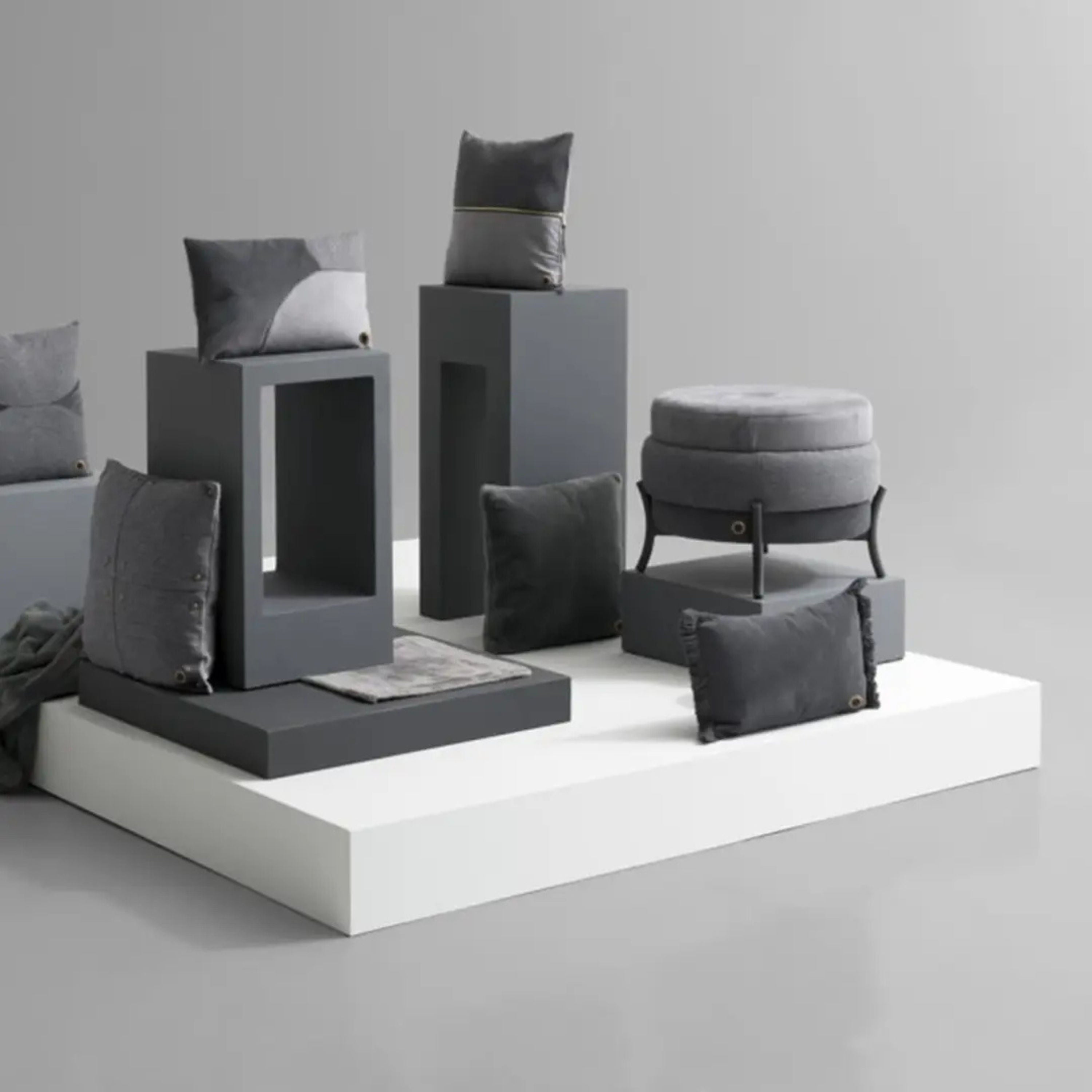 يتميز مسند القدمين Macaron بمظهره الرائع المستوحى من الحلوى الفرنسية في شكل أثاث. يضفي التنجيد الرمادي تنوعًا محايدًا، بينما يضيف التصميم المرح طابعًا شخصيًا. مثالي لإضفاء مرح غريب الأطوار على الديكورات الداخلية الحديثة مع مقاعد مريحة تجعل الجميع يبتسمون.