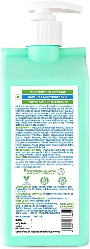 ماما إيرث بيبي ميلكي سوفت هيد تو تو ووش 400 مل