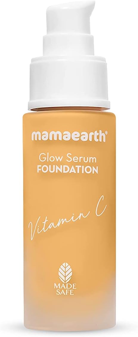 مستحضر Mamaearth Glow Serum Foundation Lotion بفيتامين C والكركم لمدة 12 ساعة 02 Creme Glow 30 مل لمسة نهائية ندية