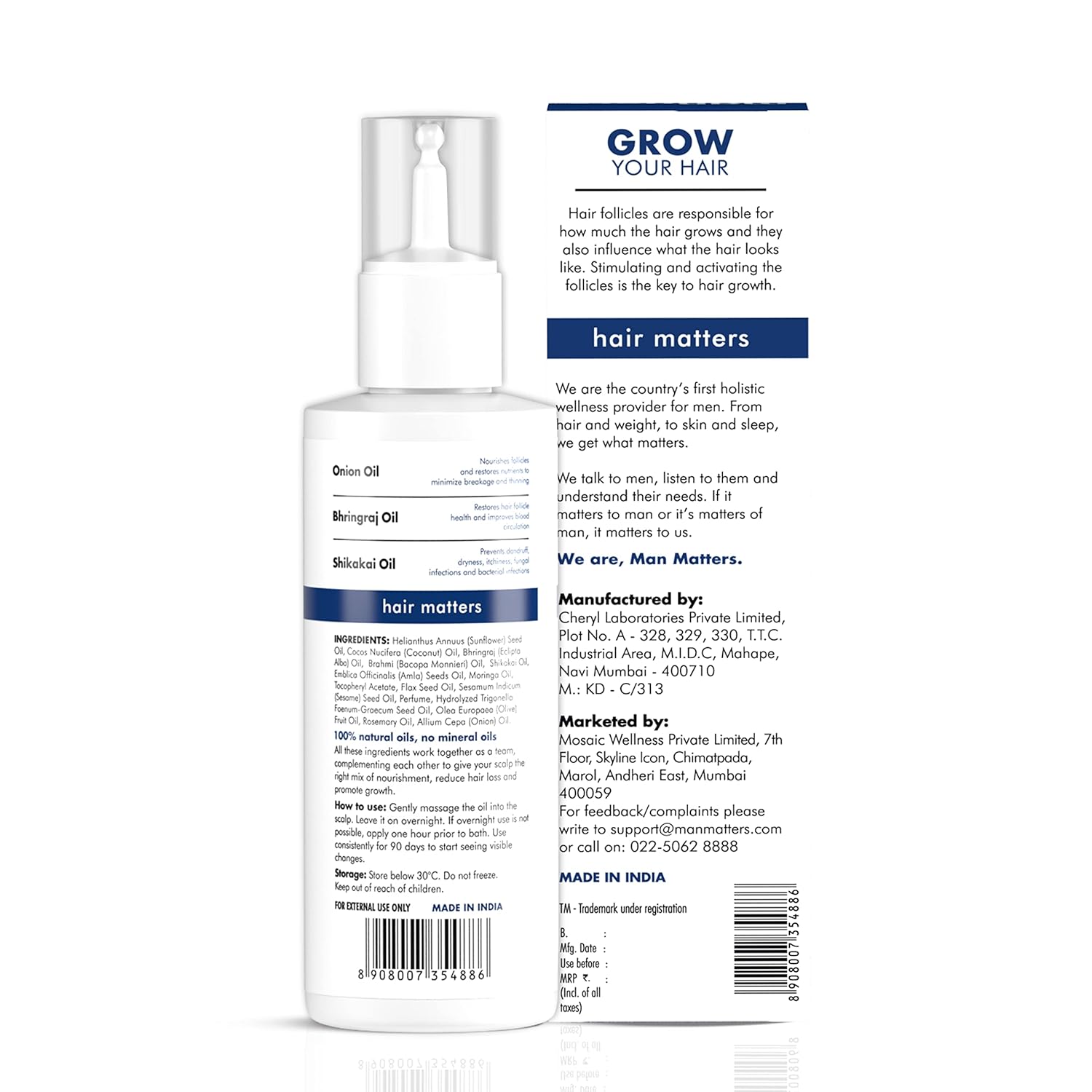 زيت الشعر Man Matters بزيوت الروزماري والبصل والبهرينغراج والشكاي والبراهمي والأمل | يقلل من تكسر الشعر ويغذيه ويحافظ على لمعانه | 100 مل