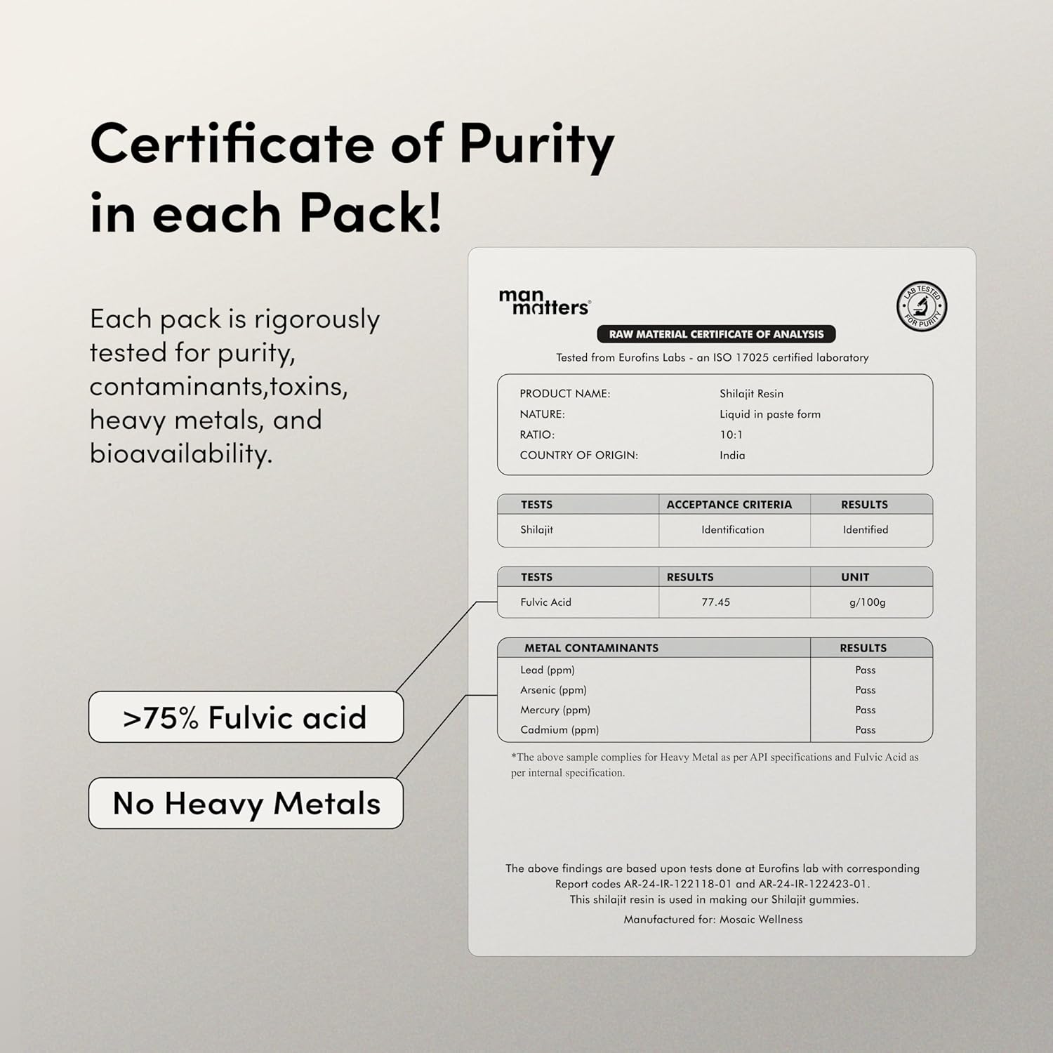 مان ماترز شيلاجيت جاميز نقي من الهيمالايا مع KSM 66 أشواغاندا 60 جاميز