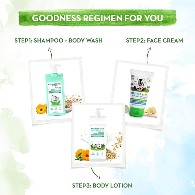 مرحبًا! أنا Mamaearth Milky Soft Head to Toe Wash وأنا هنا لتنظيف وتغذية بشرة وشعر طفلك الصغير. أنا غسول للجسم وشامبو لطيف 2 في 1، مصنوع من مكونات طبيعية مفيدة مثل الحليب والشوفان والكالندولا. لن تحتاجي إلى الكثير من الزجاجات أثناء استحمام طفلك الصغير الآن - فقط زجاجة واحدة لتجعلي وقت الاستحمام مريحًا ومليئًا بالفوائد.