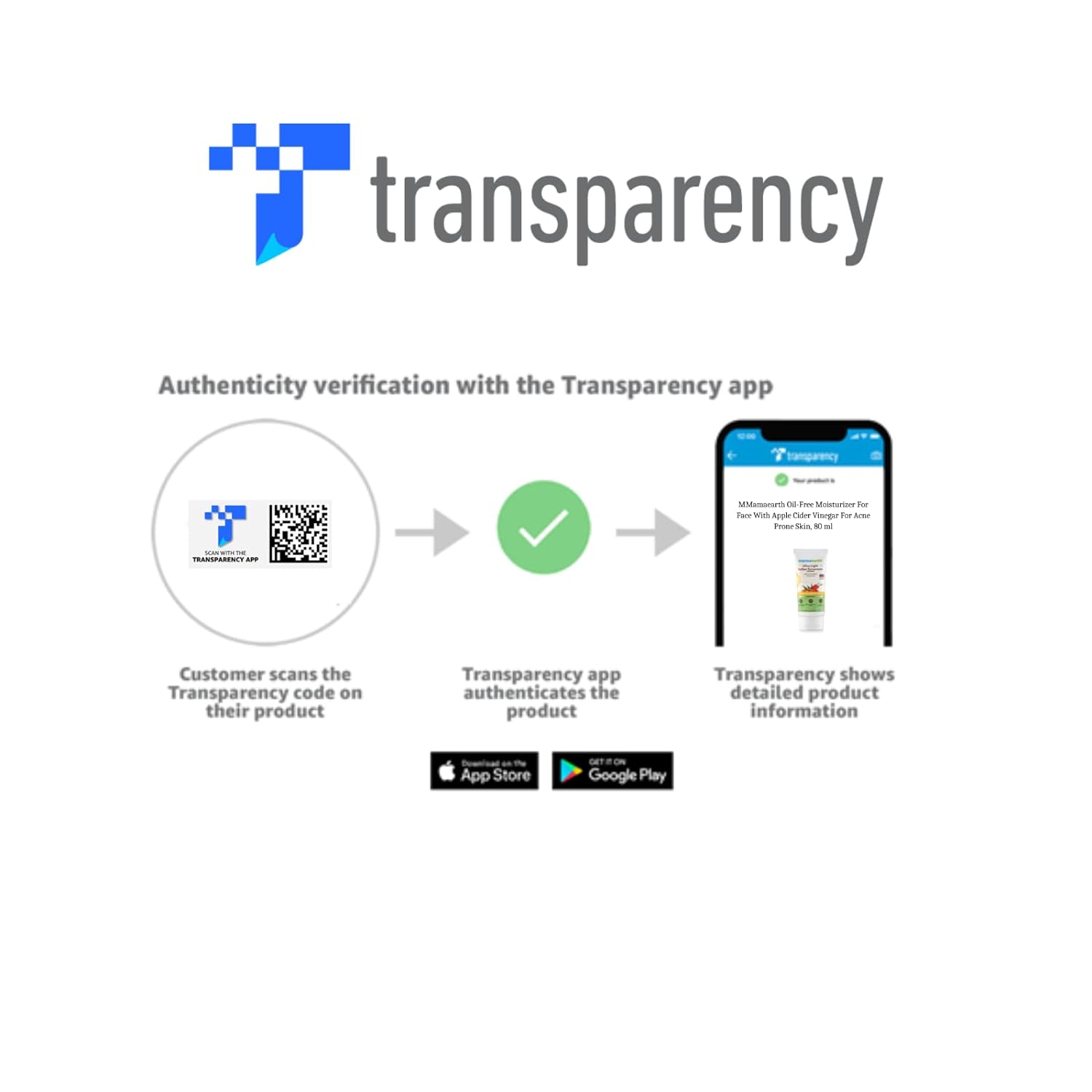 هذا المنتج محمي بواسطة Transparency، الذي يتحقق من أصالة الوحدة ويمكّنك من عرض معلومات غنية عن المنتج الذي اشتريته. عند استلام المنتج، يرجى البحث عن شعار ورمز Transparency. يمكنك مسحه ضوئيًا للتحقق من أصالته باستخدام تطبيق Transparency. لتنزيل تطبيق Transparency، احصل عليه من App Store أو Google Play.