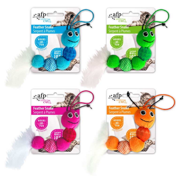 ستقفز القطة على الفرصة لتضع مخالبها على هذا الثعبان المصنوع من الريش. إنه مملوء بالنعناع البري ويتميز بذيل ريشي سيبقي القطة مشغولة بالتأكيد.