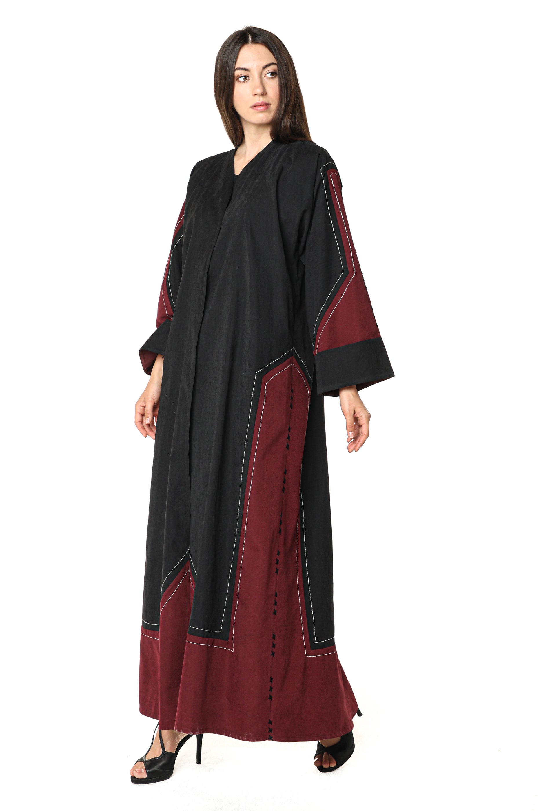 MOiSTREET عباءة شاموا باللونين الأسود والكستنائي مع زخارف من الخيوط