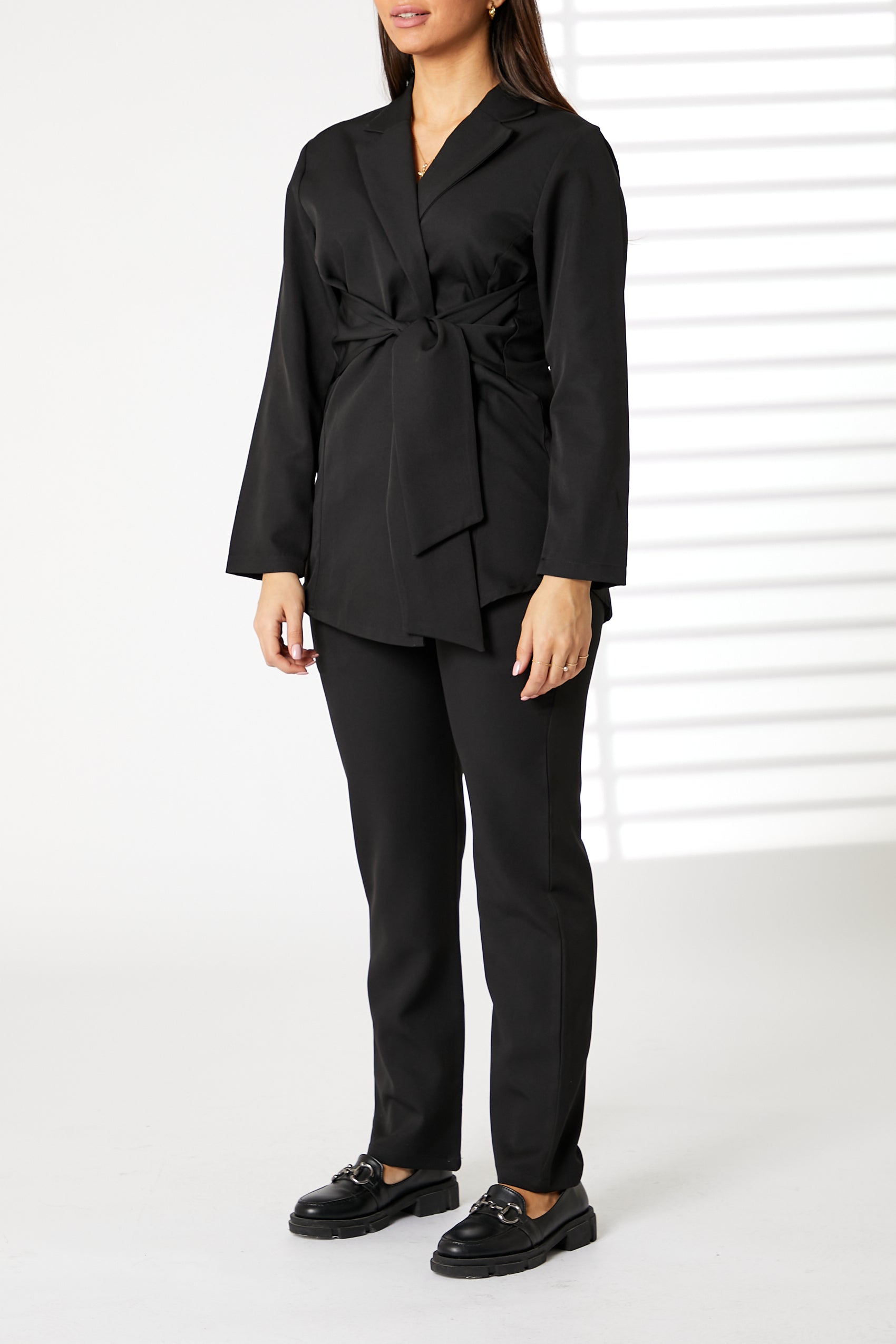 MOiSTREET طقم بليزر وبنطال من قماش الكريب الأسود من Barbie