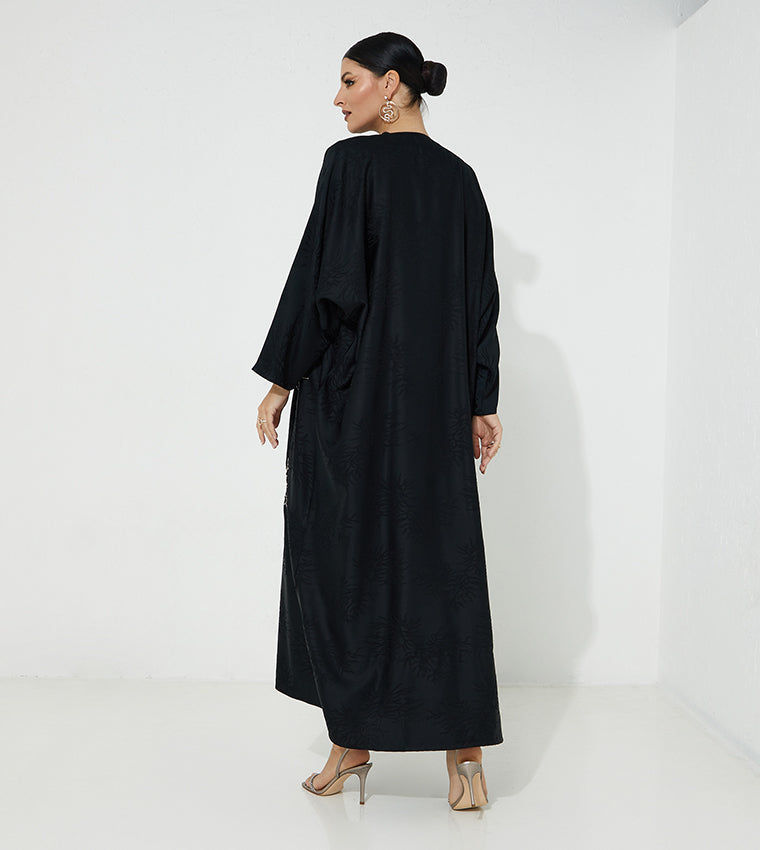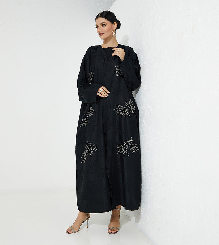 MOiSTREET عباءة سوداء مطرزة بالجاكار