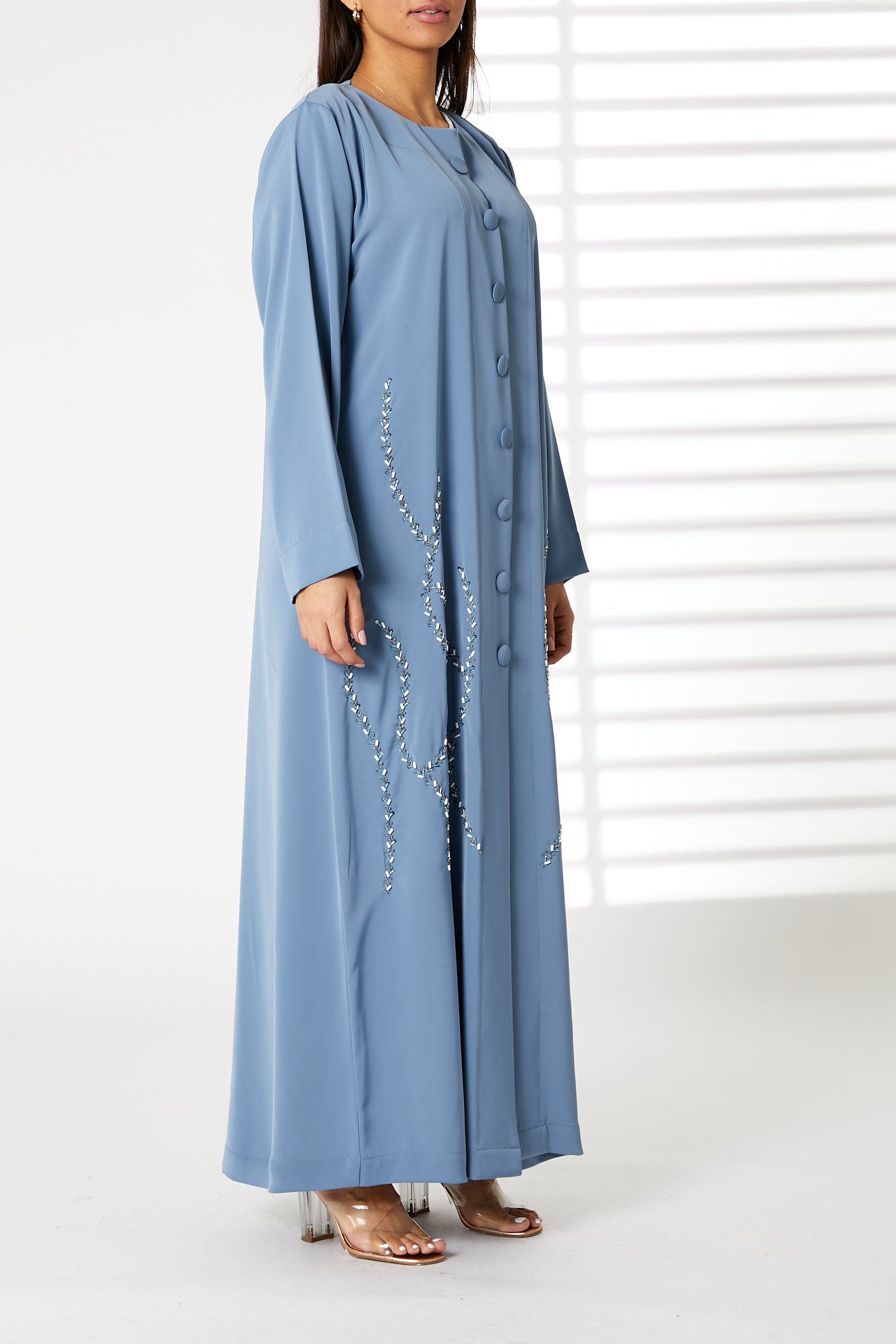 MOiSTREET أباية نيدا مفتوحة مطرزة باللون الأزرق