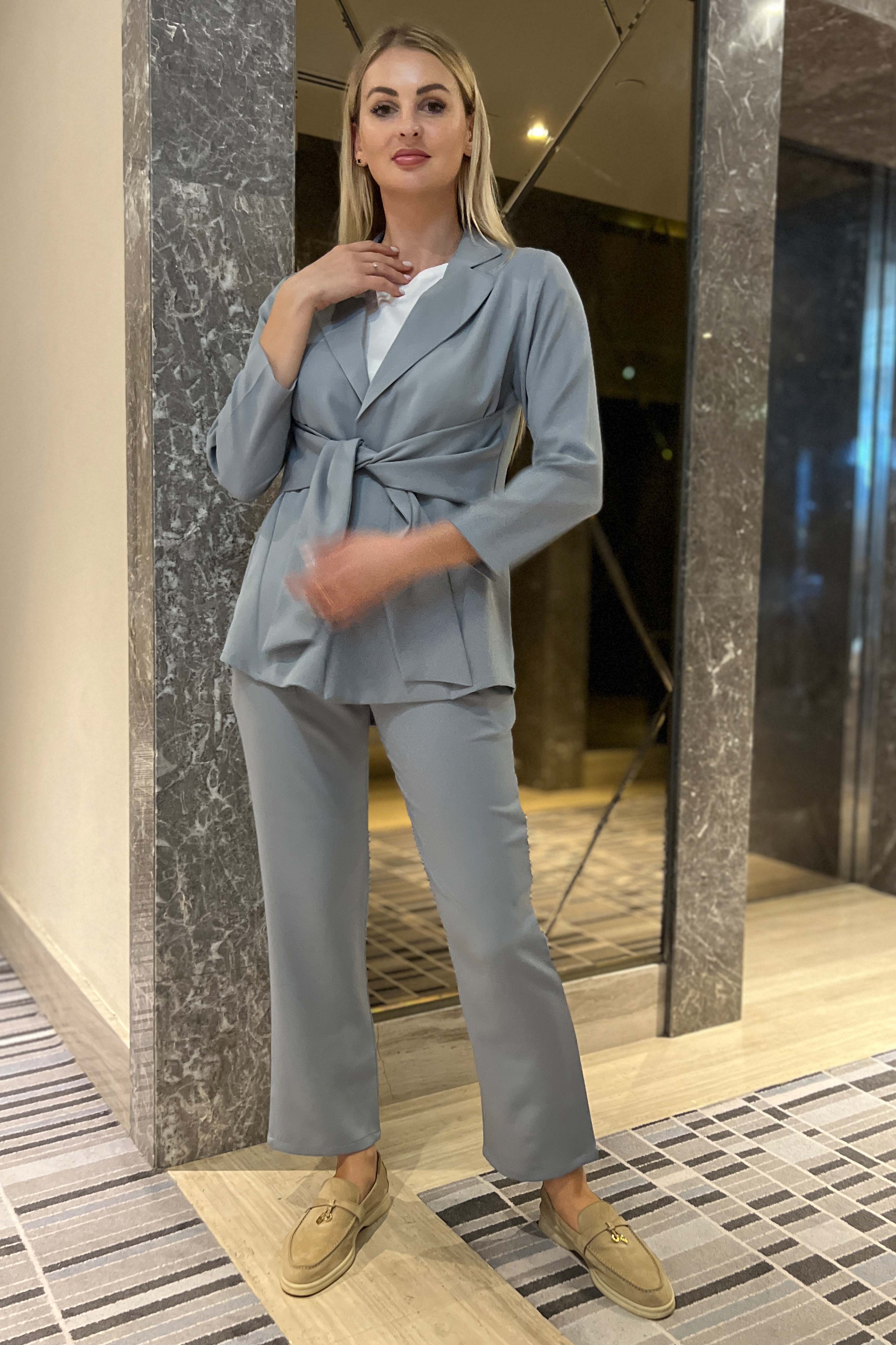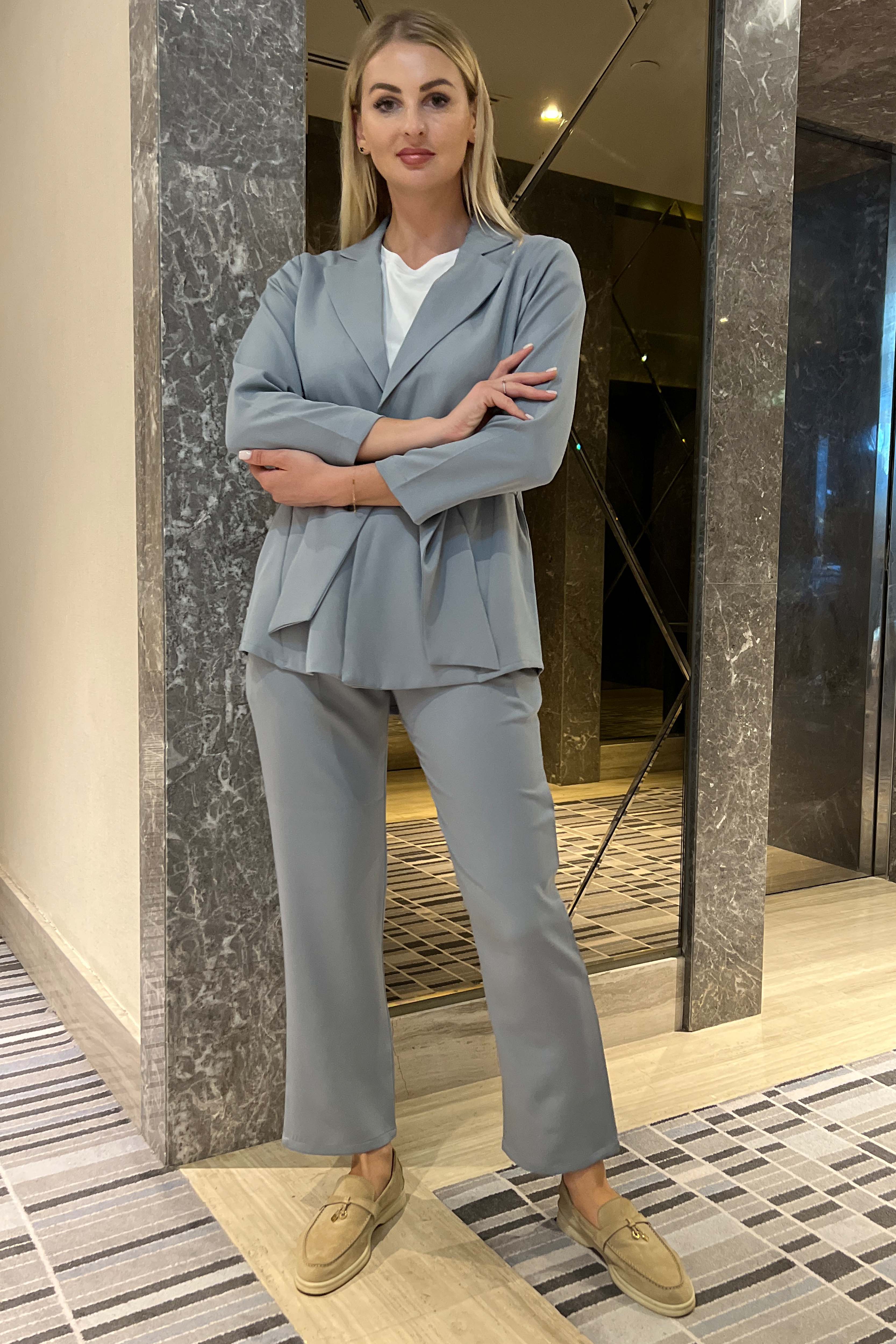 MOiSTREET أزرق مائل إلى اللون السماوي طقم بليزر وبنطلون من قماش الكريب من Barbie