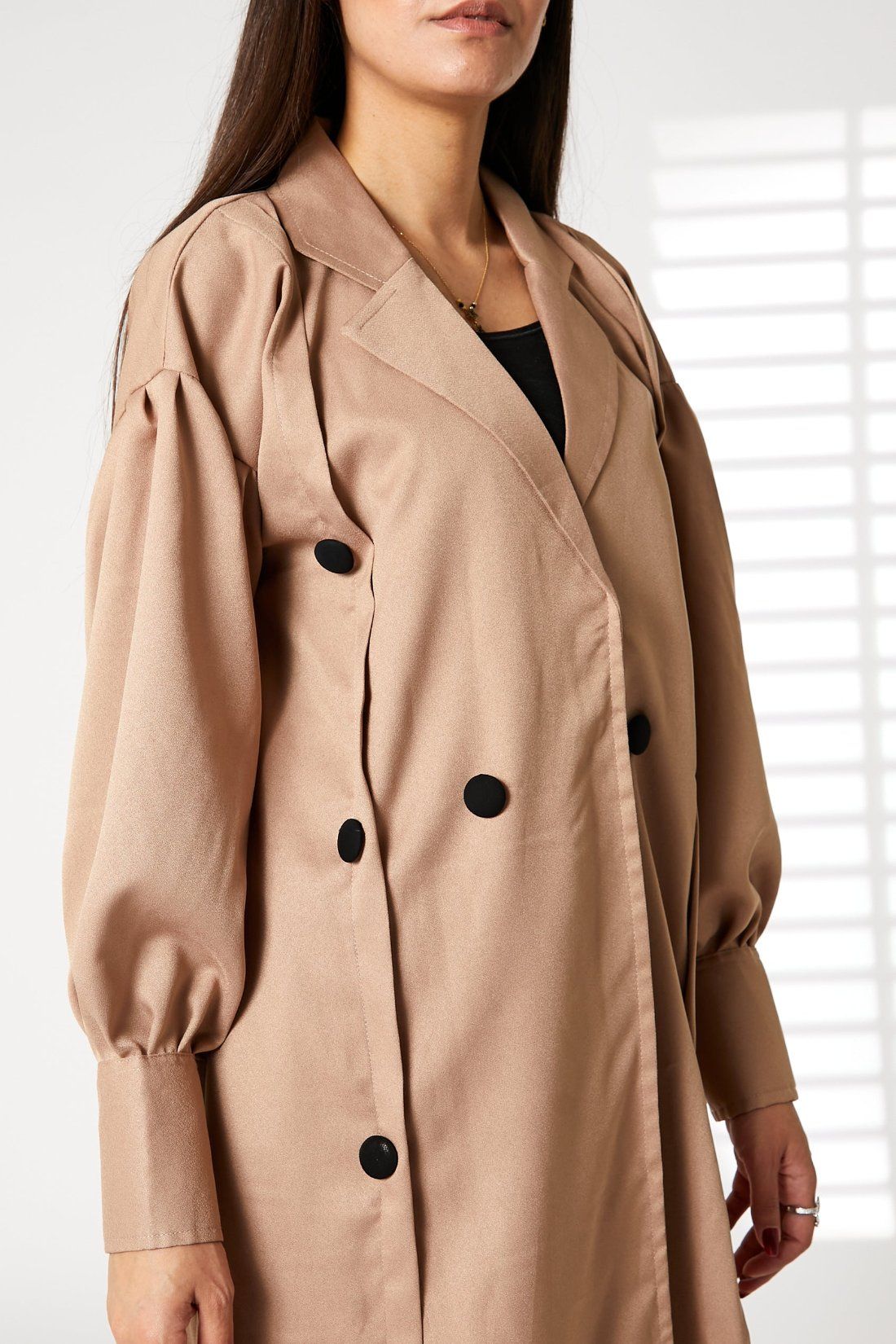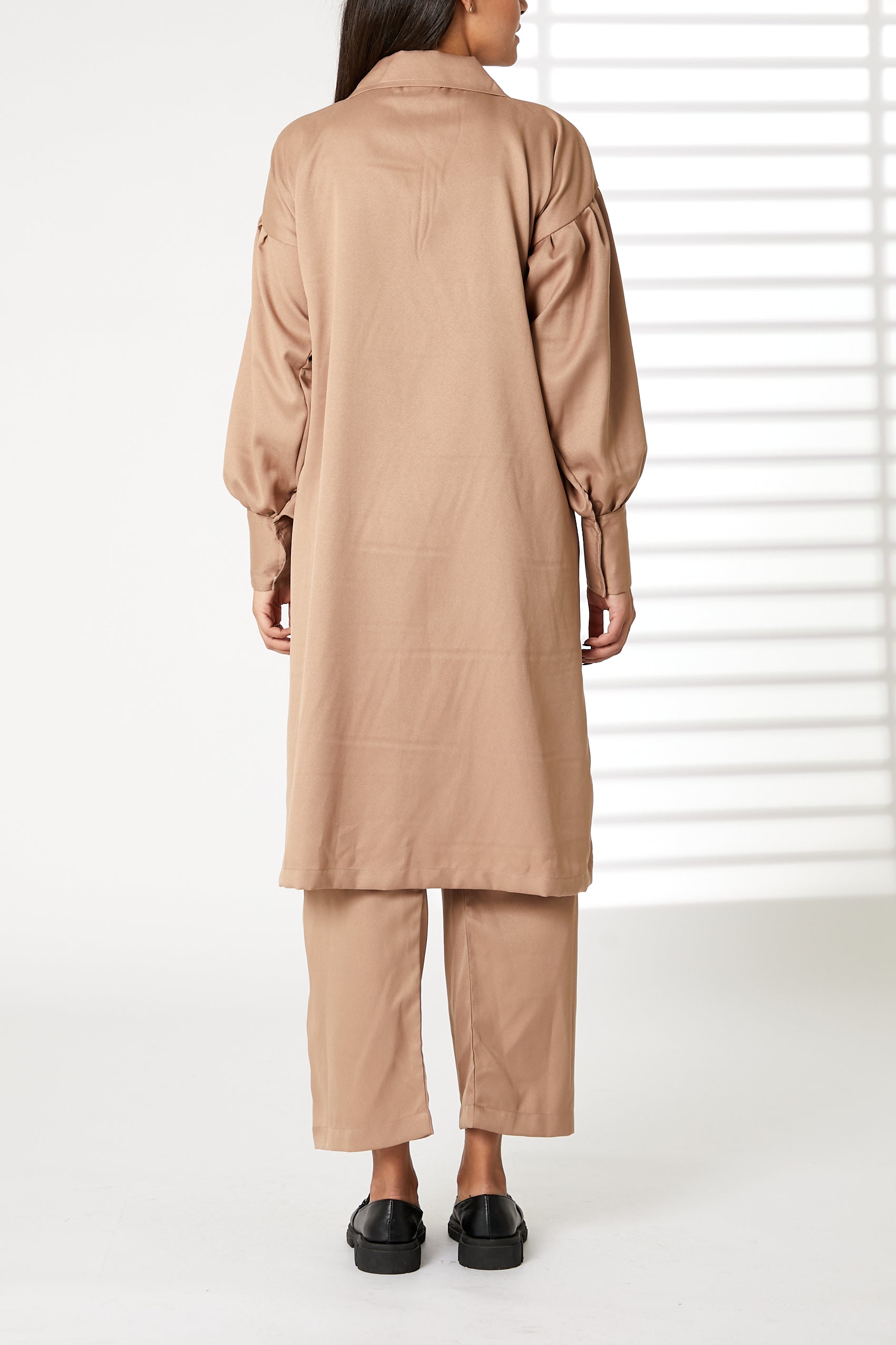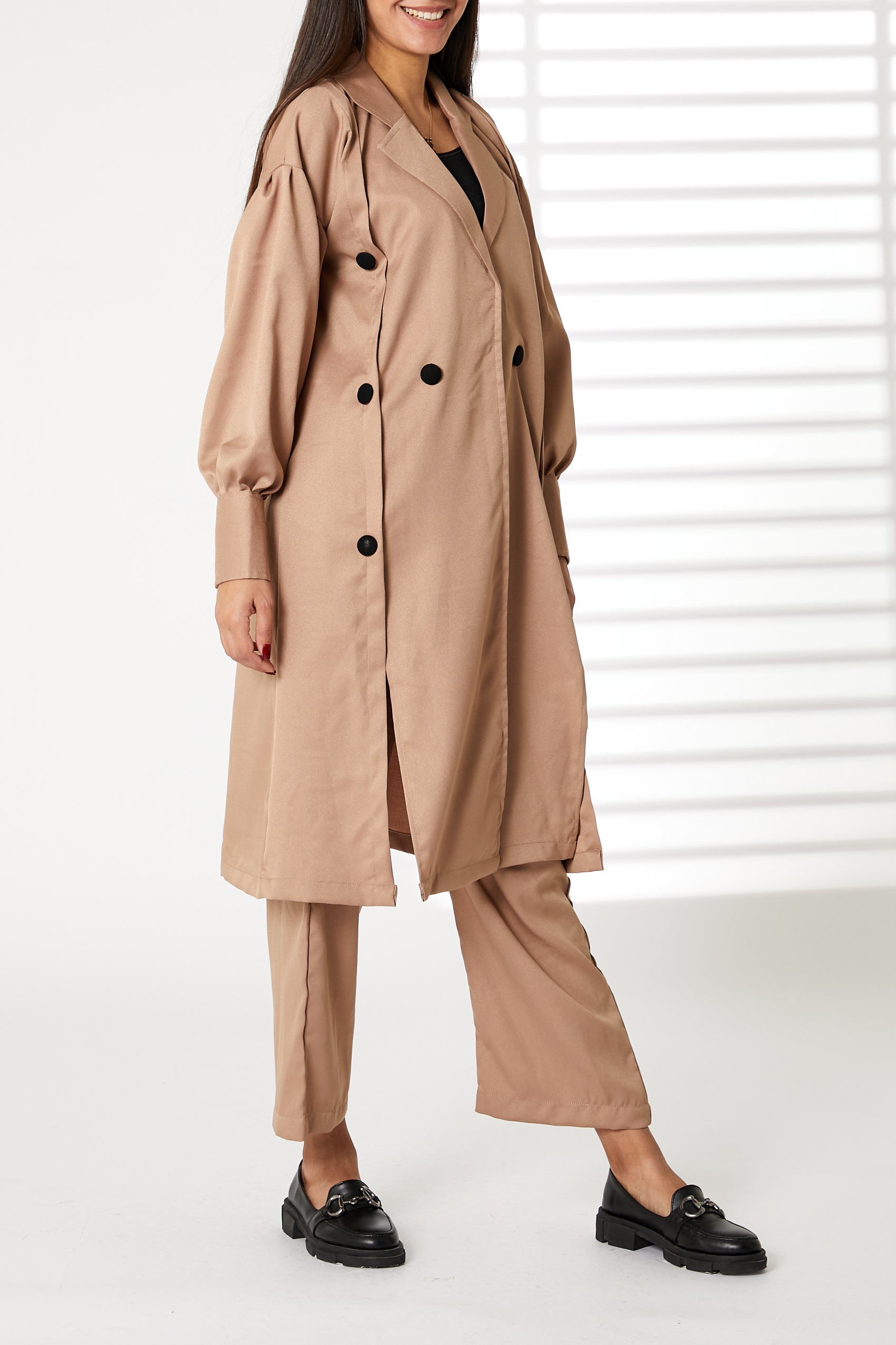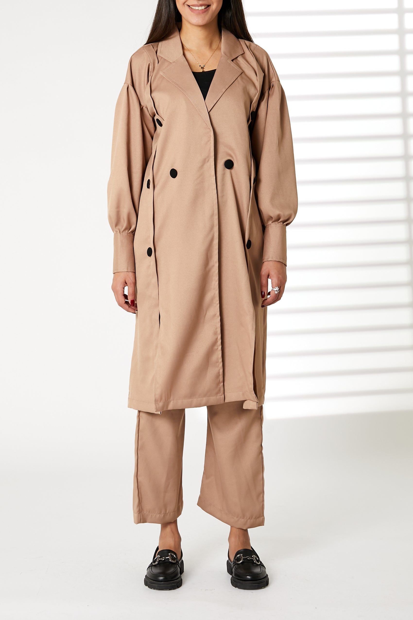 MOiSTREET طقم معطف كريب باربى بني متوسط الطول
