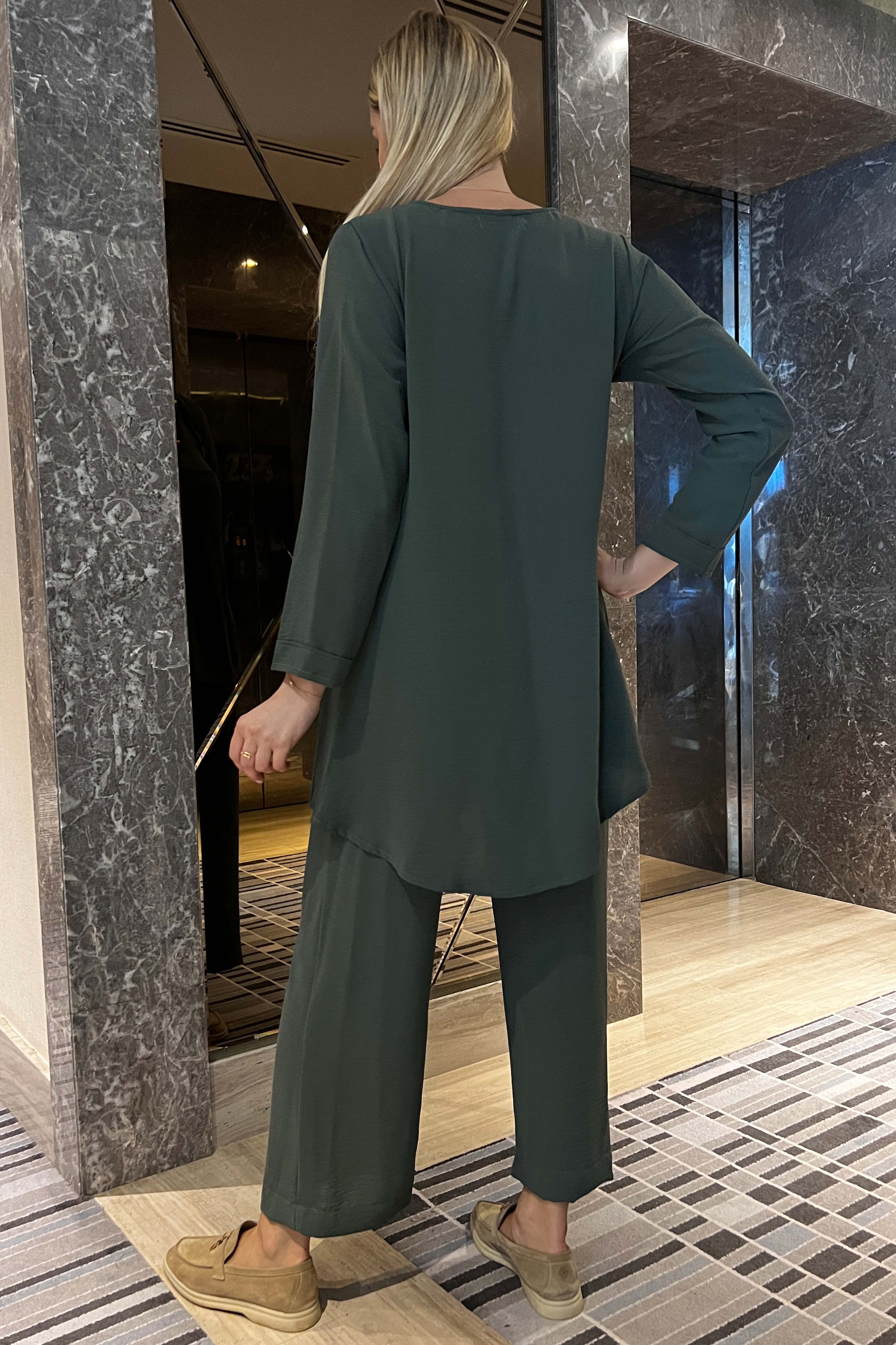 MOiSTREET طقم قميص وسروال من قماش CEY باللون الأخضر المائل إلى السماوي
