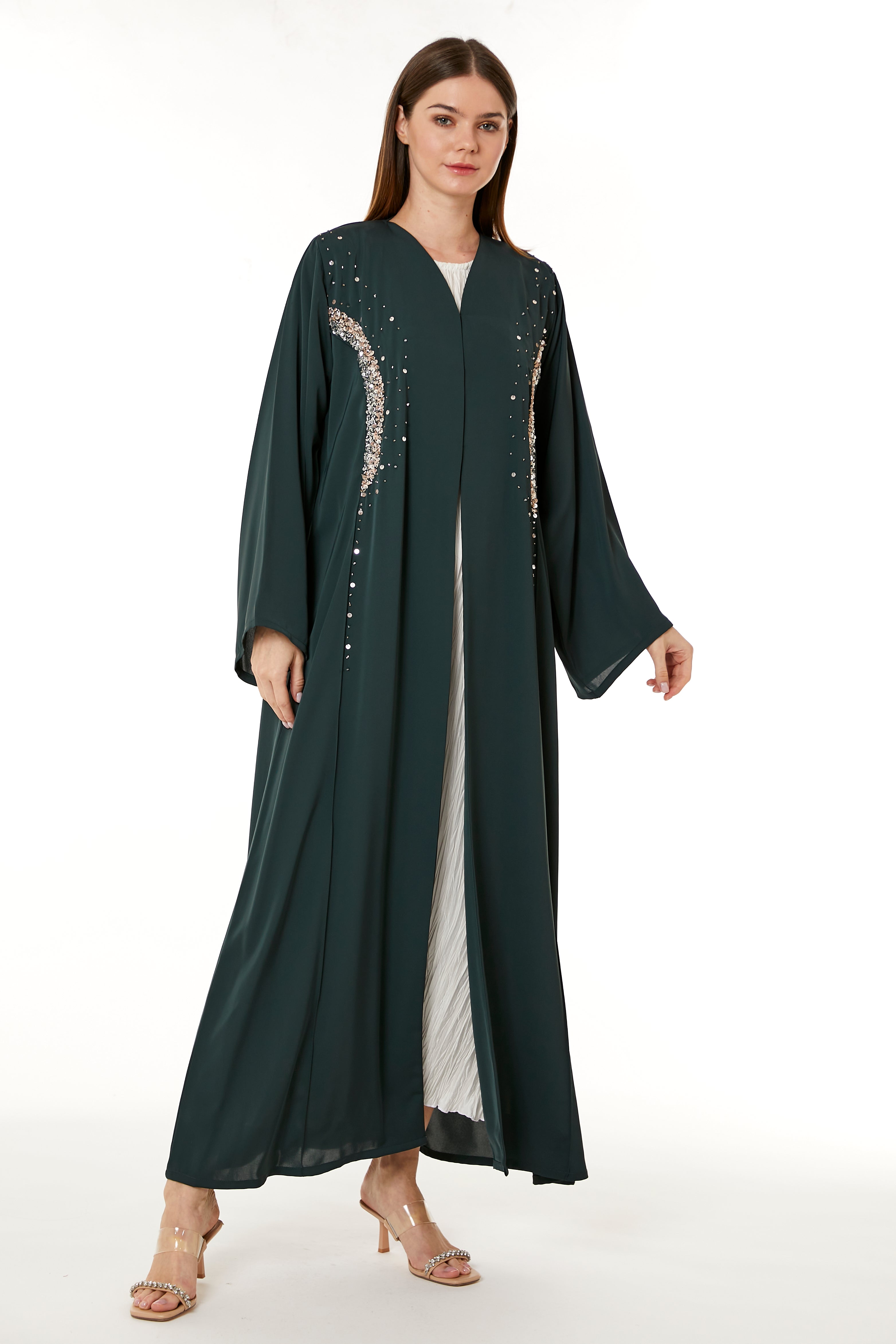 MOiSTREET أخضر داكن كوري نيدا مطرزة يدويًا عباية