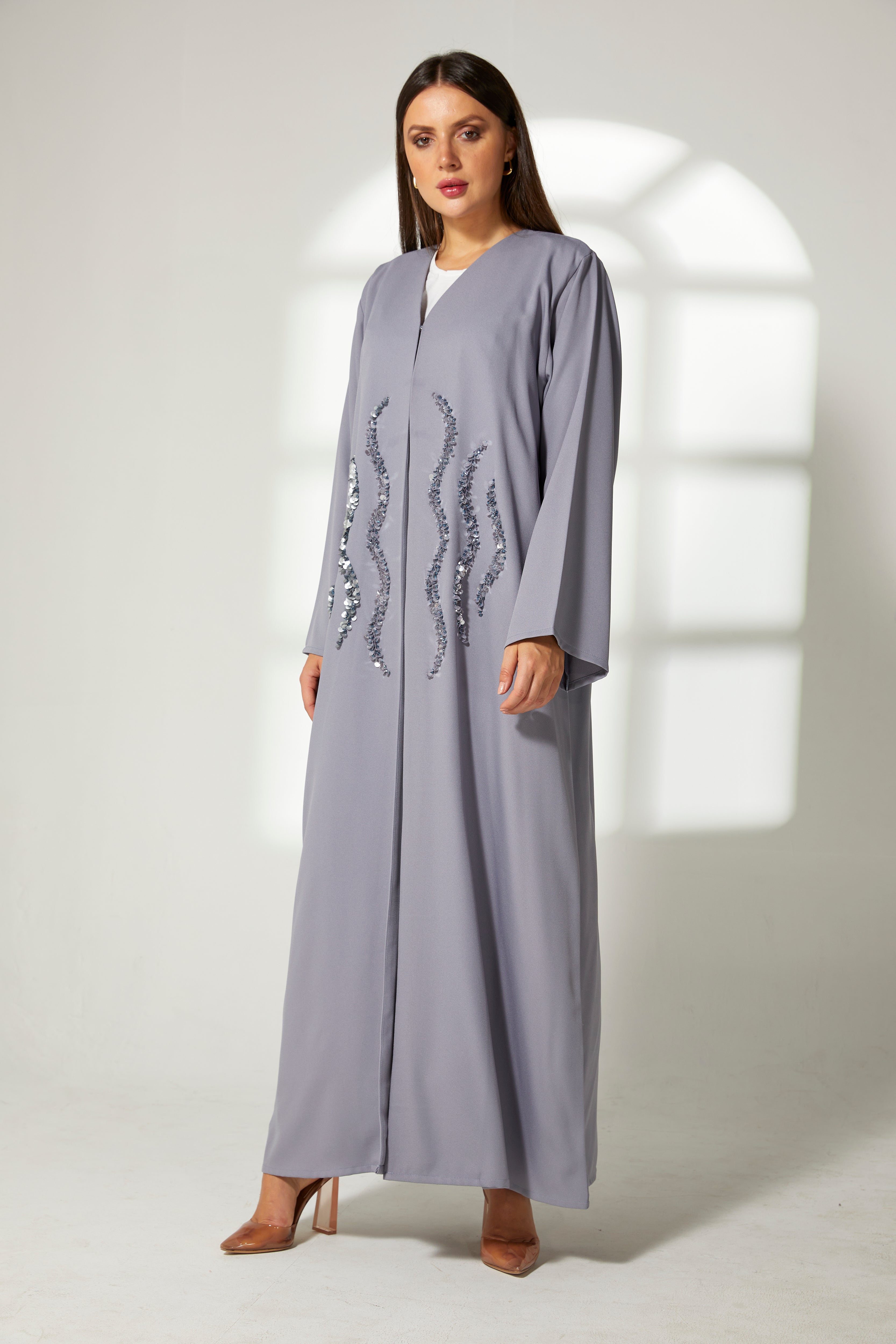 MOiSTREET عباءة كورية رمادية من الكريب المطرز