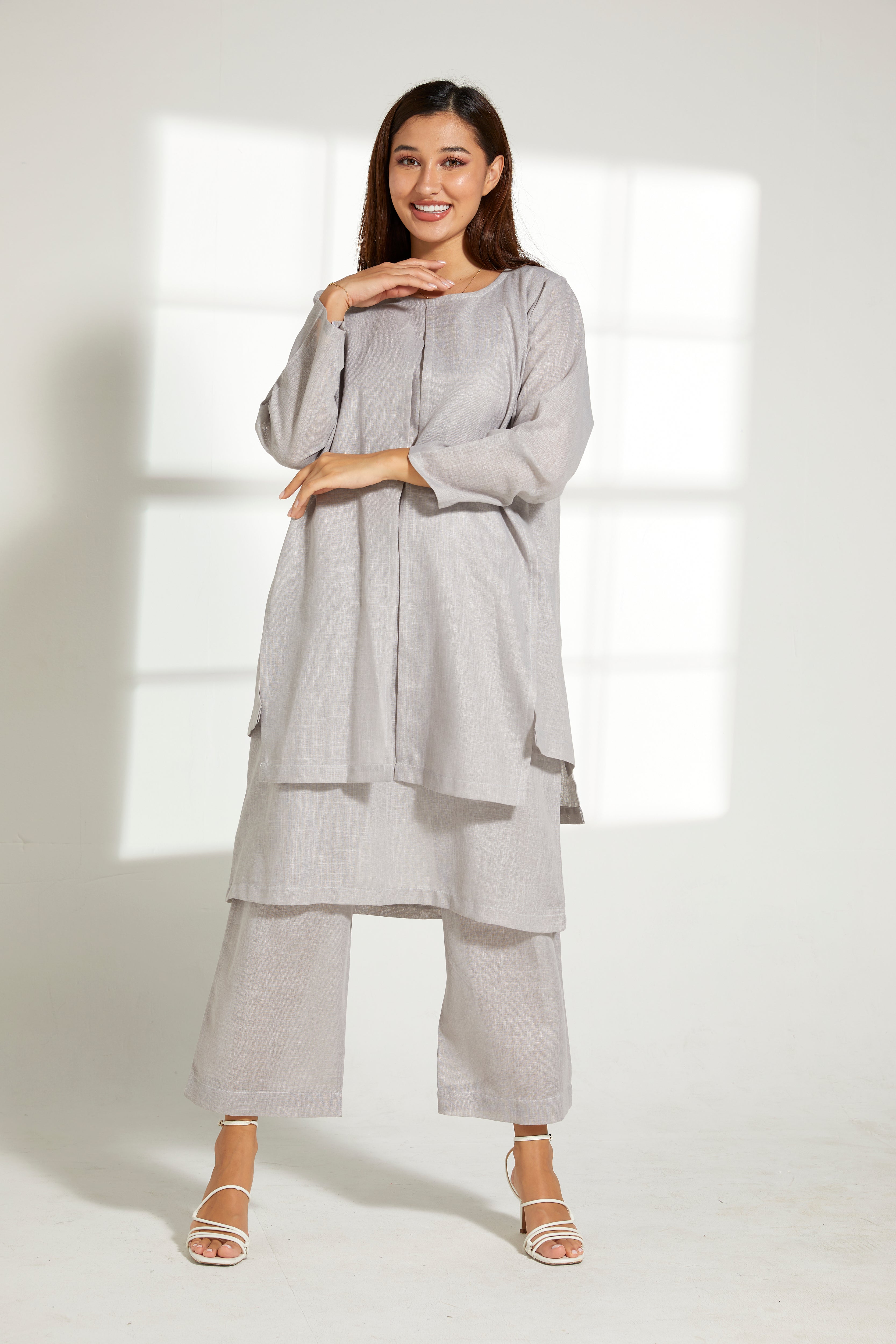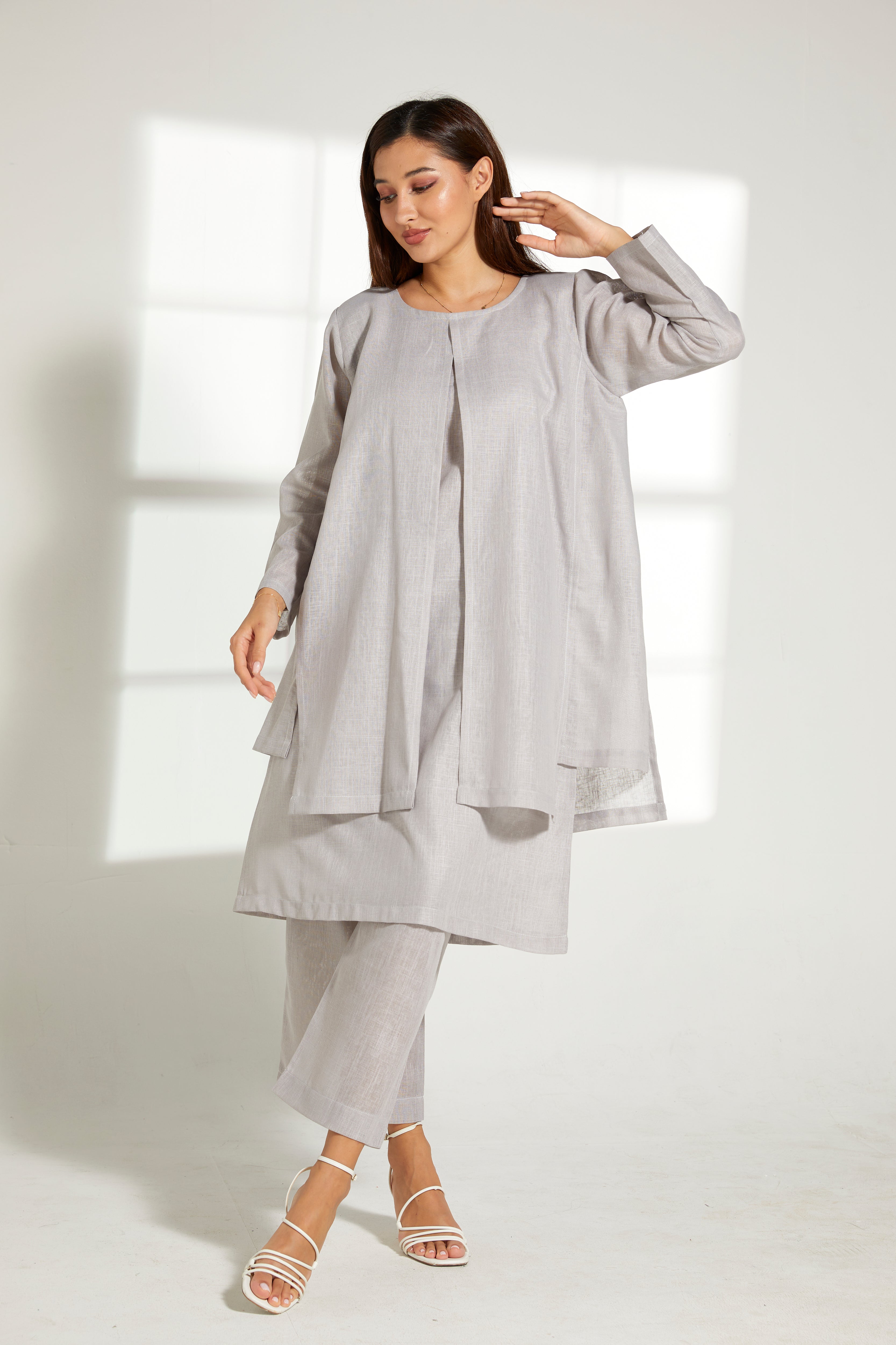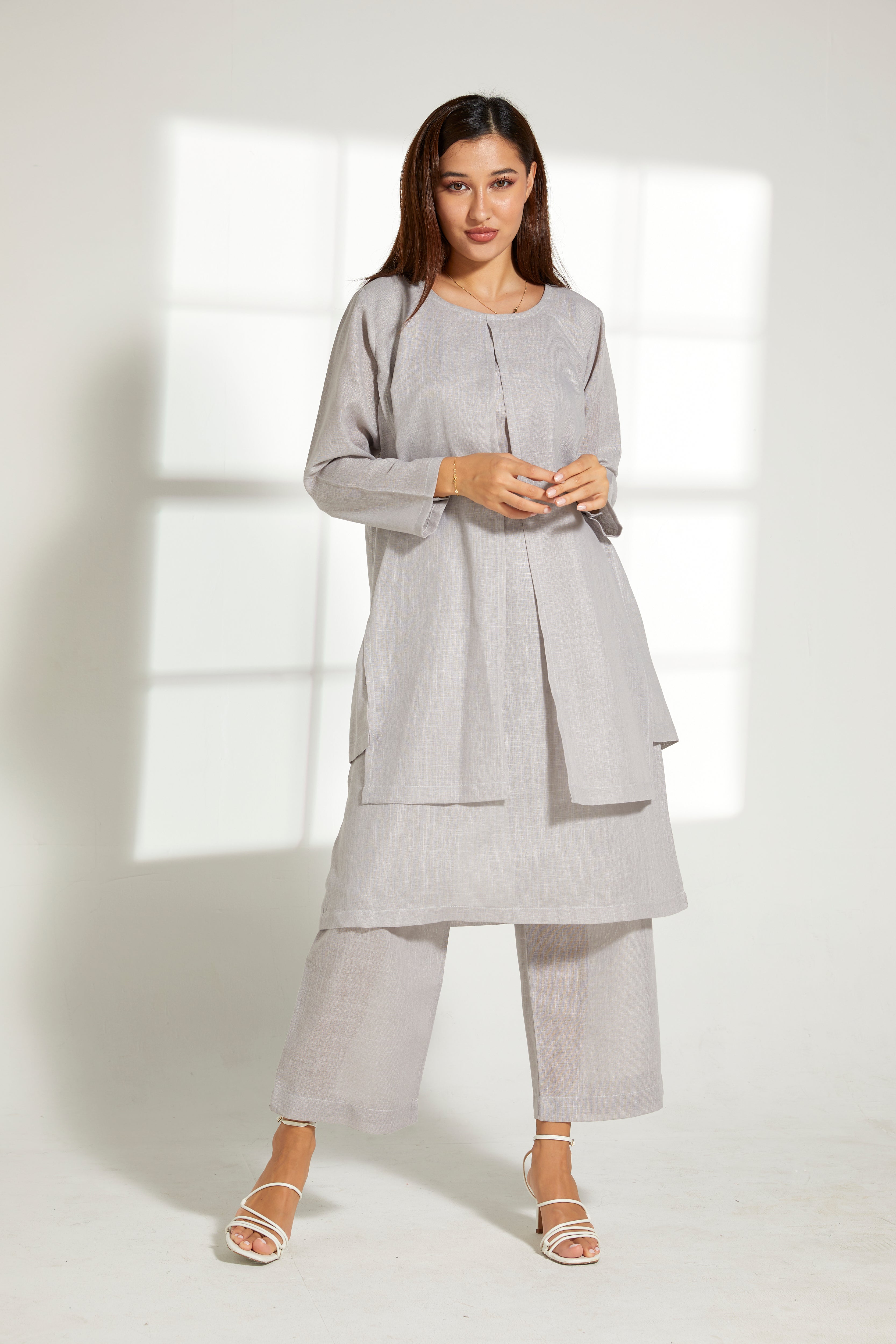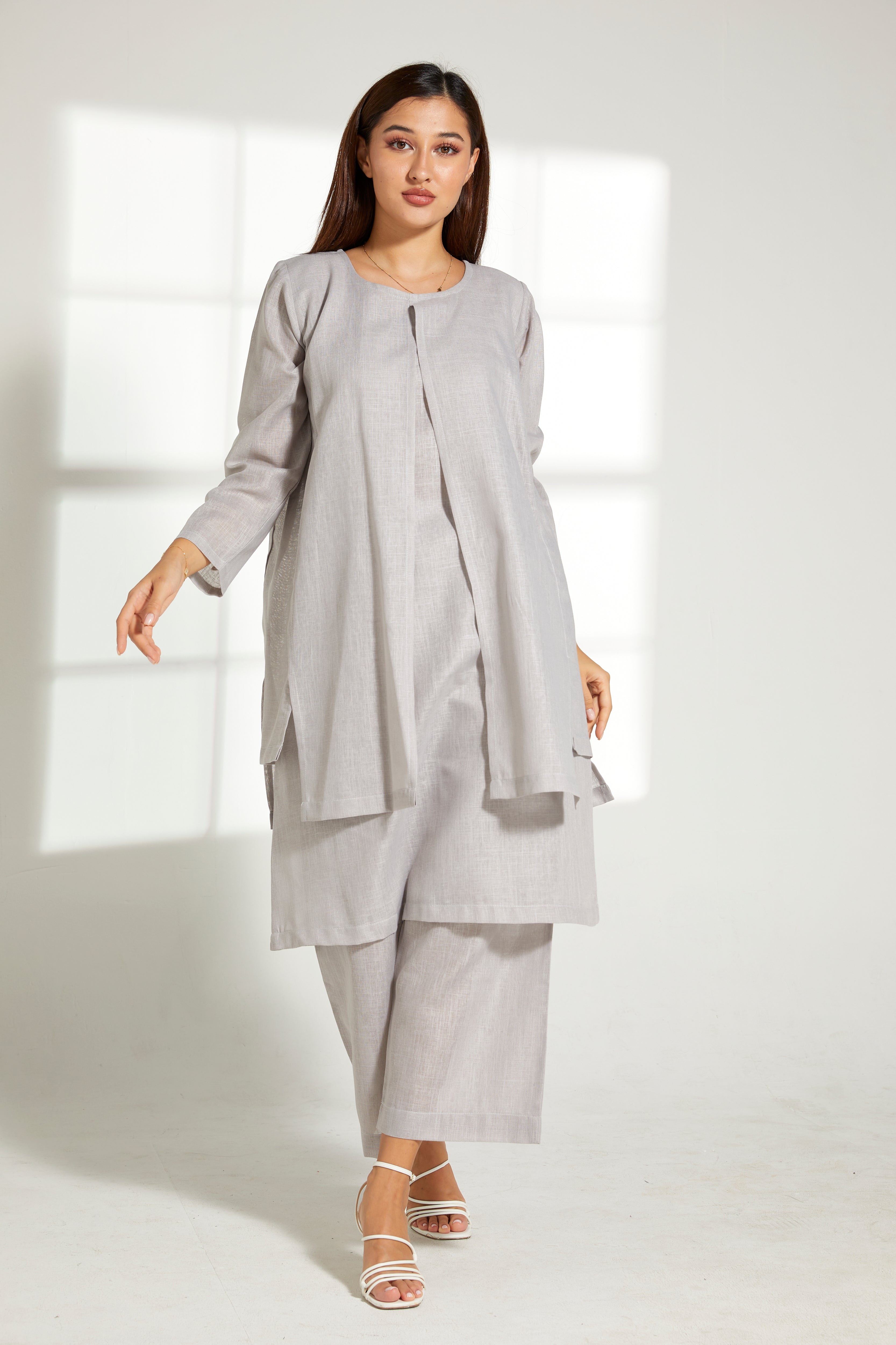 MOiSTREET طقم قميص وبنطال من قماش الكتان الرمادي