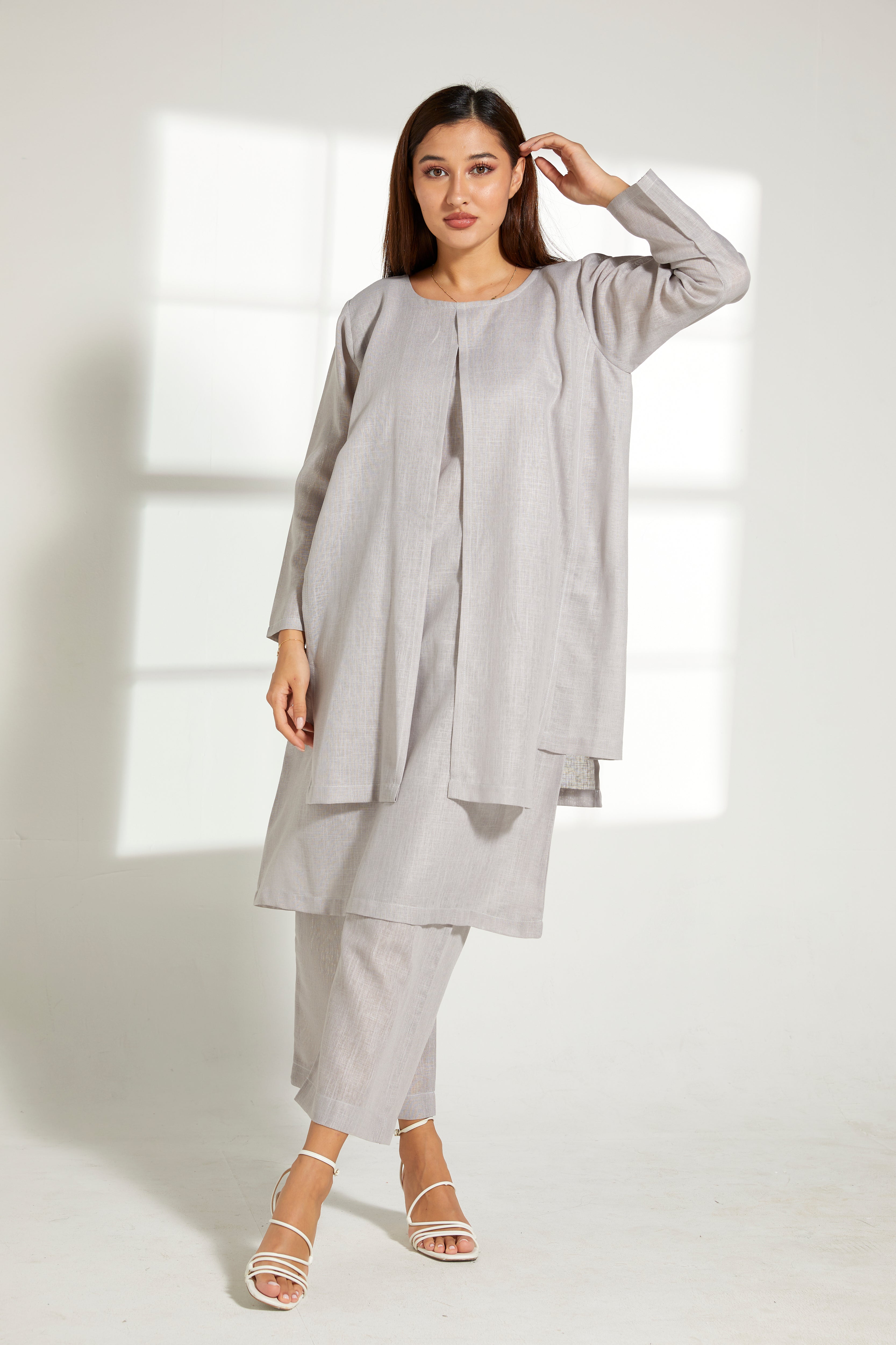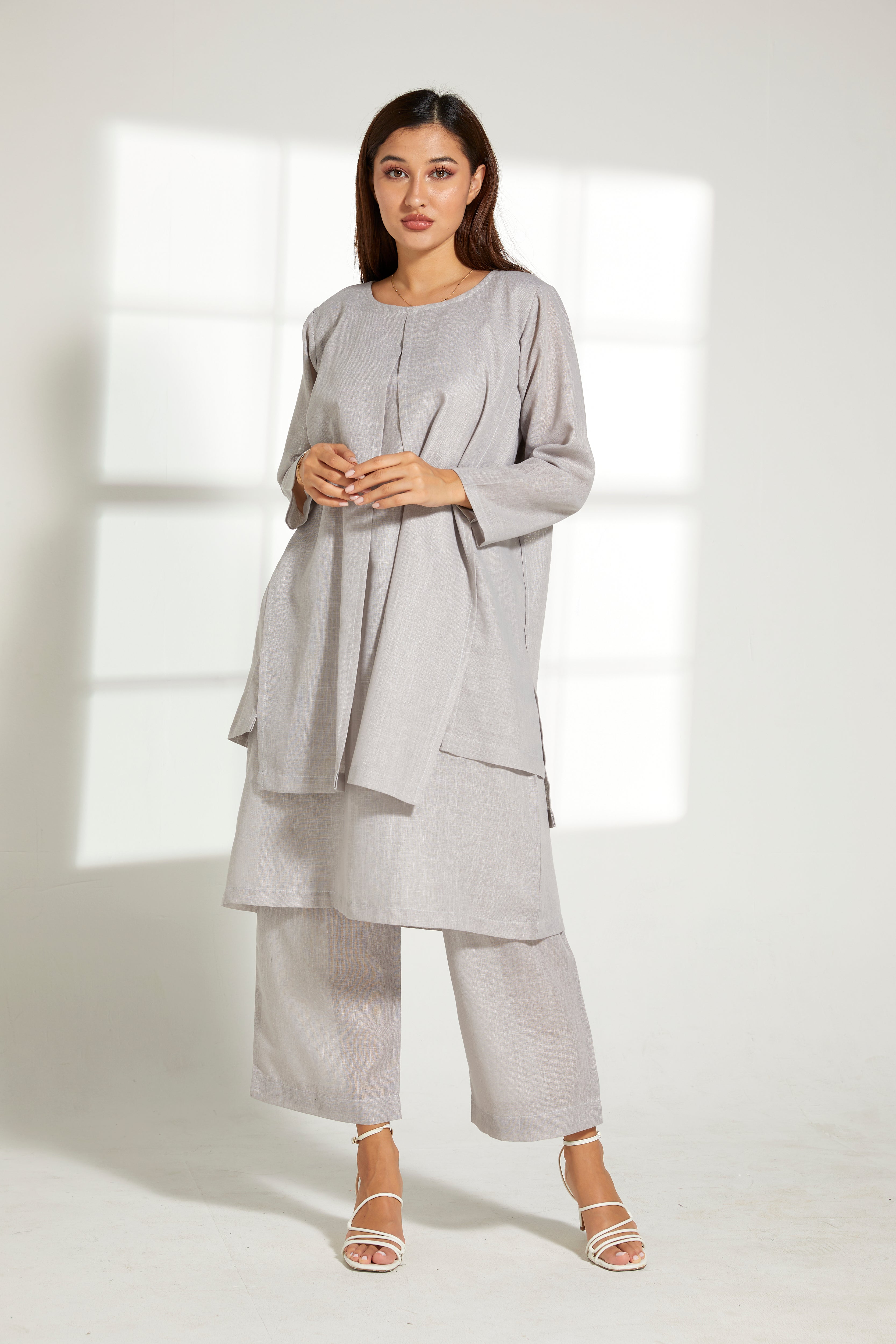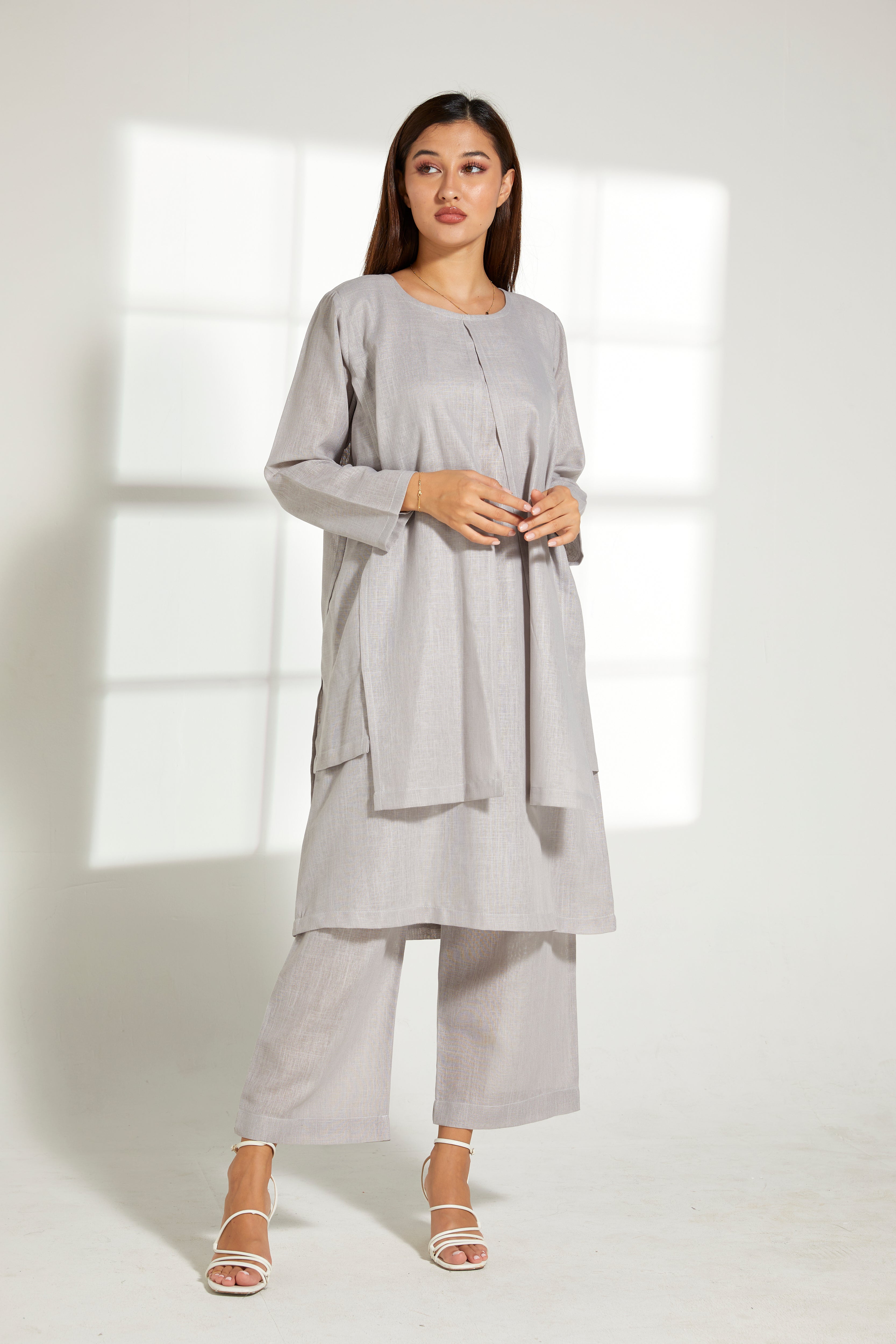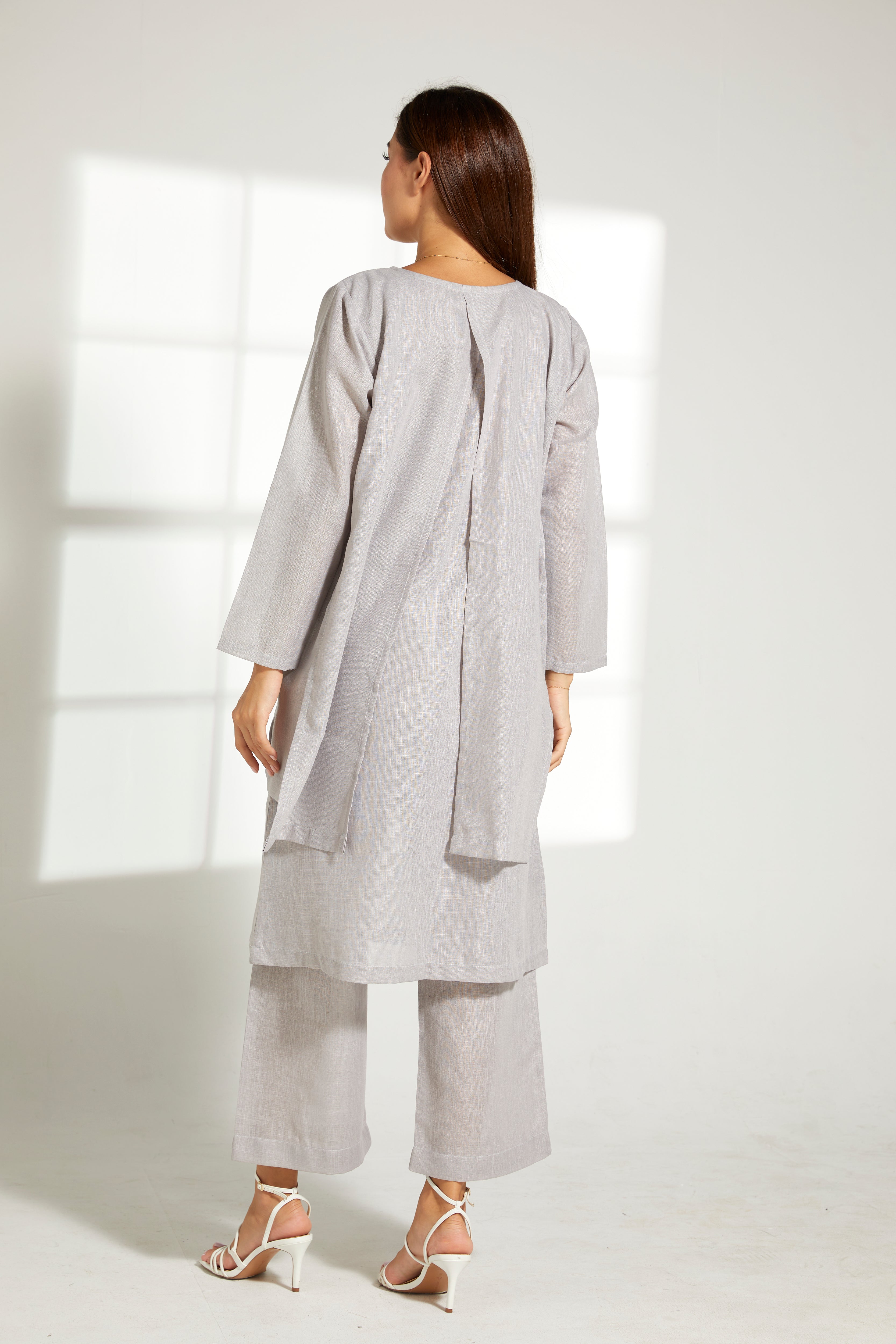 MOiSTREET طقم قميص وبنطال من قماش الكتان الرمادي