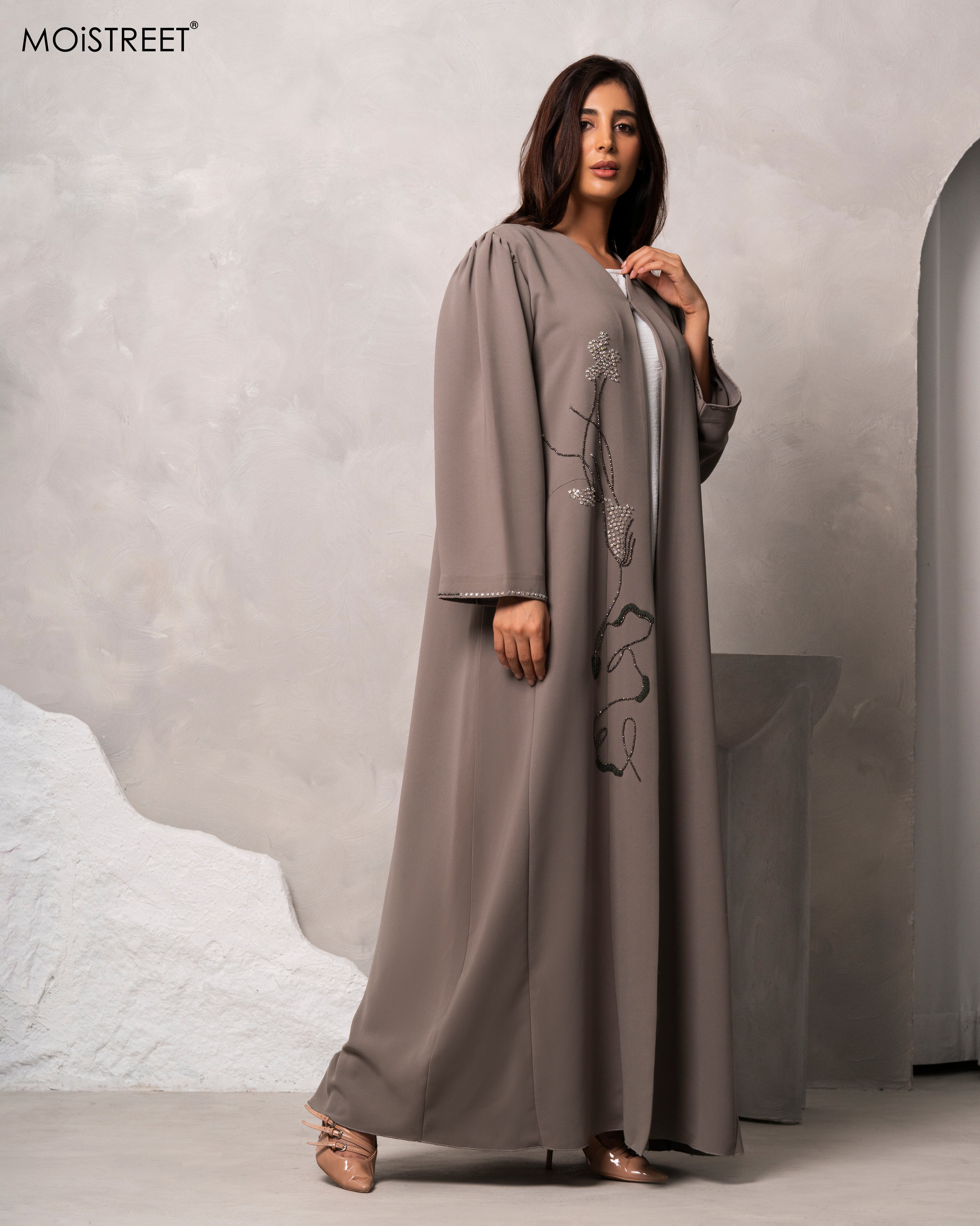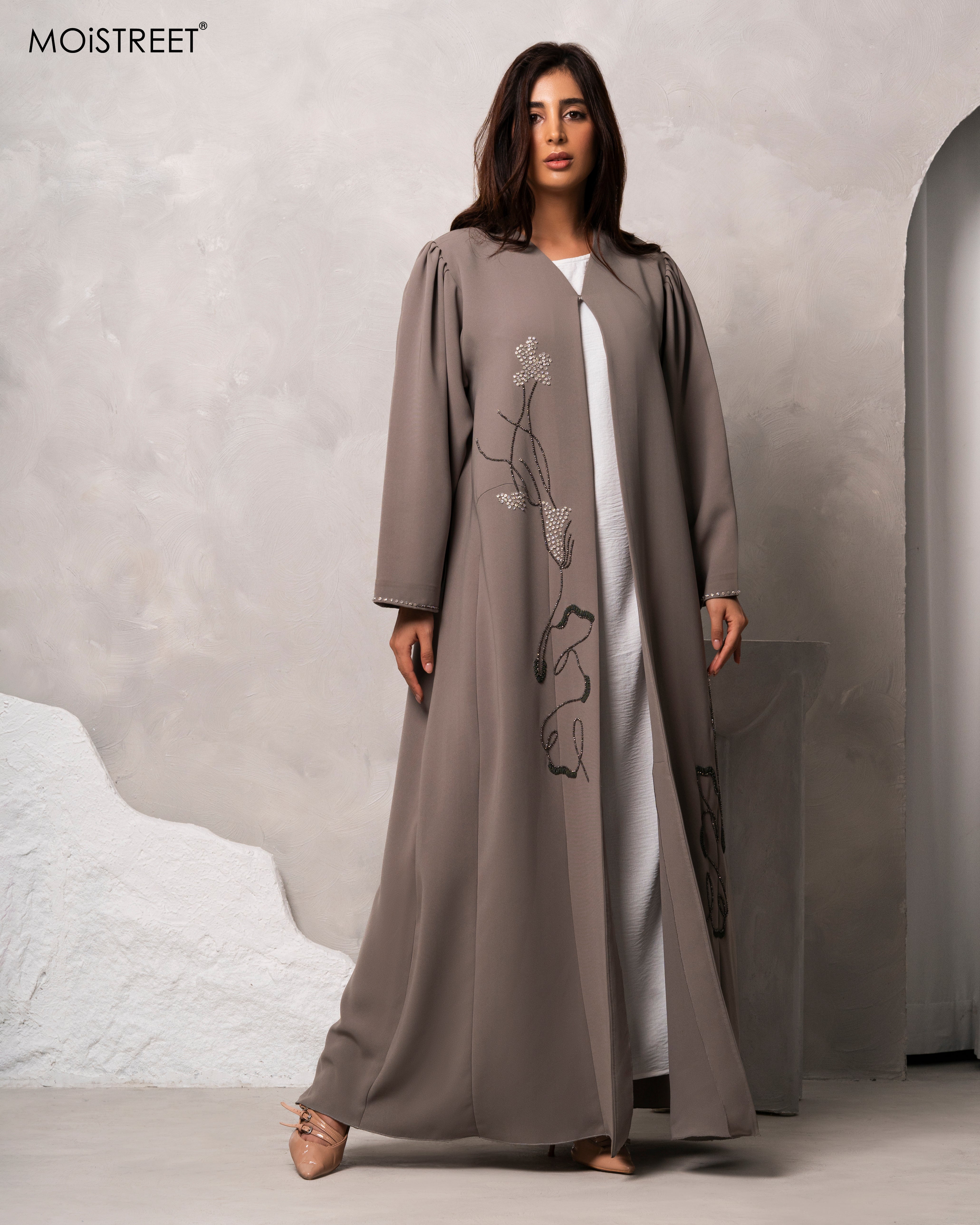 عباءة باربي كريب مصنوعة يدوياً من MOiSTREET، متوفرة بجميع الألوان، مصنوعة من قبل أفضل الخياطين في الشرق الأوسط بعناية ودقة، وتتميز بأفضل تشطيب وقص يمكن أن تجده في سوق الملابس المحتشمة.