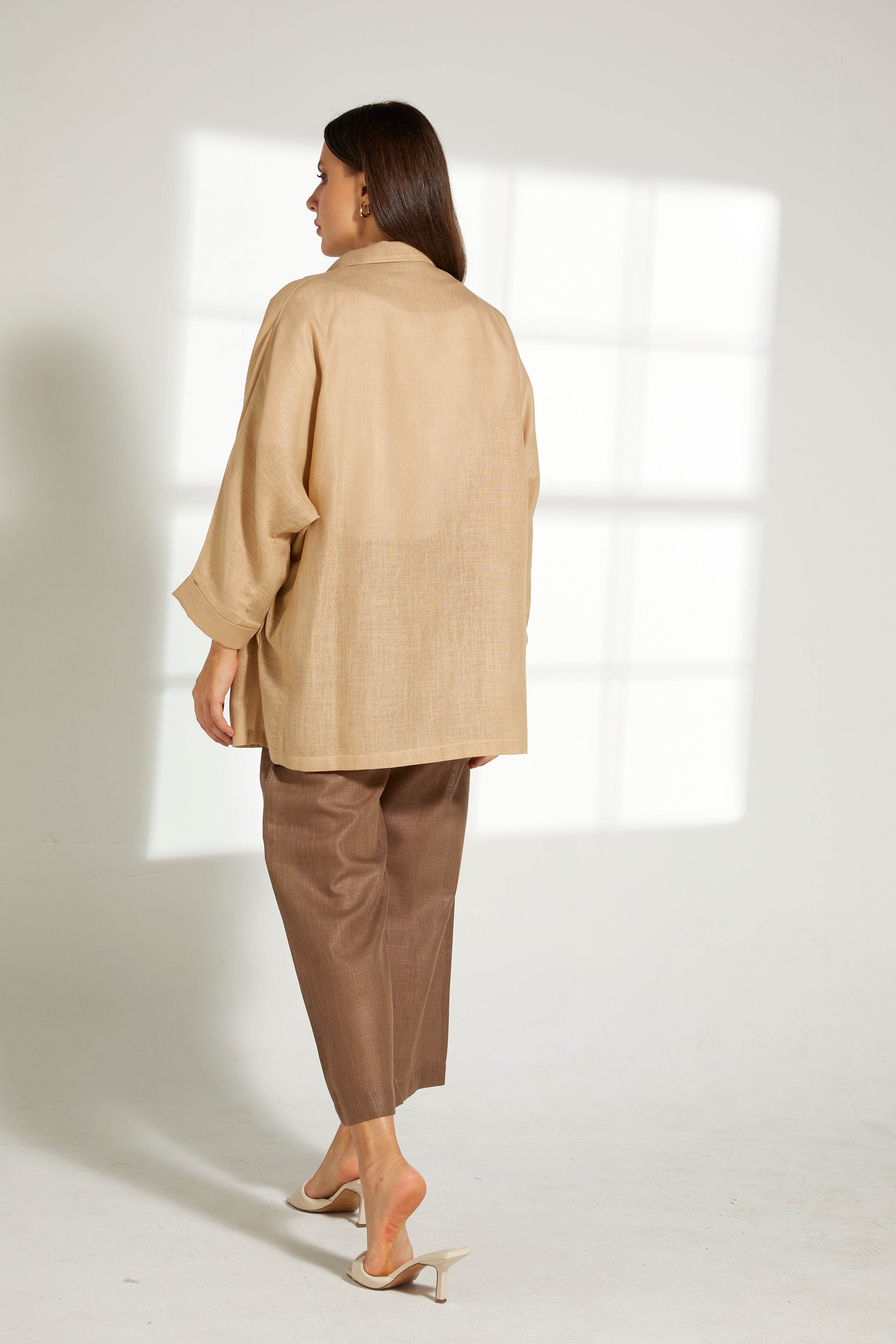 MOiSTREET طقم قميص وبنطال من قماش الكتان متعدد الألوان