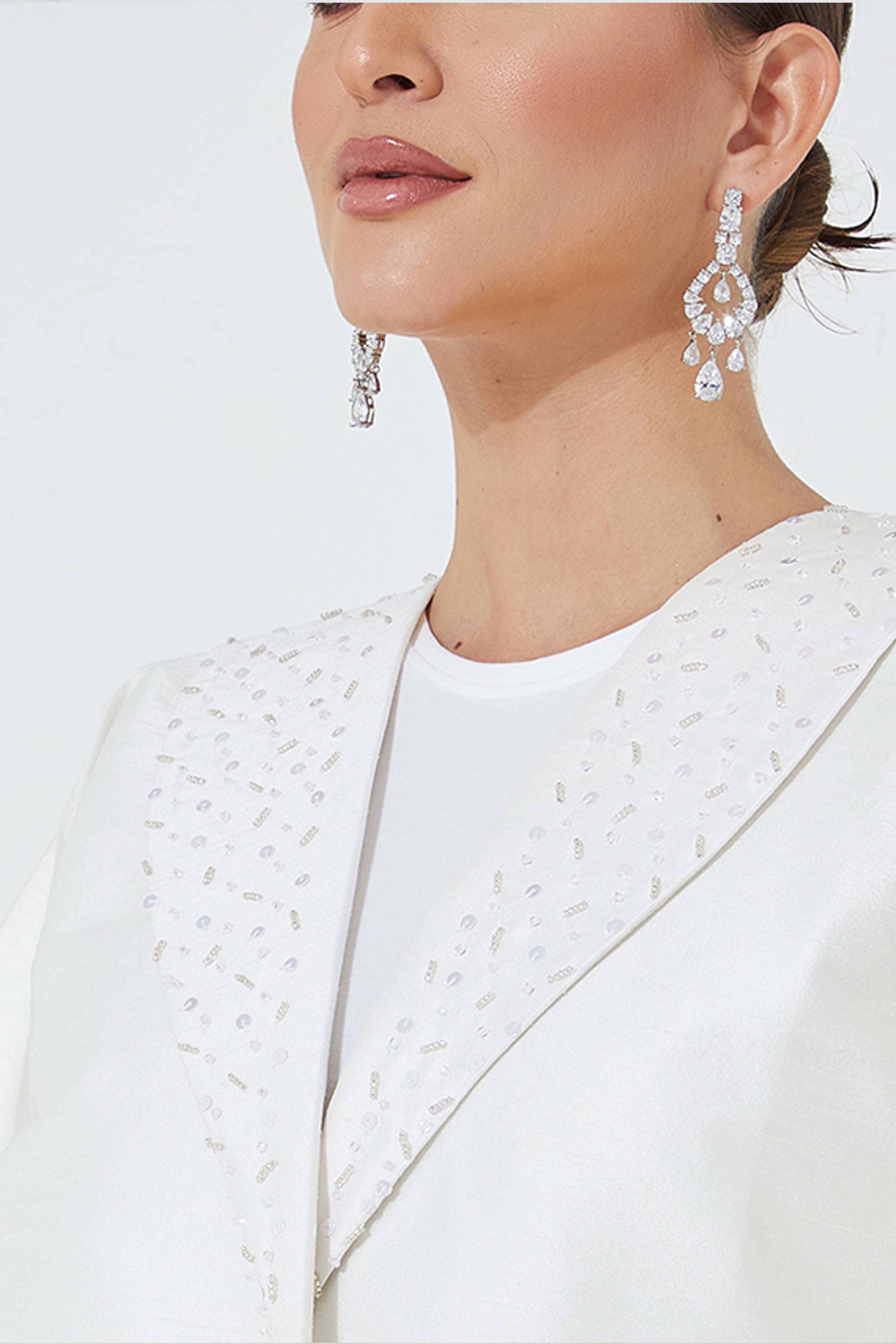 MOiSTREET عباءة هندية من الحرير باللون الأبيض المائل للرمادي مع زخارف يدوية
