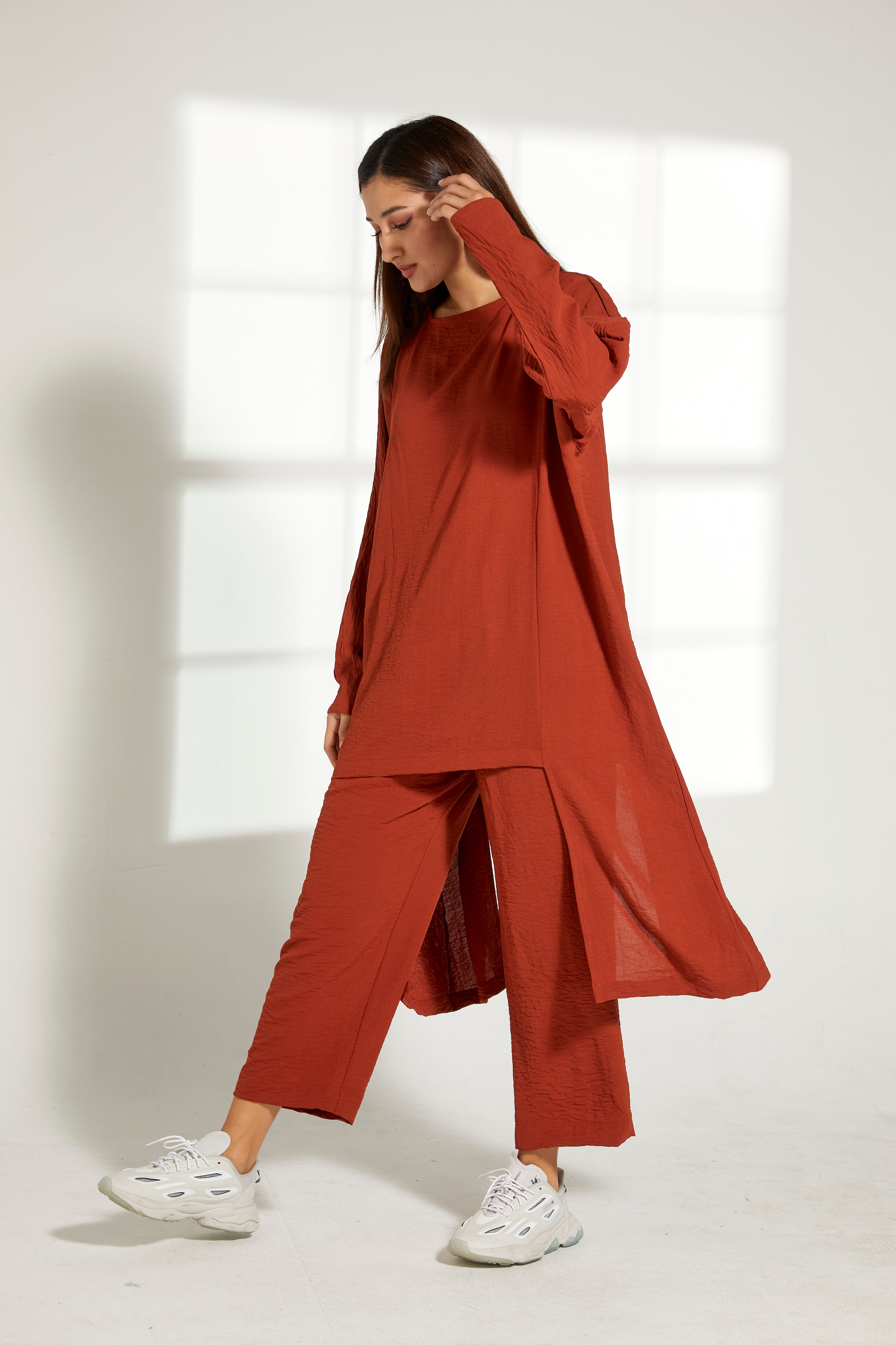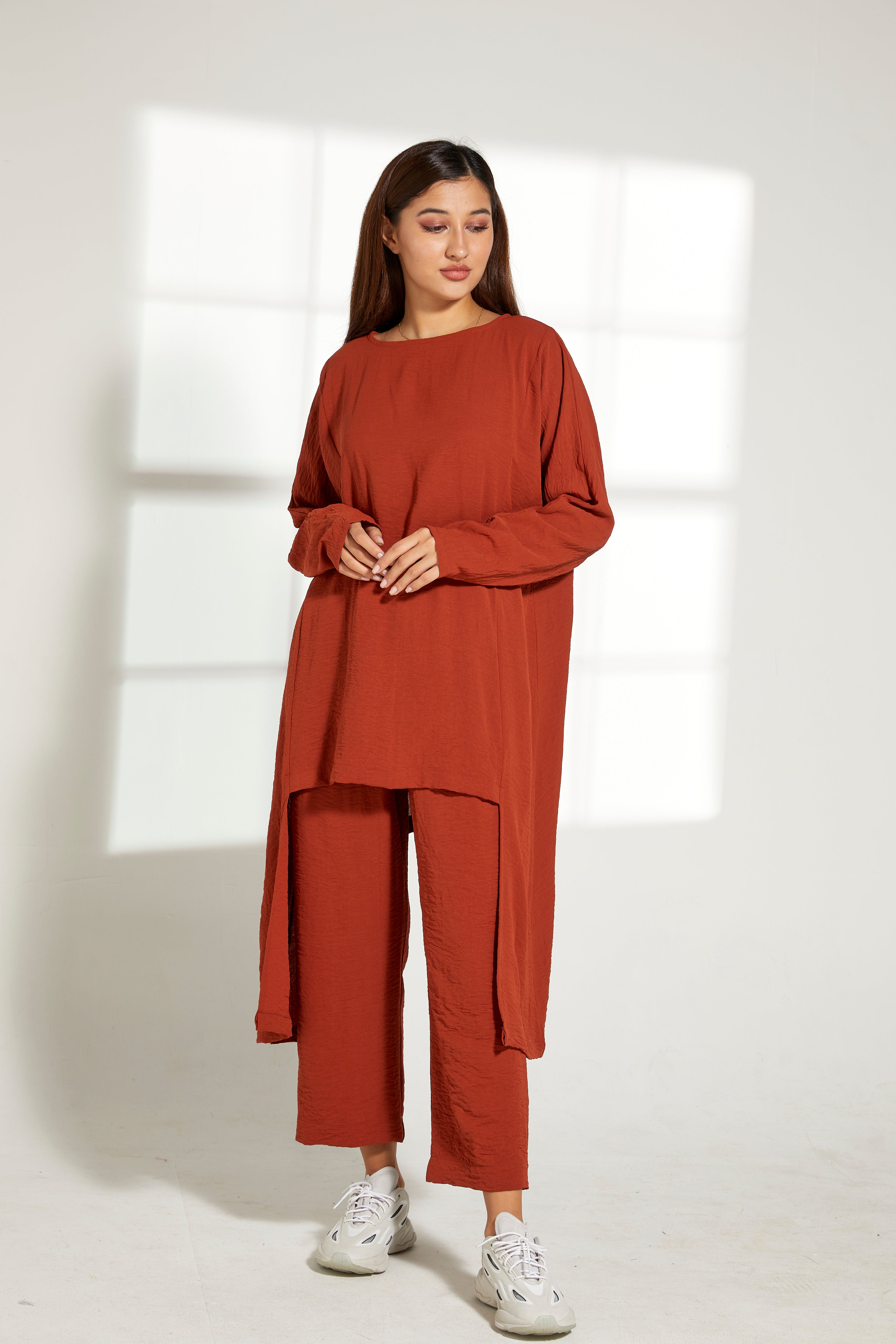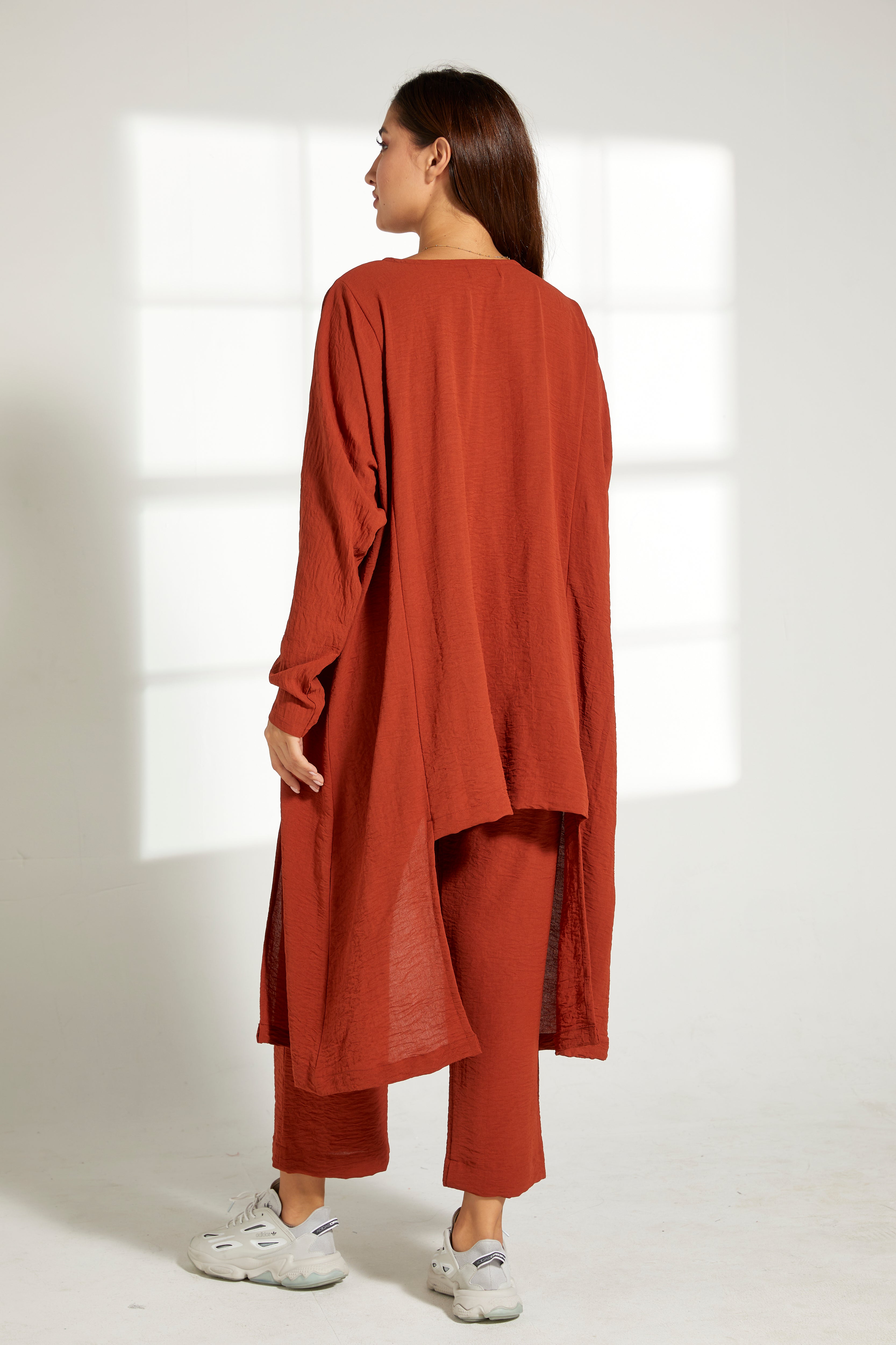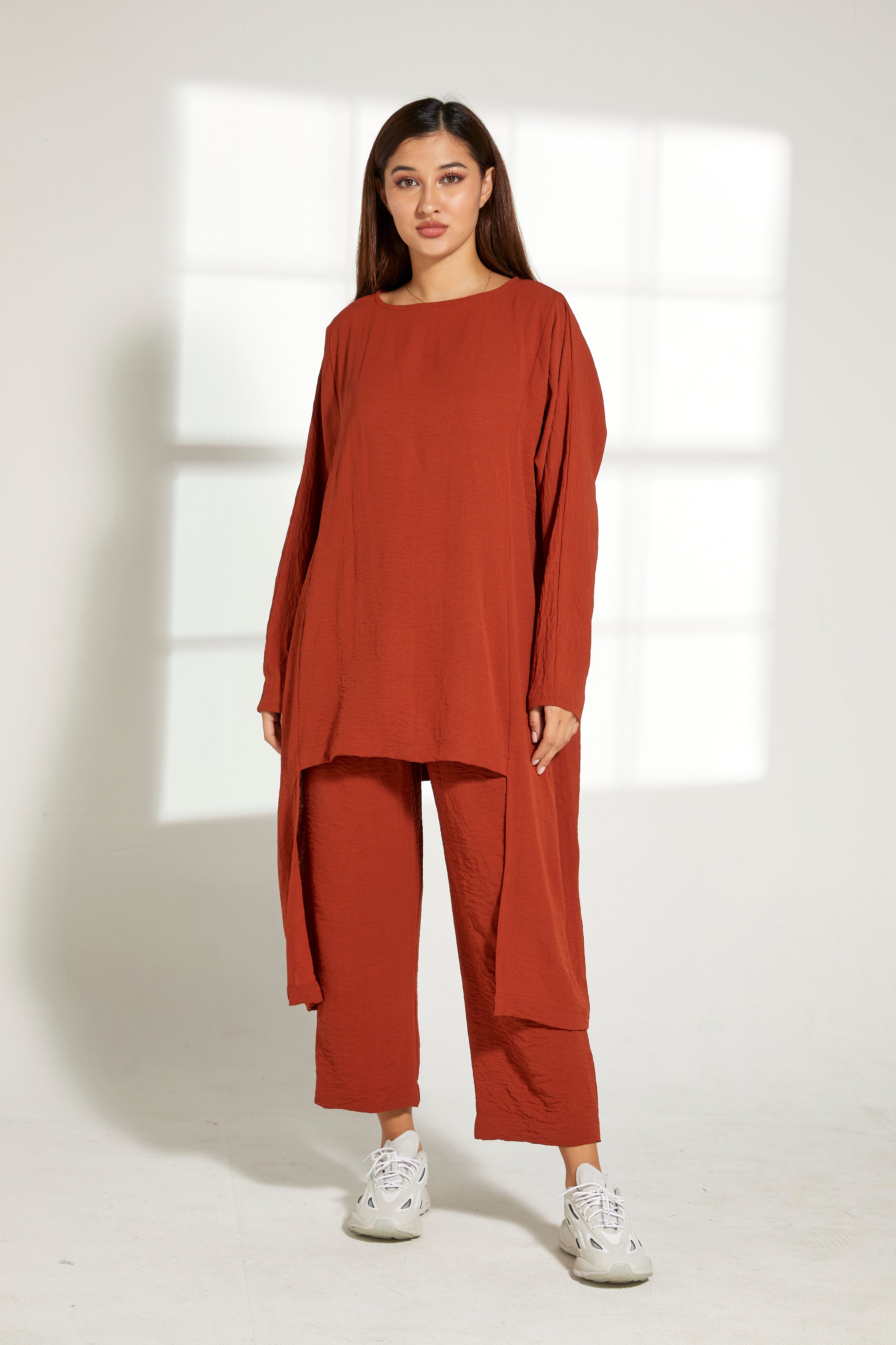 MOiSTREET أورانج CEY طقم قميص وبنطال من القماش