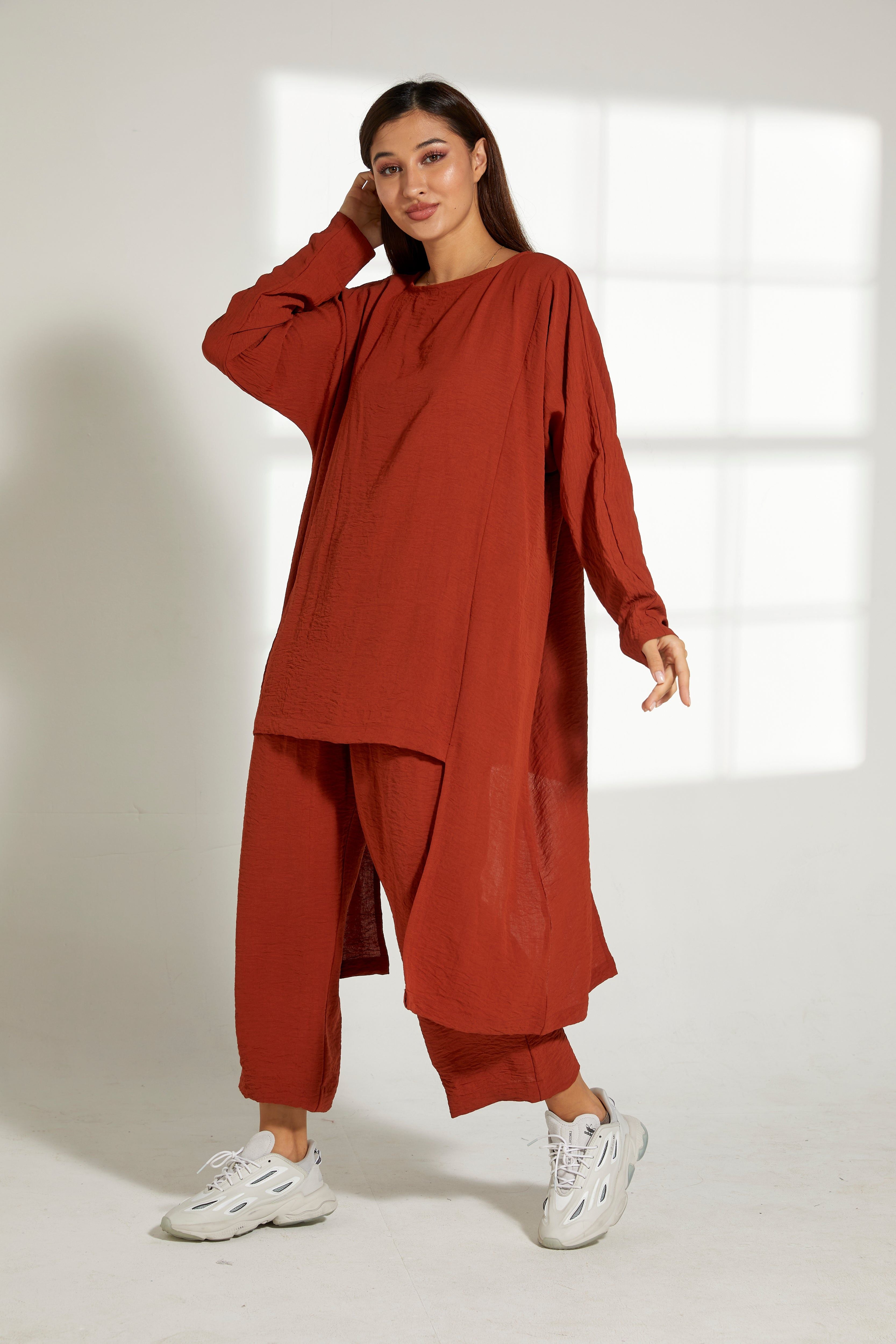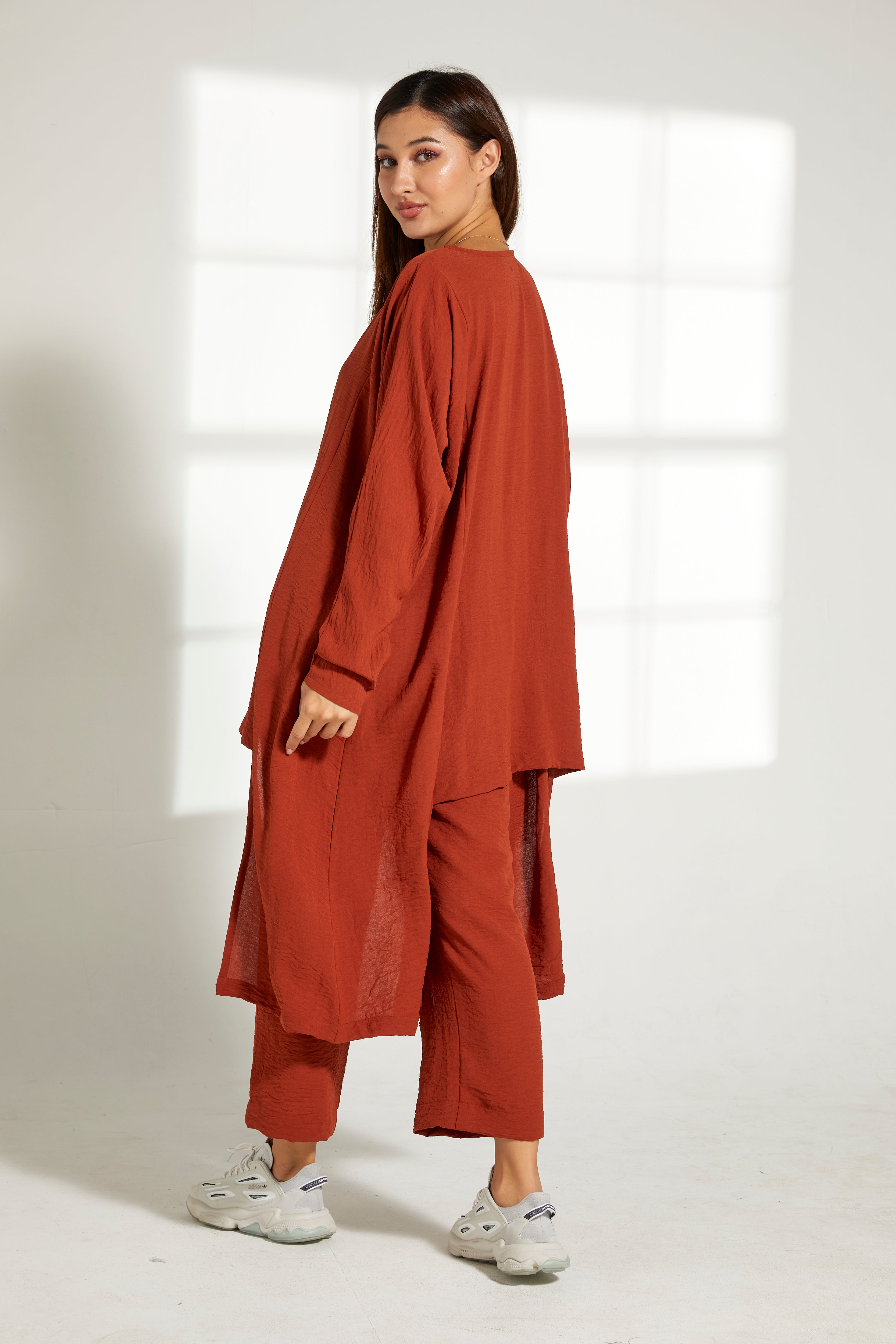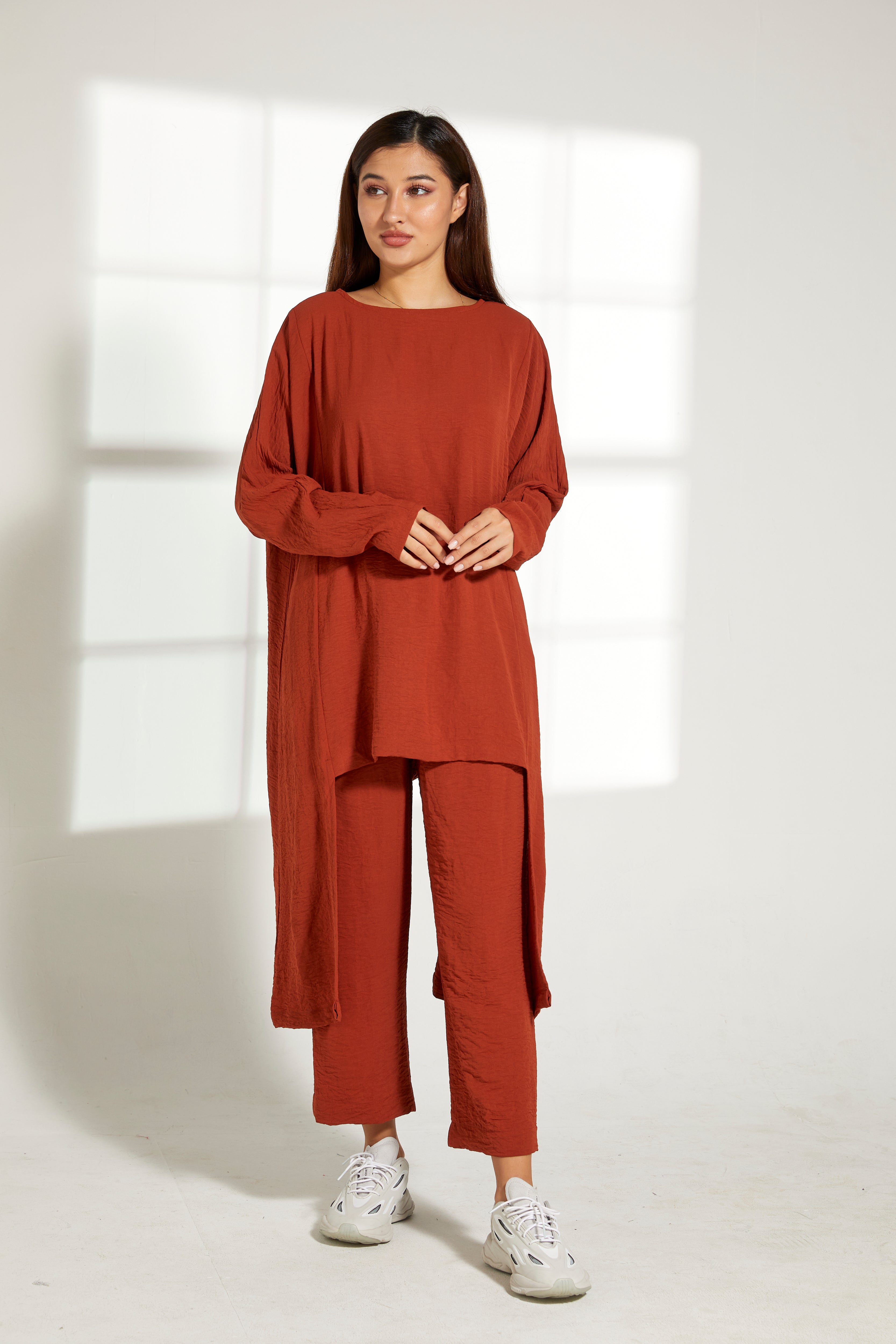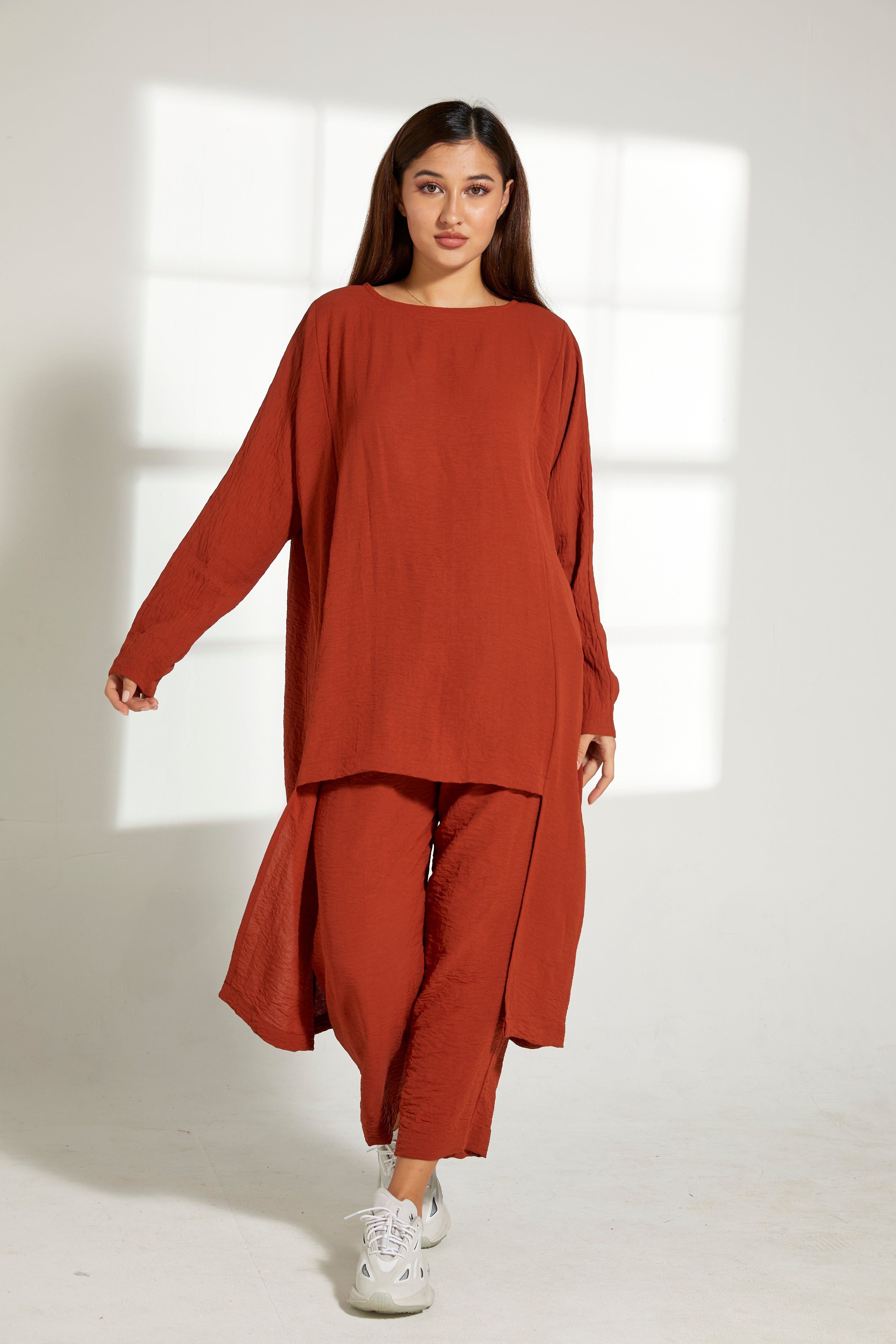 MOiSTREET أورانج CEY طقم قميص وبنطال من القماش