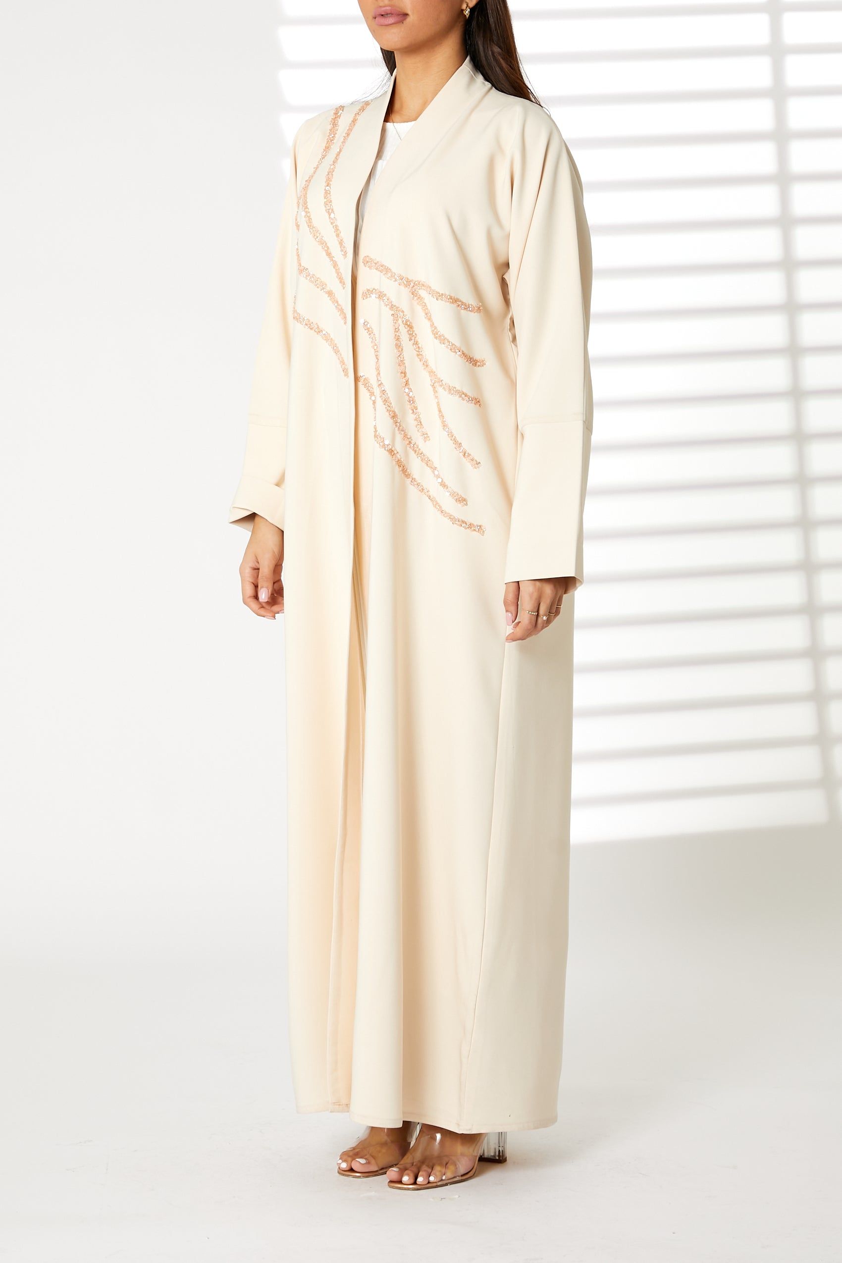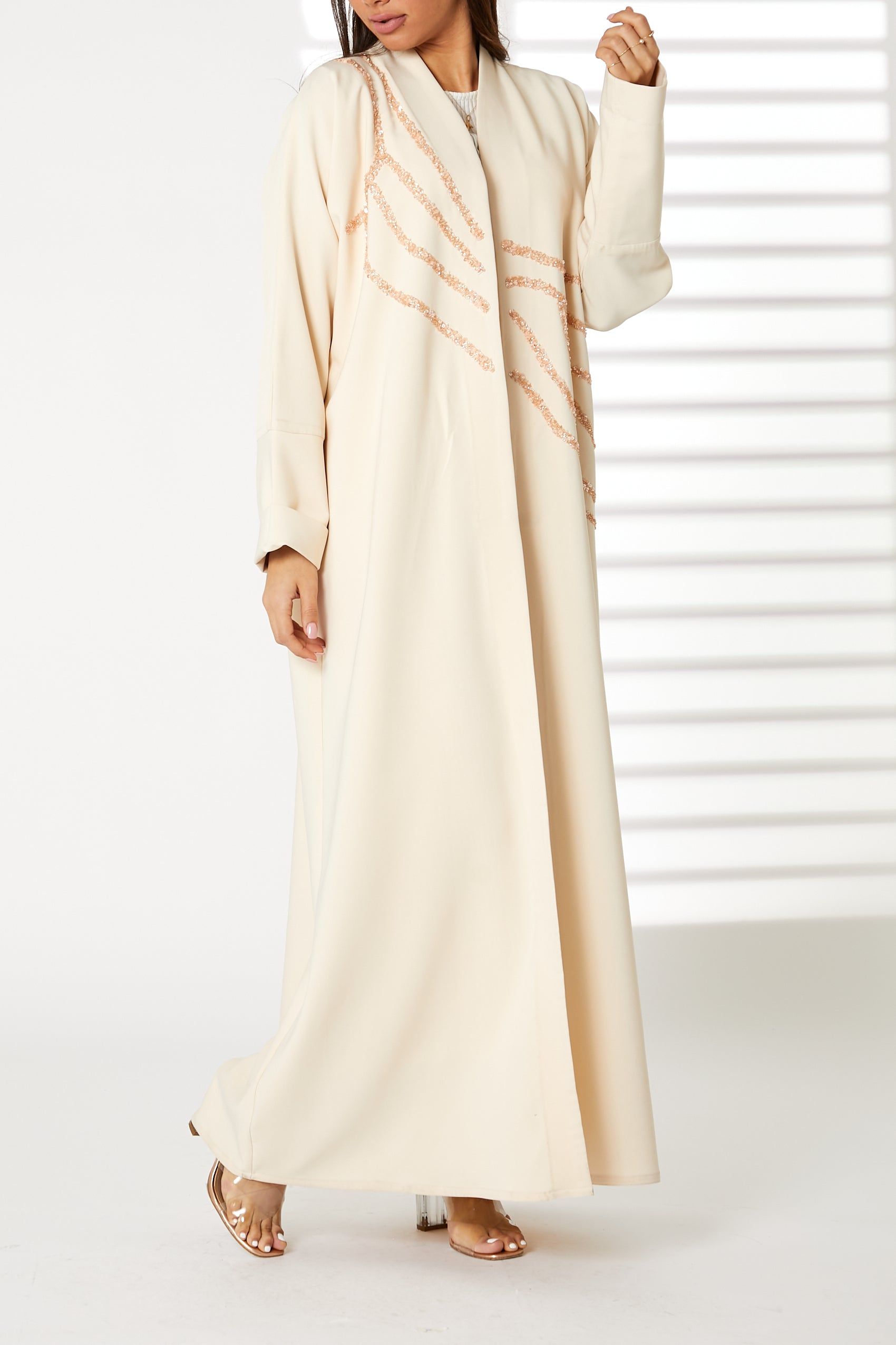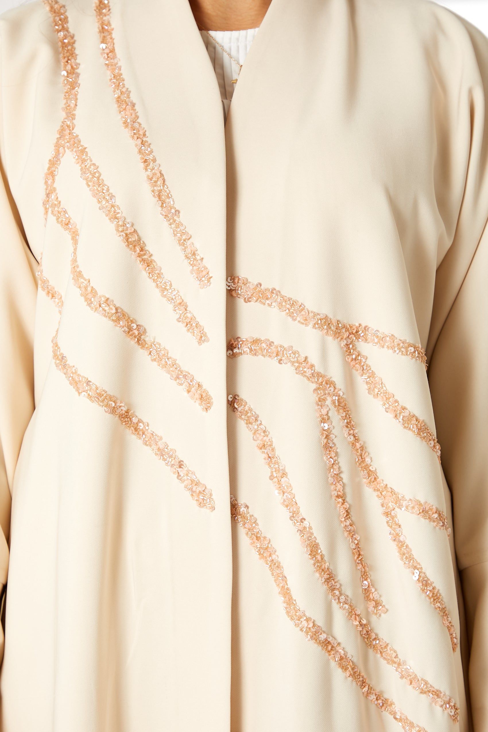MOiSTREET عباءة زفاف من الساتان المطرز باللون الخوخي