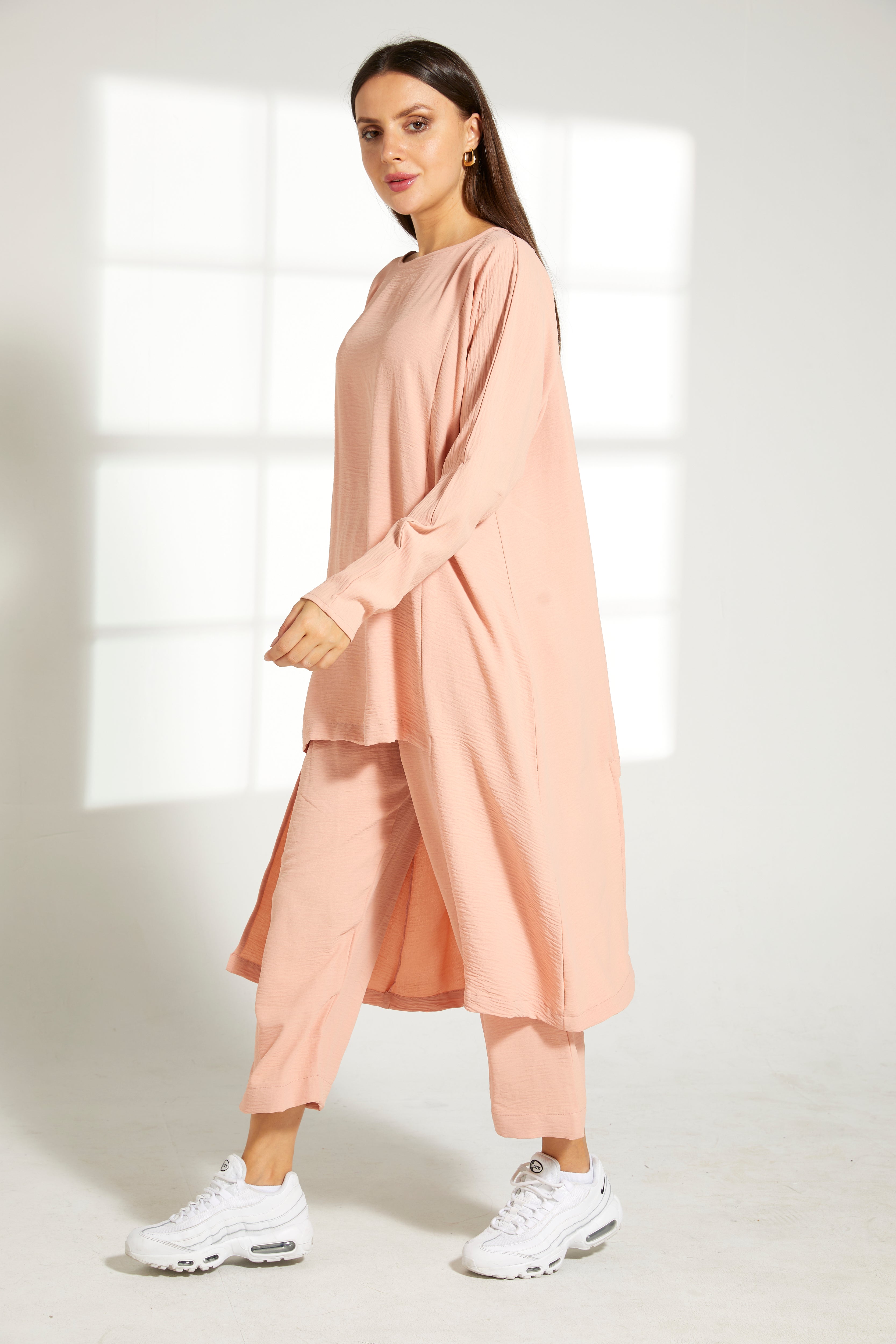 MOiSTREET طقم قميص وبنطال من قماش CEY بلون الخوخ