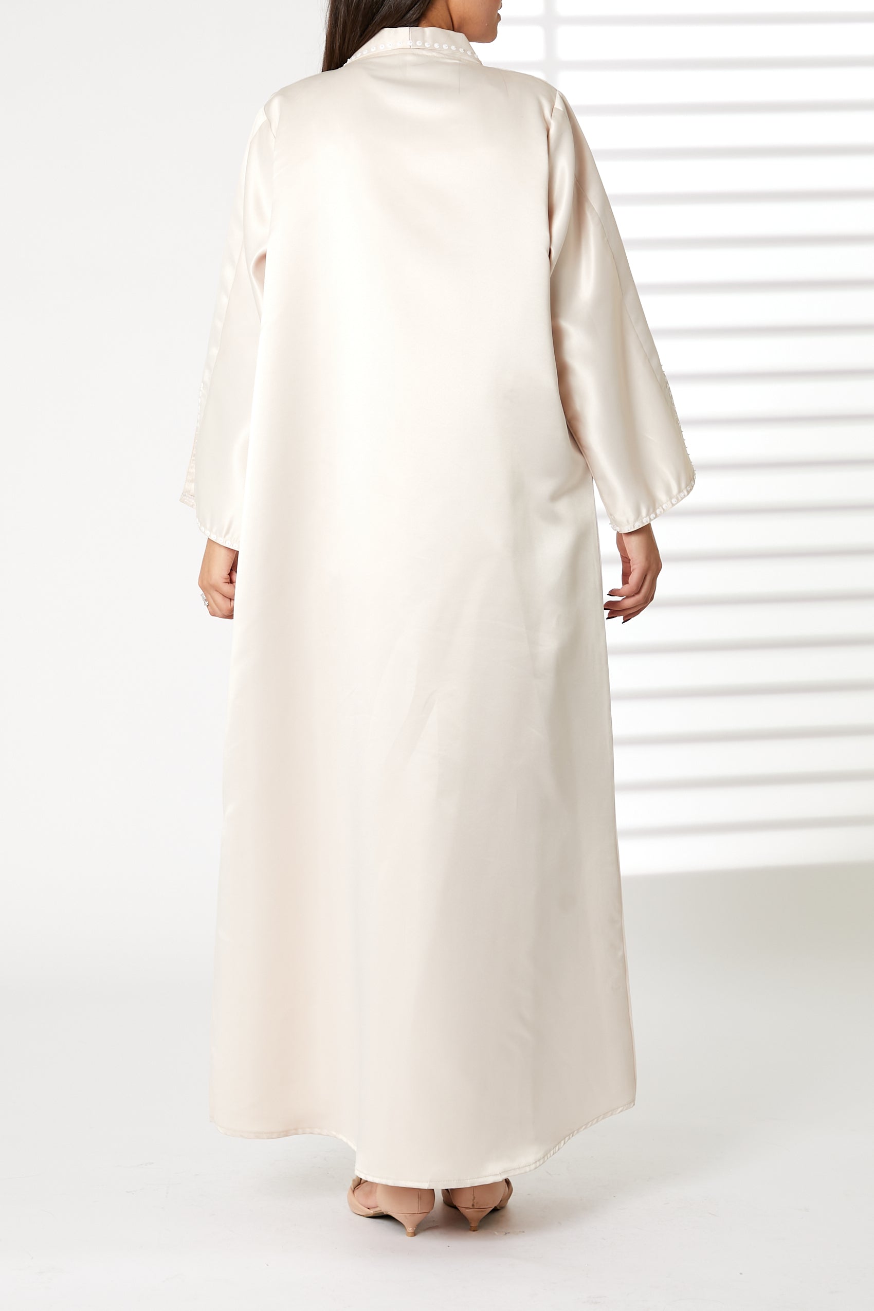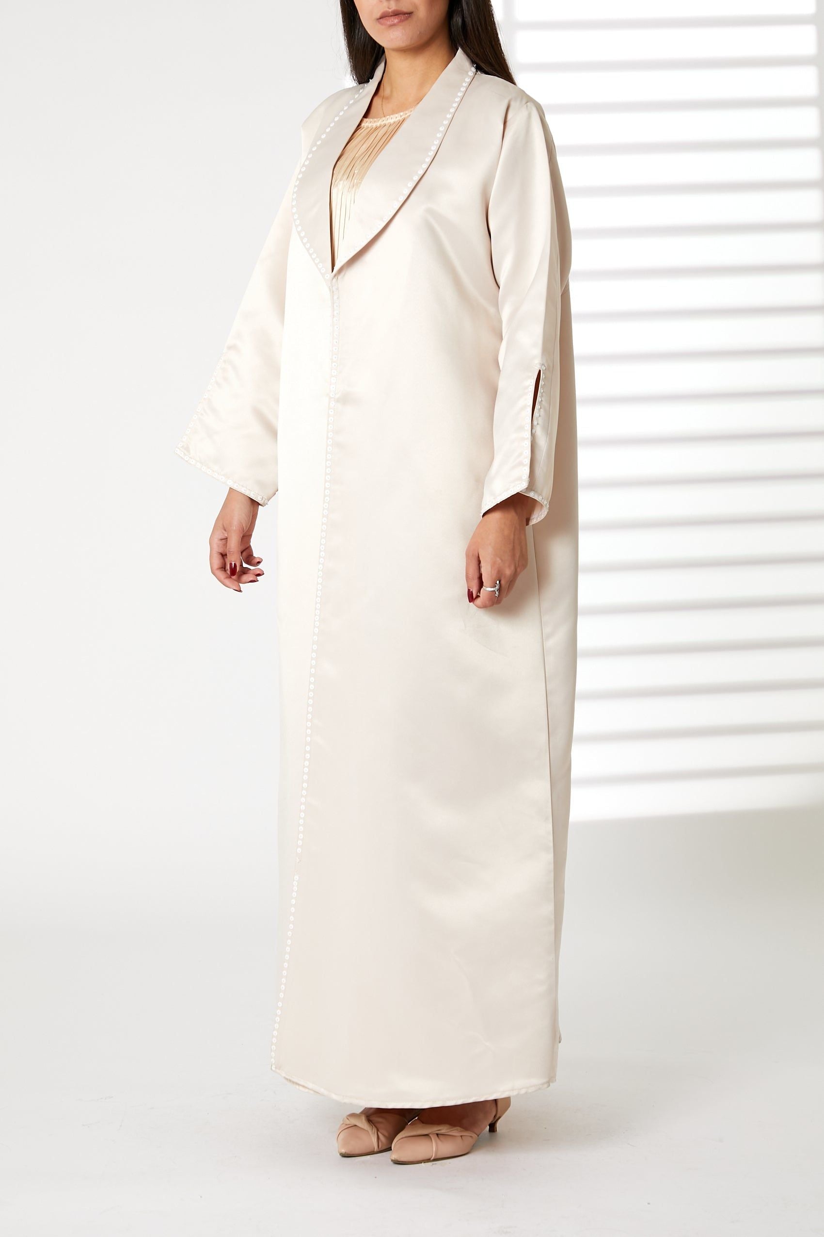 MOiSTREET عباءة زفاف وردية من الساتان مزينة بأزرار كبس