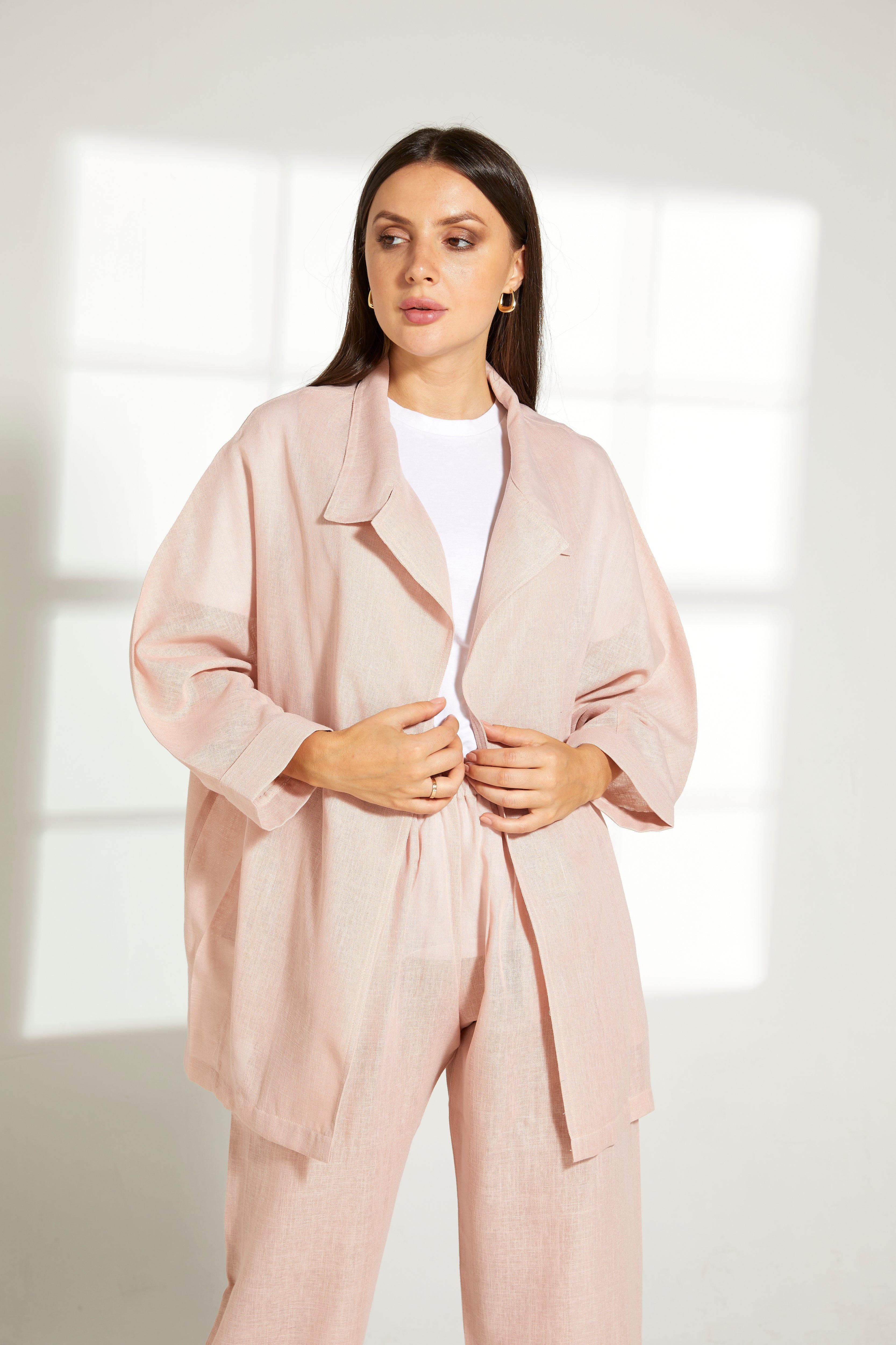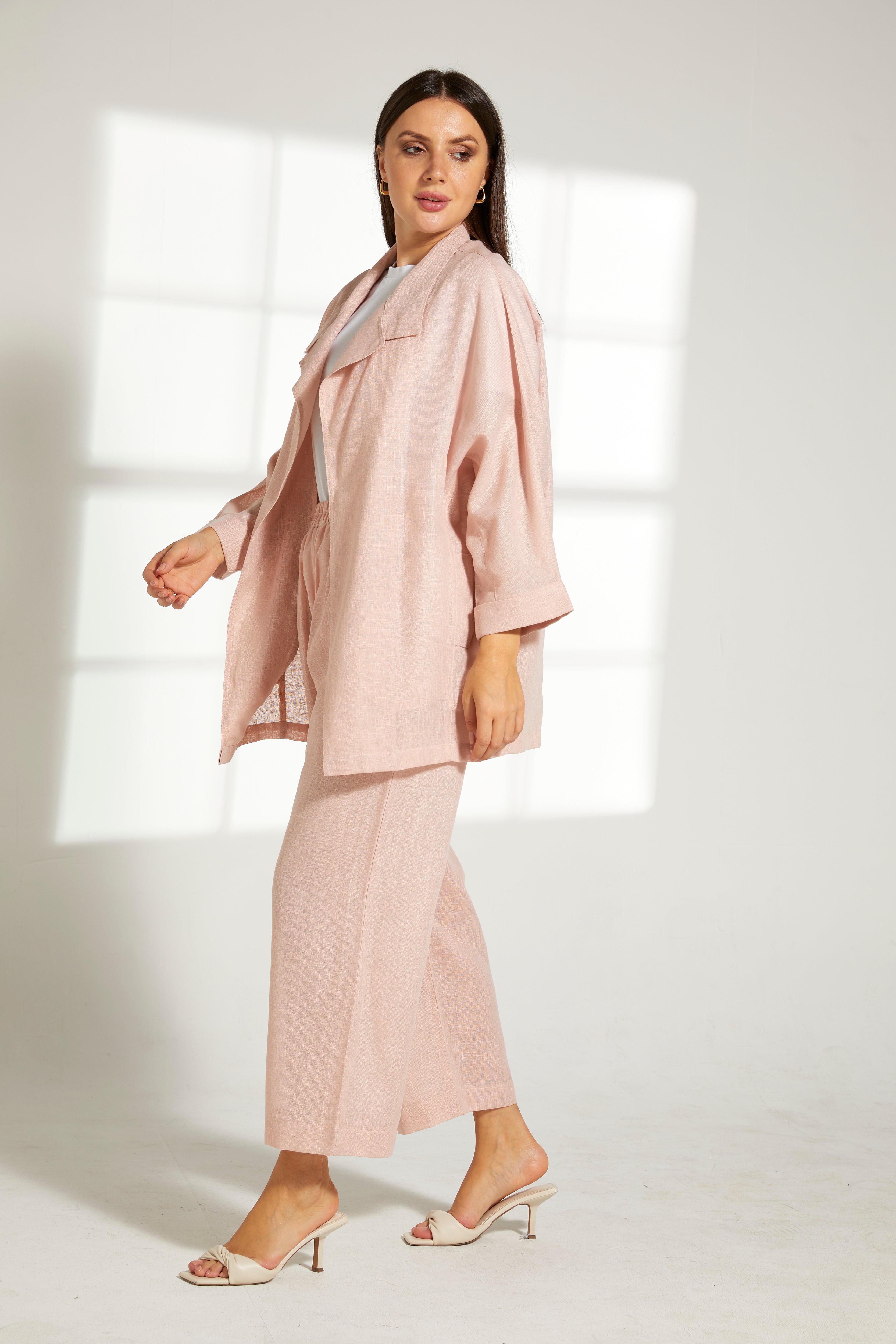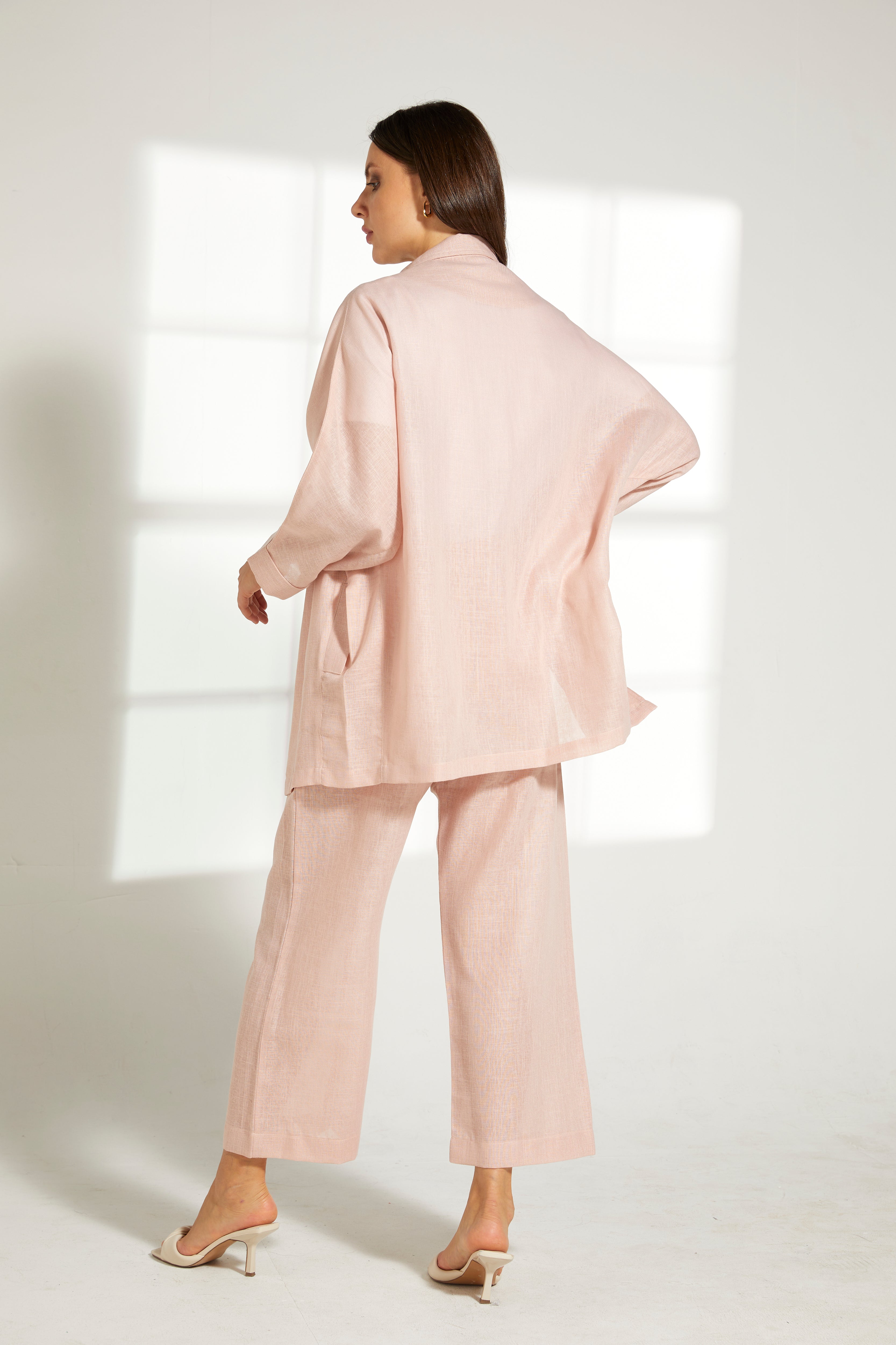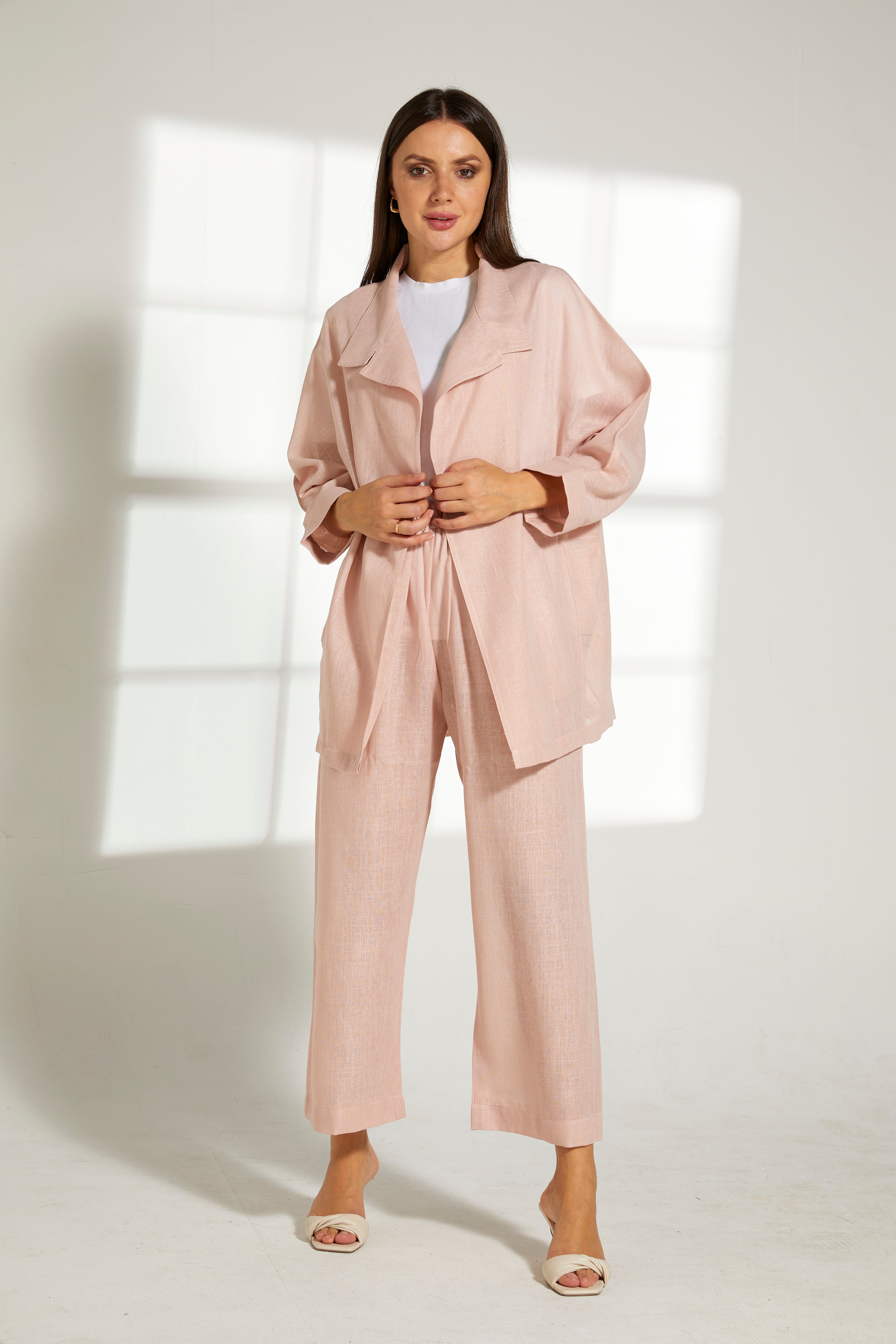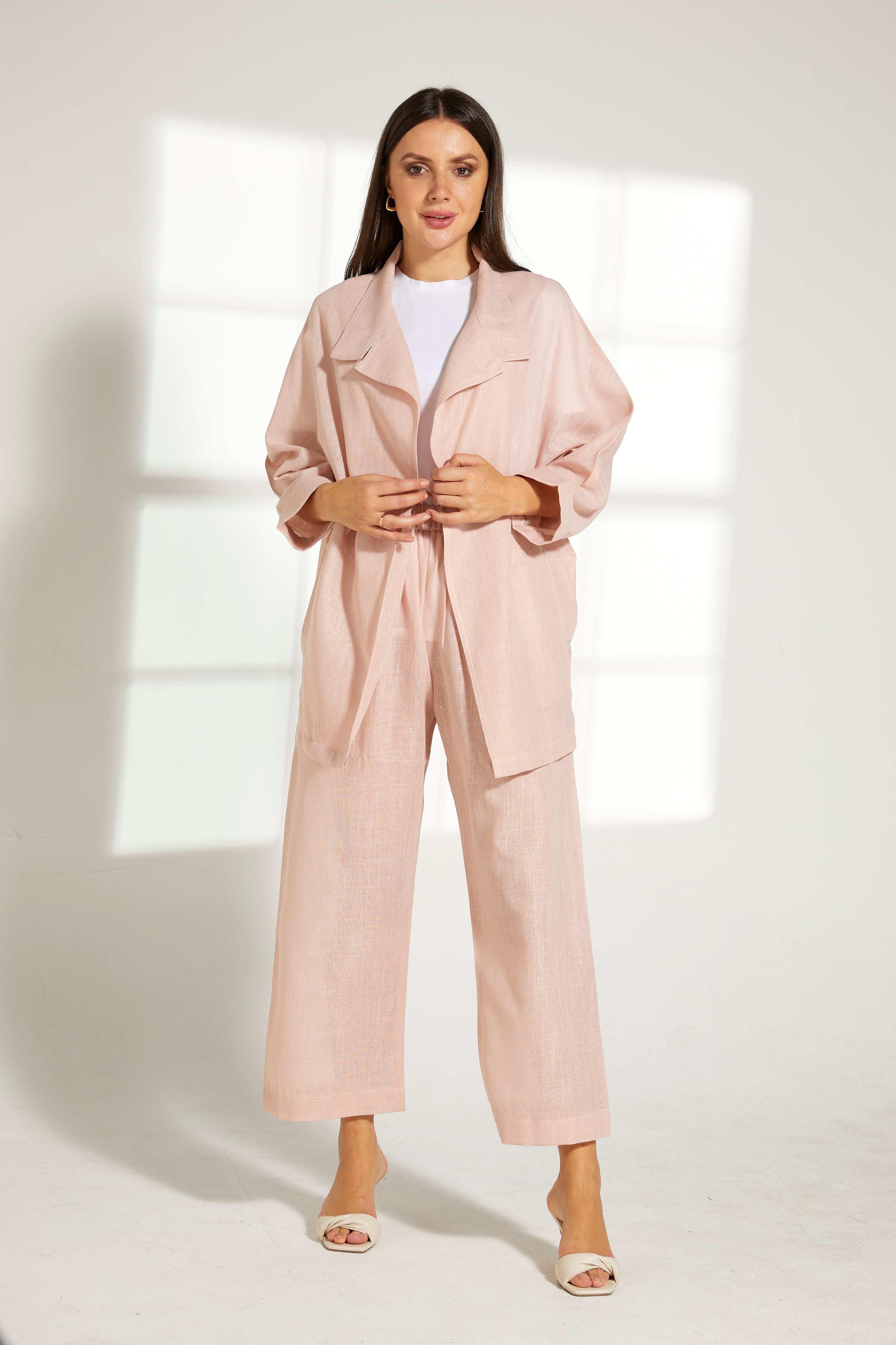 مجموعة قميص وبنطال من الكتان باللون الخوخي من MOiSTREET