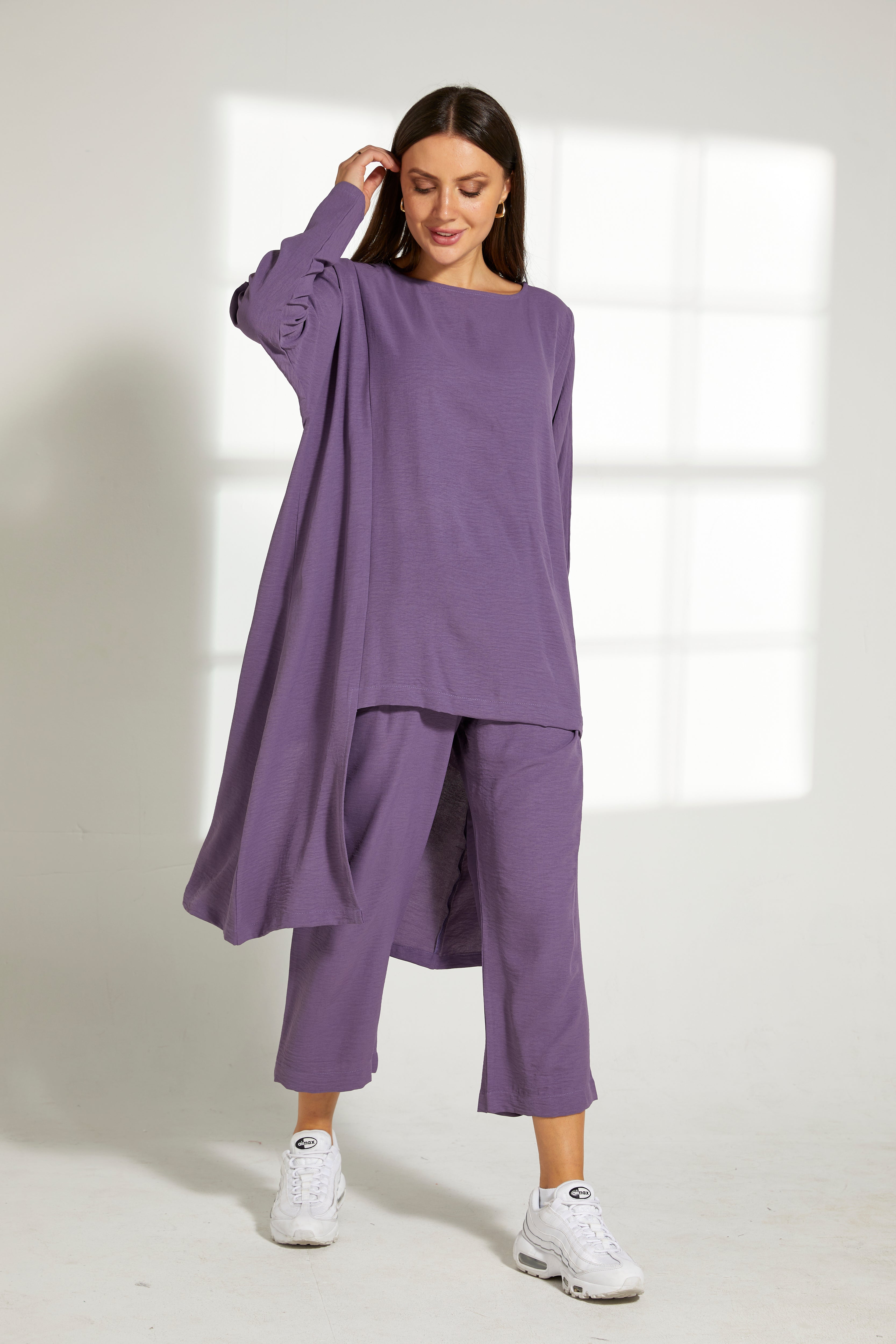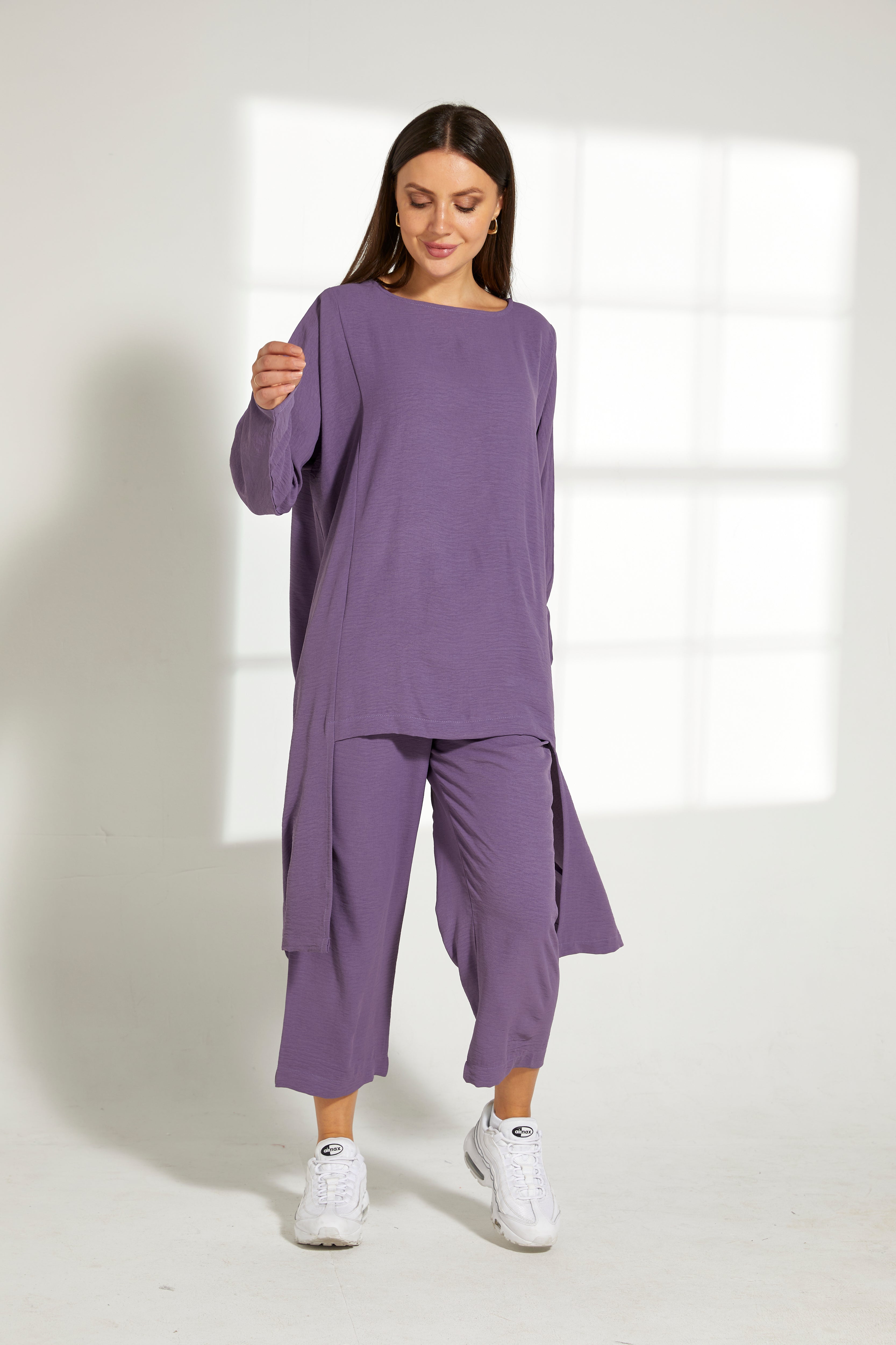 MOiSTREET طقم قميص وسروال من قماش CEY باللون الأرجواني