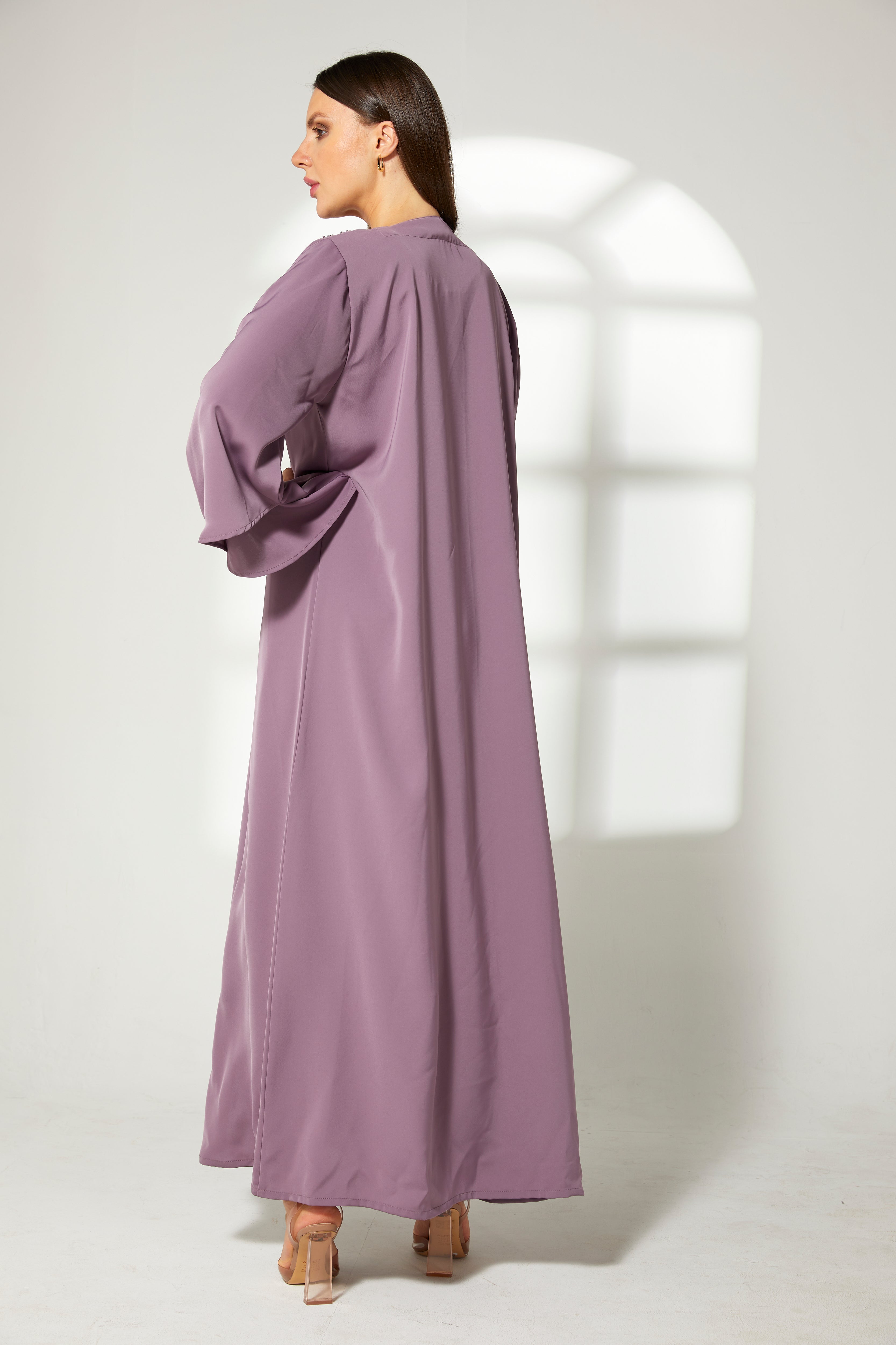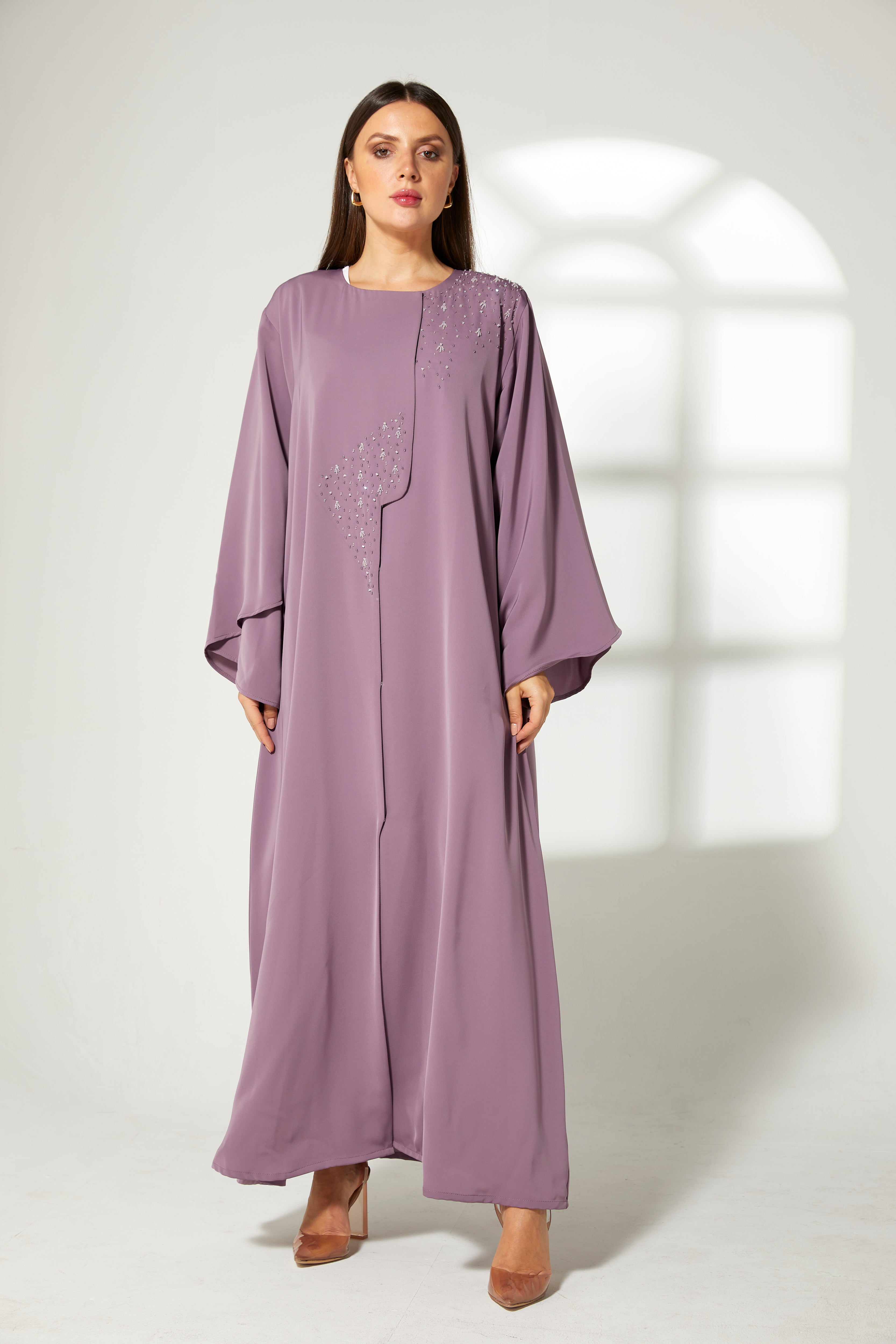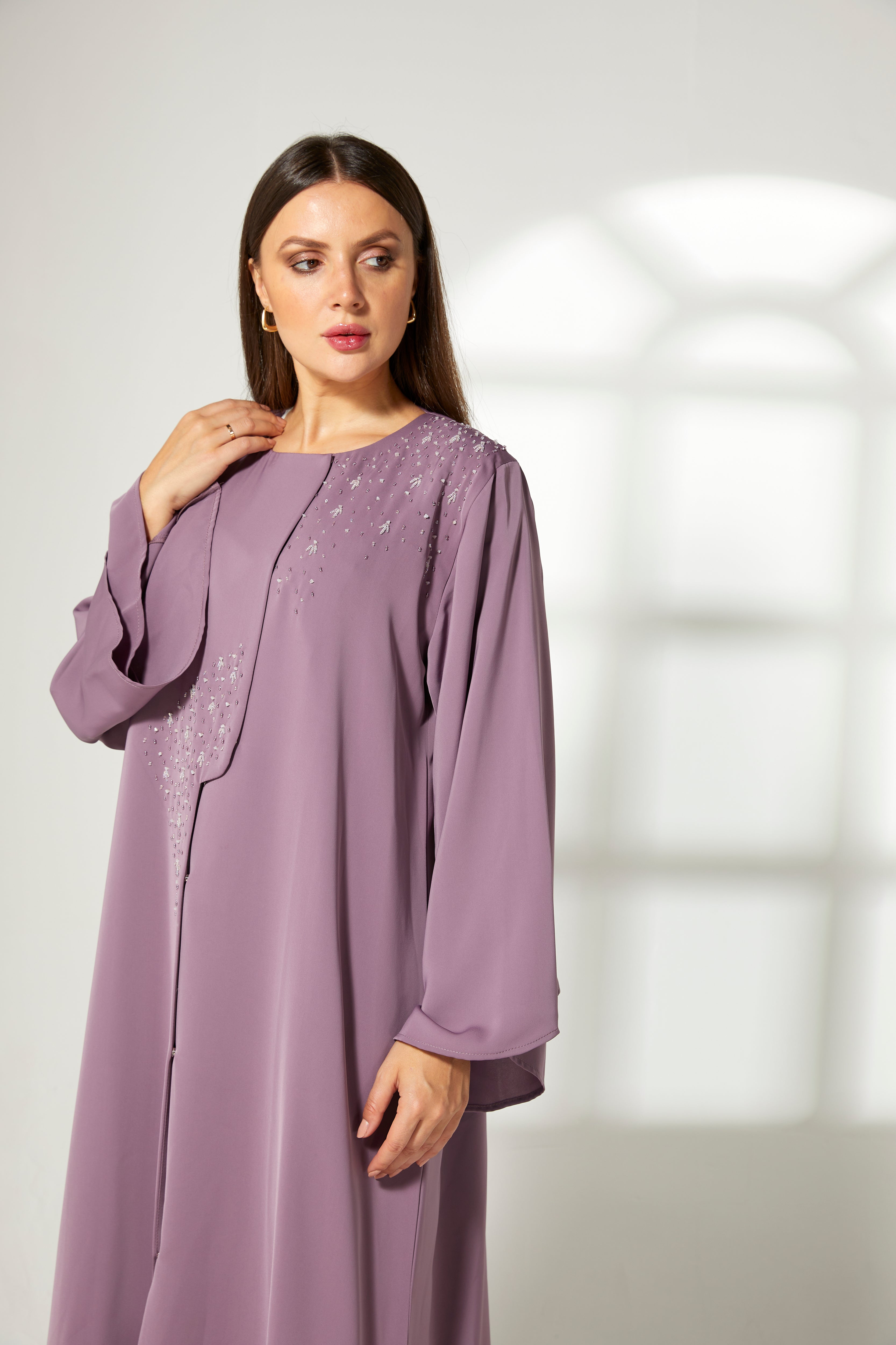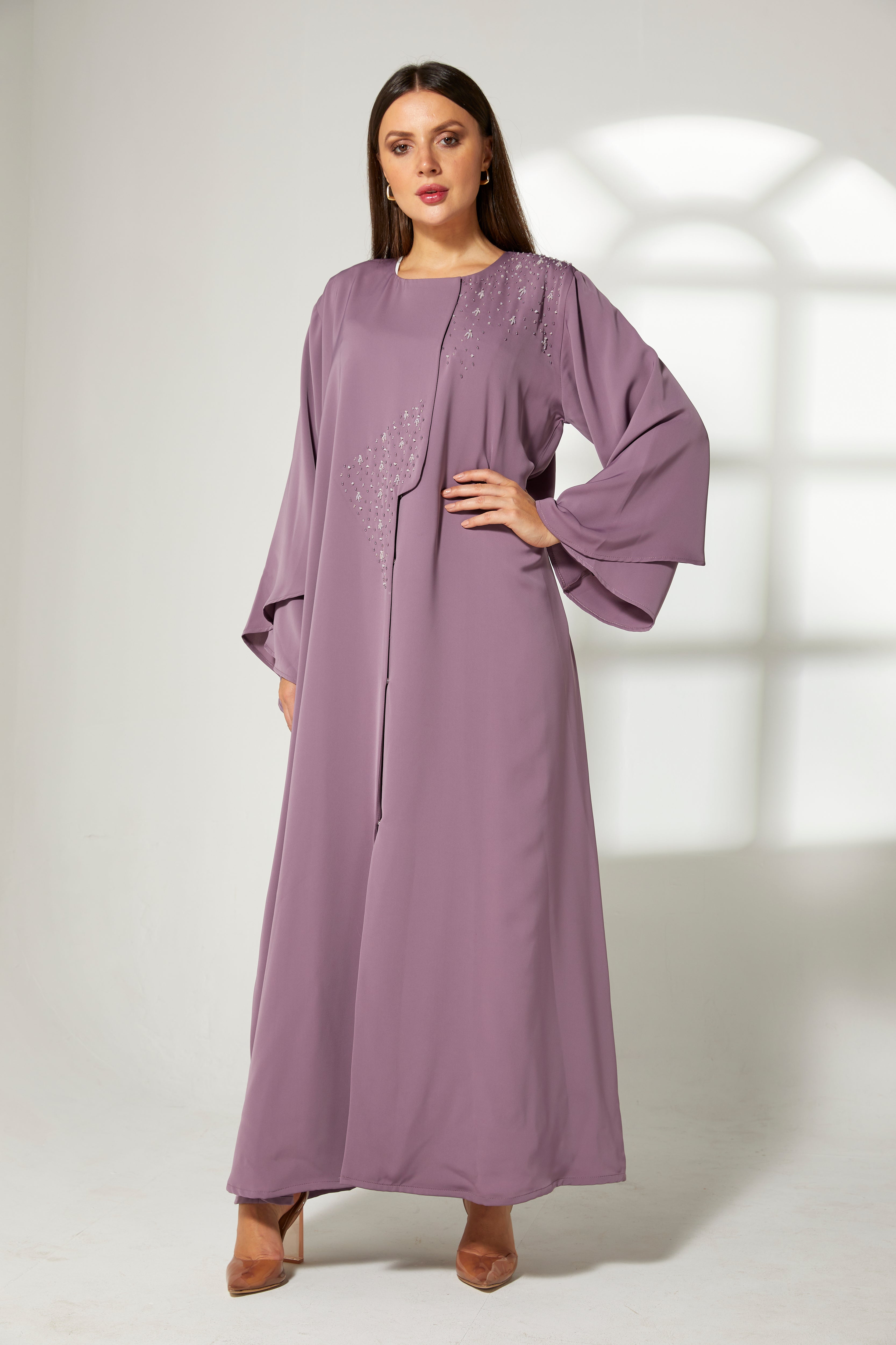 MOiSTREET أبايا كورية أرجوانية مطرزة من الأمام