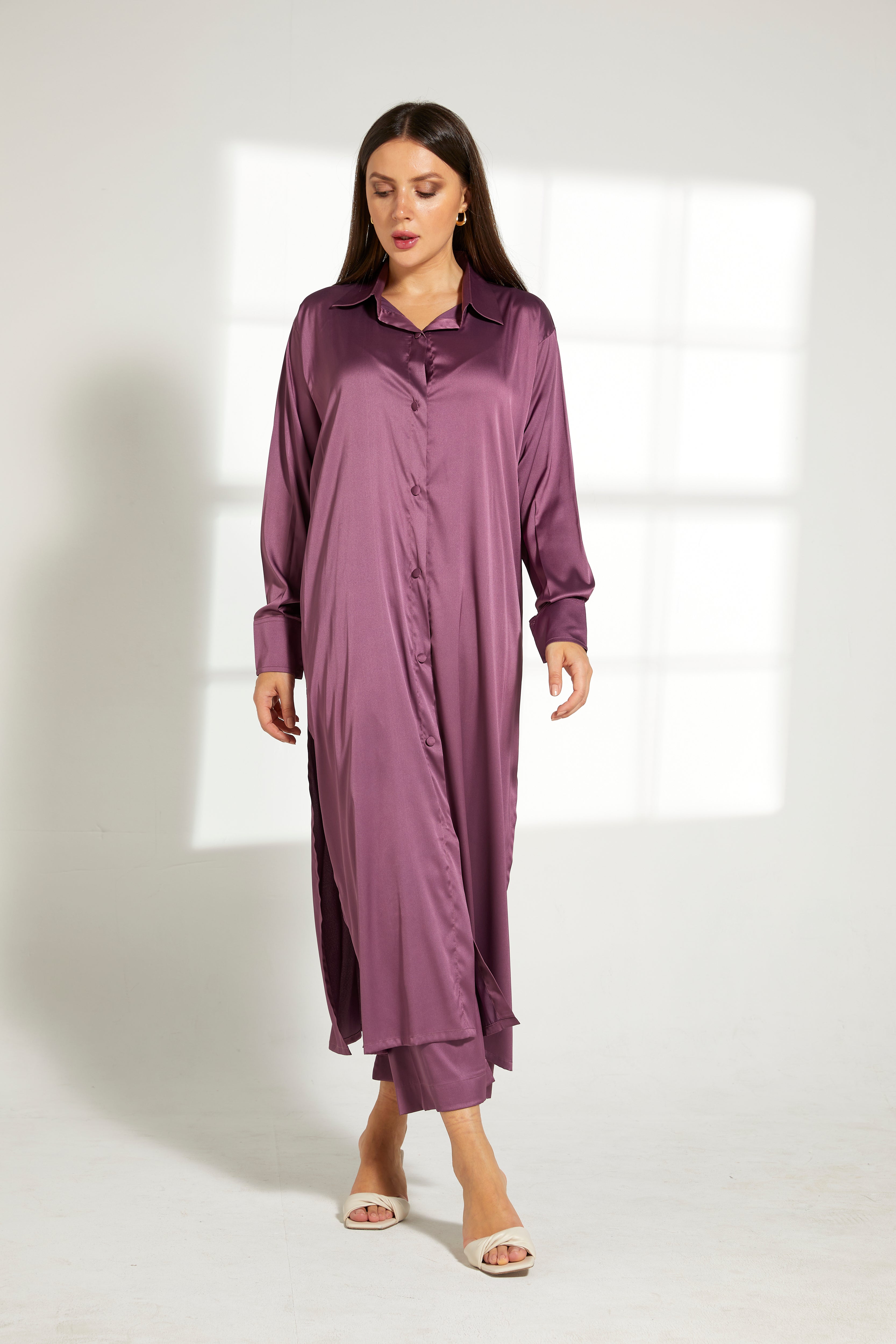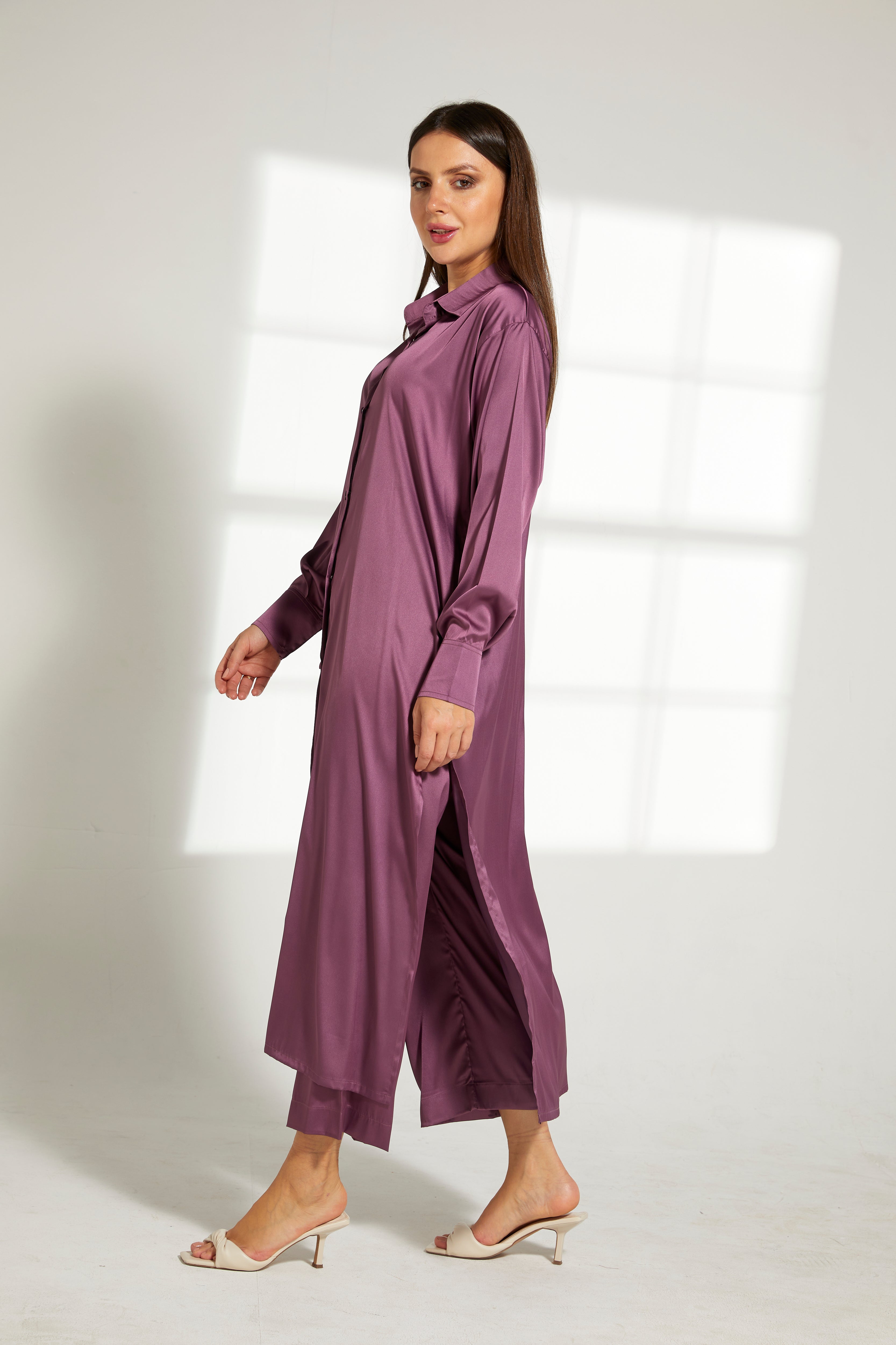 MOiSTREET طقم قميص وسروال من الحرير الأرجواني