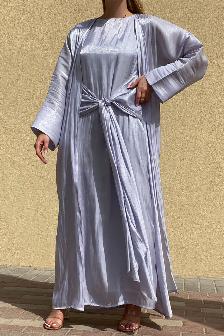 مجموعة عباية روتانا شيمير لافندر جراي من MOiSTREET تأتي مع 3 قطع