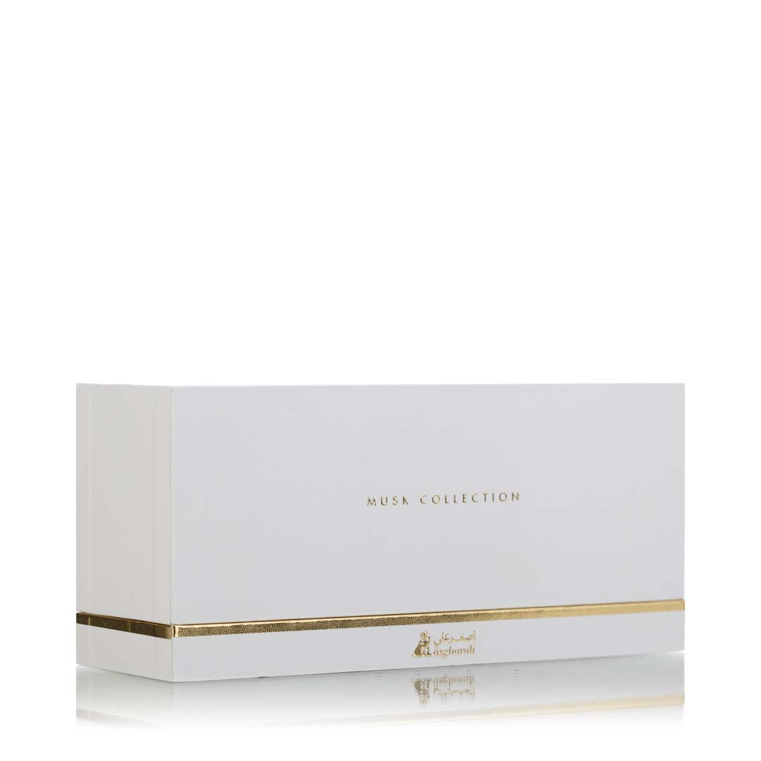 مجموعة المسك التقليدية الفريدة من Asghar Ali، تقدم في صندوق أبيض أنيق وساحر مع 4 عينات صغيرة سعة 10 مل. مجموعة المسك التقليدية الأصلية التي نقدمها بما يتماشى مع الهوية الإقليمية تضفي قيمة مرموقة على مجموعة عطورك. هنا، عطر Adham Musk معطر بمسك تقليدي أصلي، بينما تم إثراء العطور الثلاثة الأخرى بمزيج من المسك الشرقي مع روائح زهرية متنوعة.