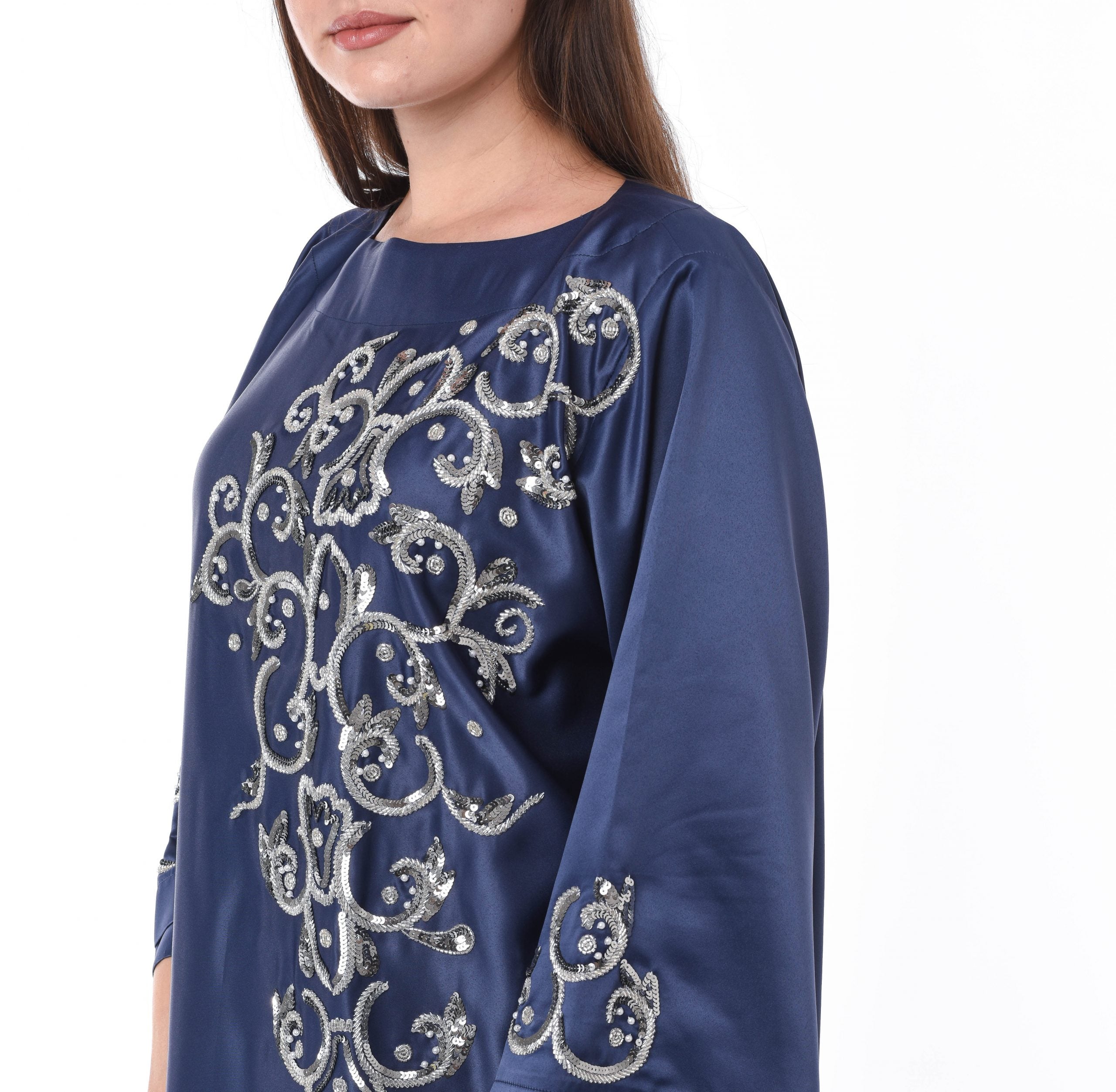 قفطان مزين باللون الأزرق الداكن من MOiSTREET مع تطريز يدوي