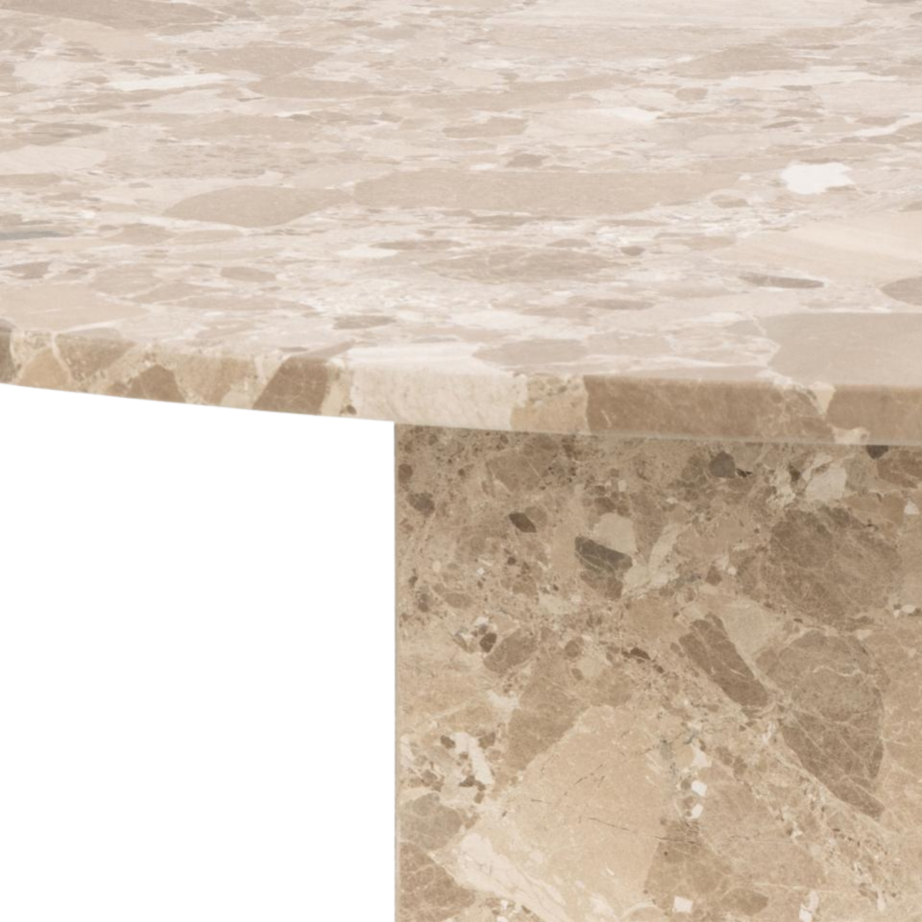 يتميز طاولة Naxos بالرخام الطبيعي بألوان بني لاتيه دافئة في جميع أنحاء السطح وقاعدة الأعمدة. الطلاء اللامع يحمي الحجر مع الحفاظ على طابعه الطبيعي. يبلغ قطرها 130 سم، وتستوعب 4-6 أشخاص بشكل مريح، بينما يعكس وزنها الكبير البالغ 153.1 كجم جودة تصنيع الرخام. توفر قاعدة الأعمدة الاستقرار والجاذبية النحتية الحديثة. مثالية لمساحات الطعام الفاخرة التي تبحث عن رفاهية الحجر الطبيعي.