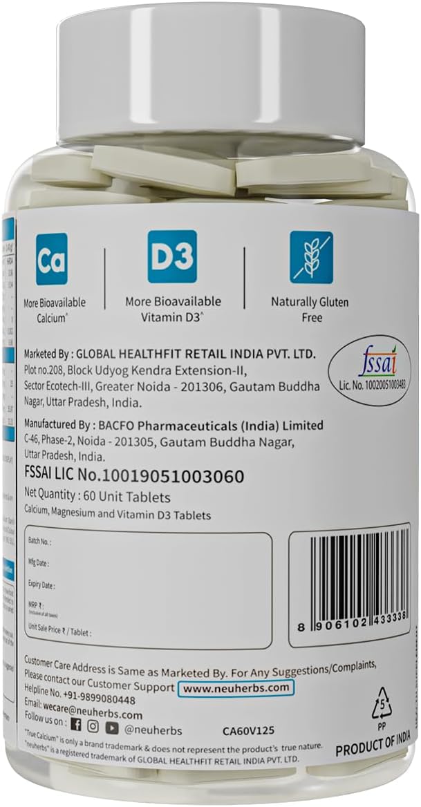 Neuherbs True Calcium هو مكمل غذائي نباتي مصمم لدعم صحة العظام والعضلات. توفر كل حبة 1000 ملغ من الكالسيوم على شكل سترات الكالسيوم - المعروف بامتصاصه العالي - إلى جانب فيتامين D3 والمغنيسيوم المشتقين من النباتات لتعزيز الفعالية.