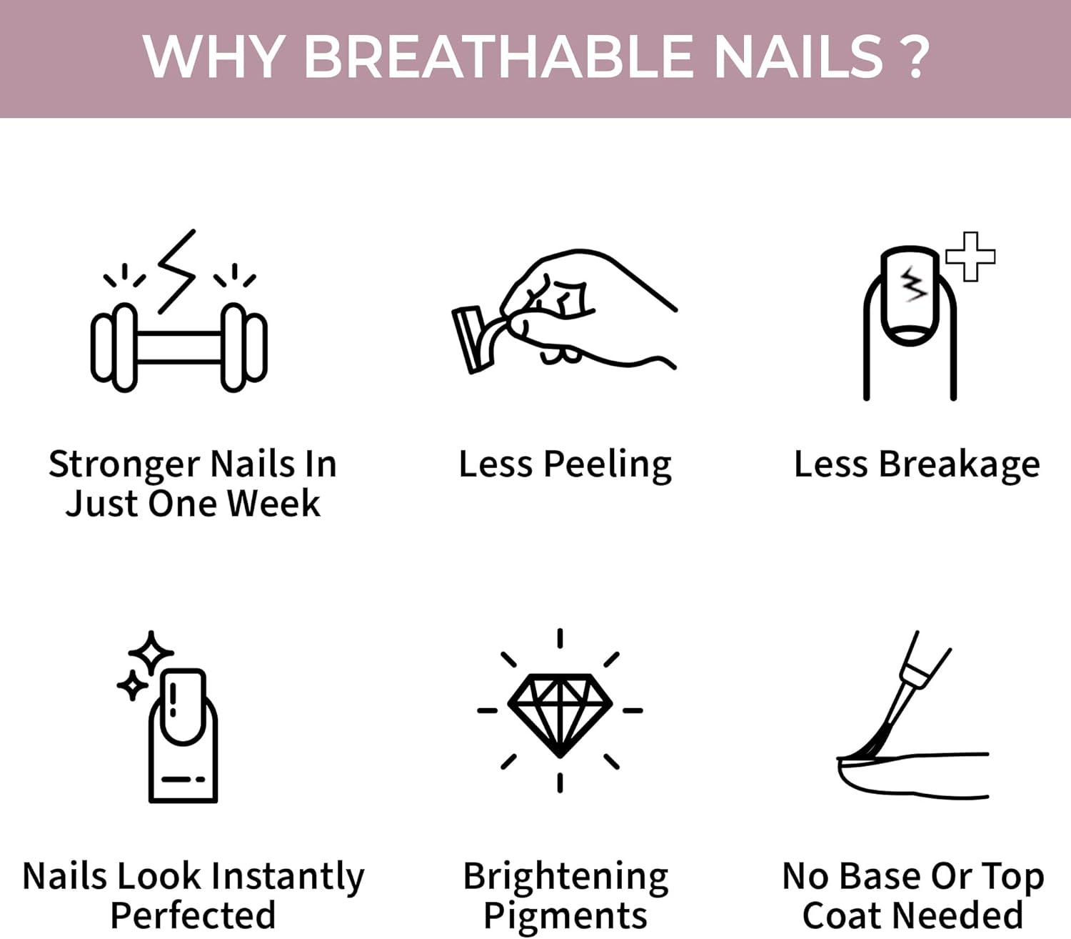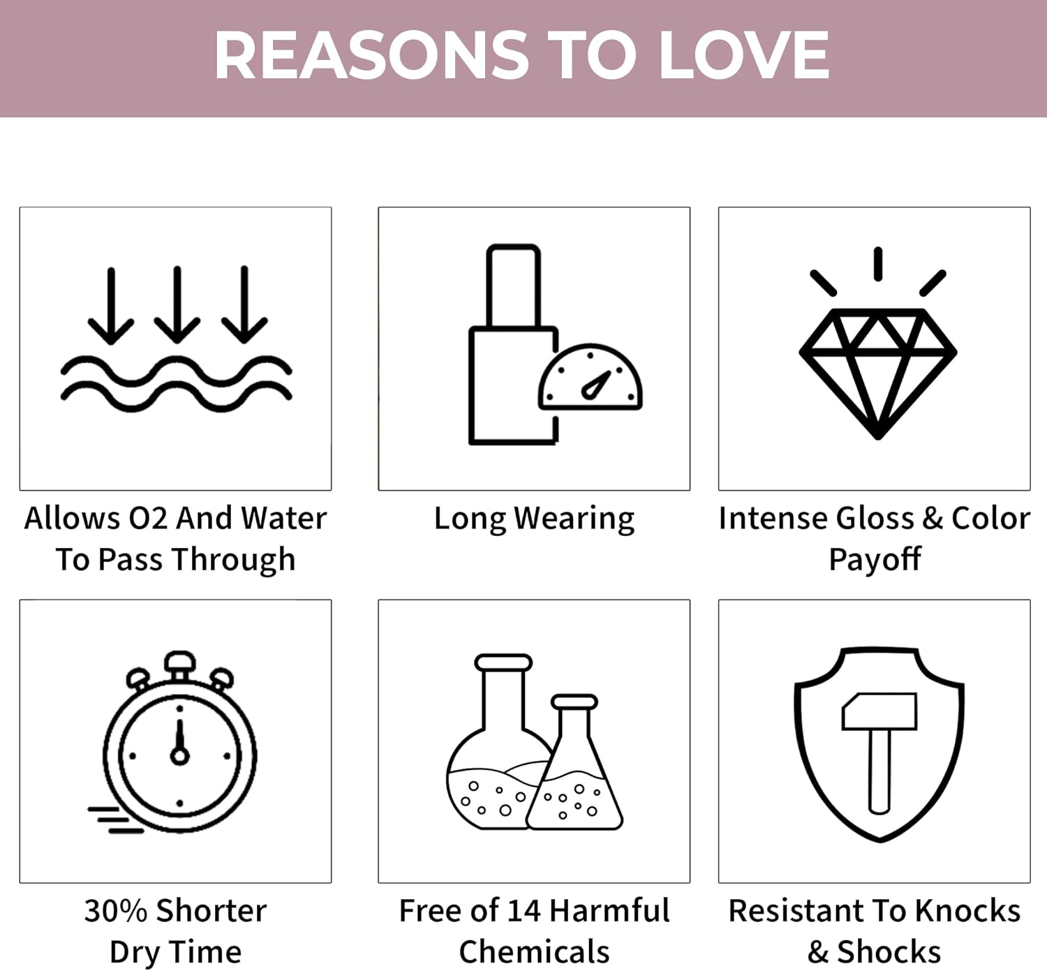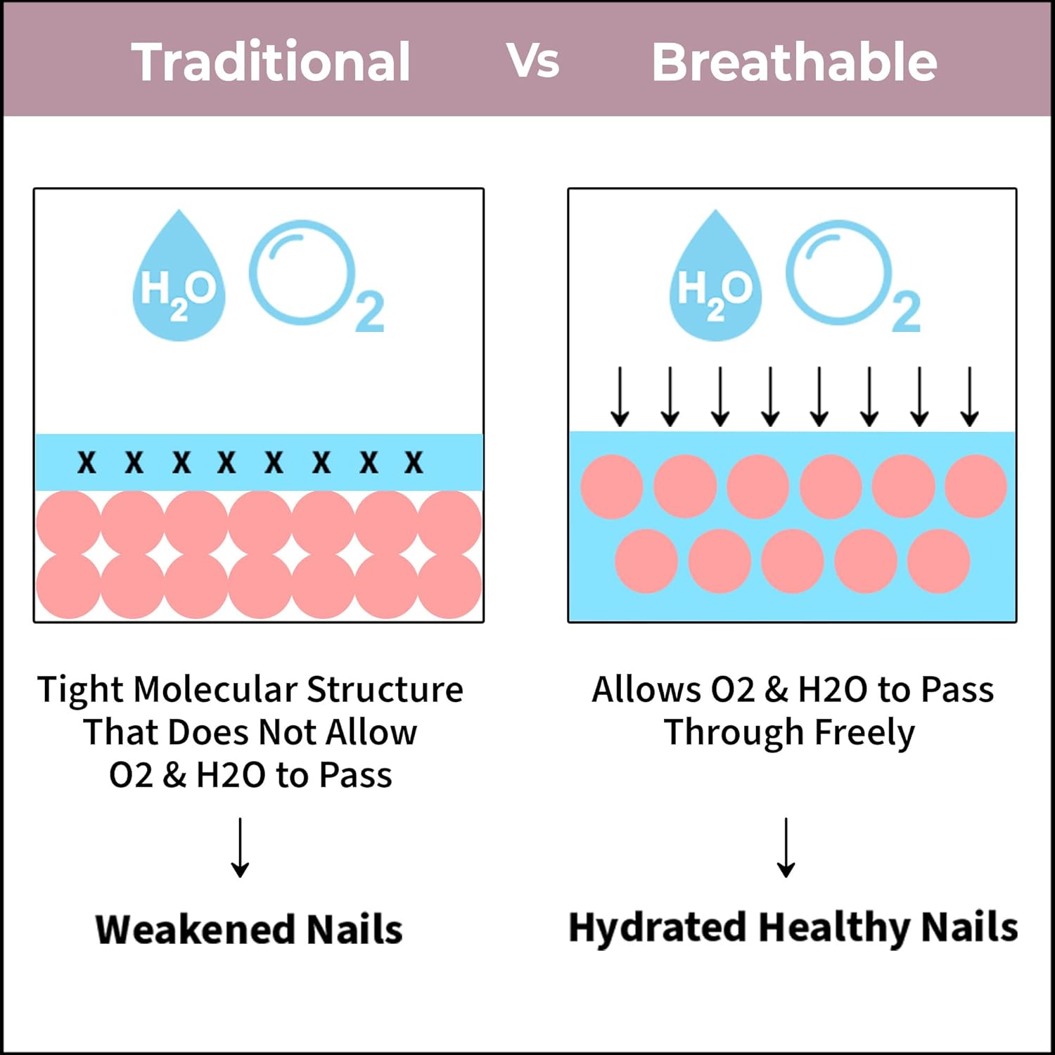 • طلاء أظافر مصنوع بتقنية أكسجين متطورة تسمح بمرور الهواء وبخار الماء لتتيح لأظافرك التنفس.