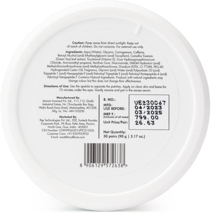غنية بالكافيين والشاي الأخضر: يعمل الكافيين الغني بمضادات الأكسدة الموجود في اللصقات على تقليل الانتفاخ على الفور، وتقليل الهالات السوداء بنسبة 81٪، وتهدئة وتوحيد لون منطقة تحت العين الحساسة. وجود الشاي الأخضر المنعش والمرطب يخفف من إجهاد العينين ويزيل الانتفاخ.