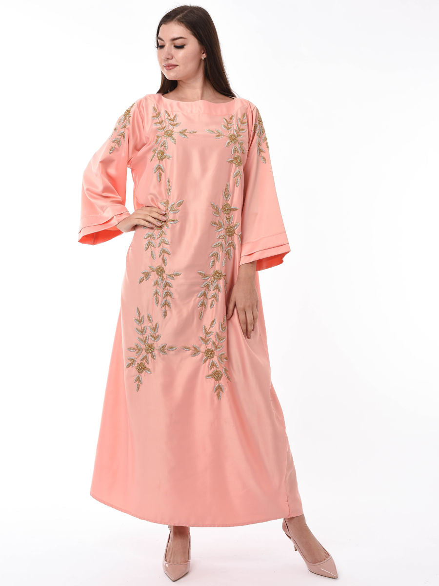 MOiSTREET قفطان برتقالي مزين بتطريز يدوي