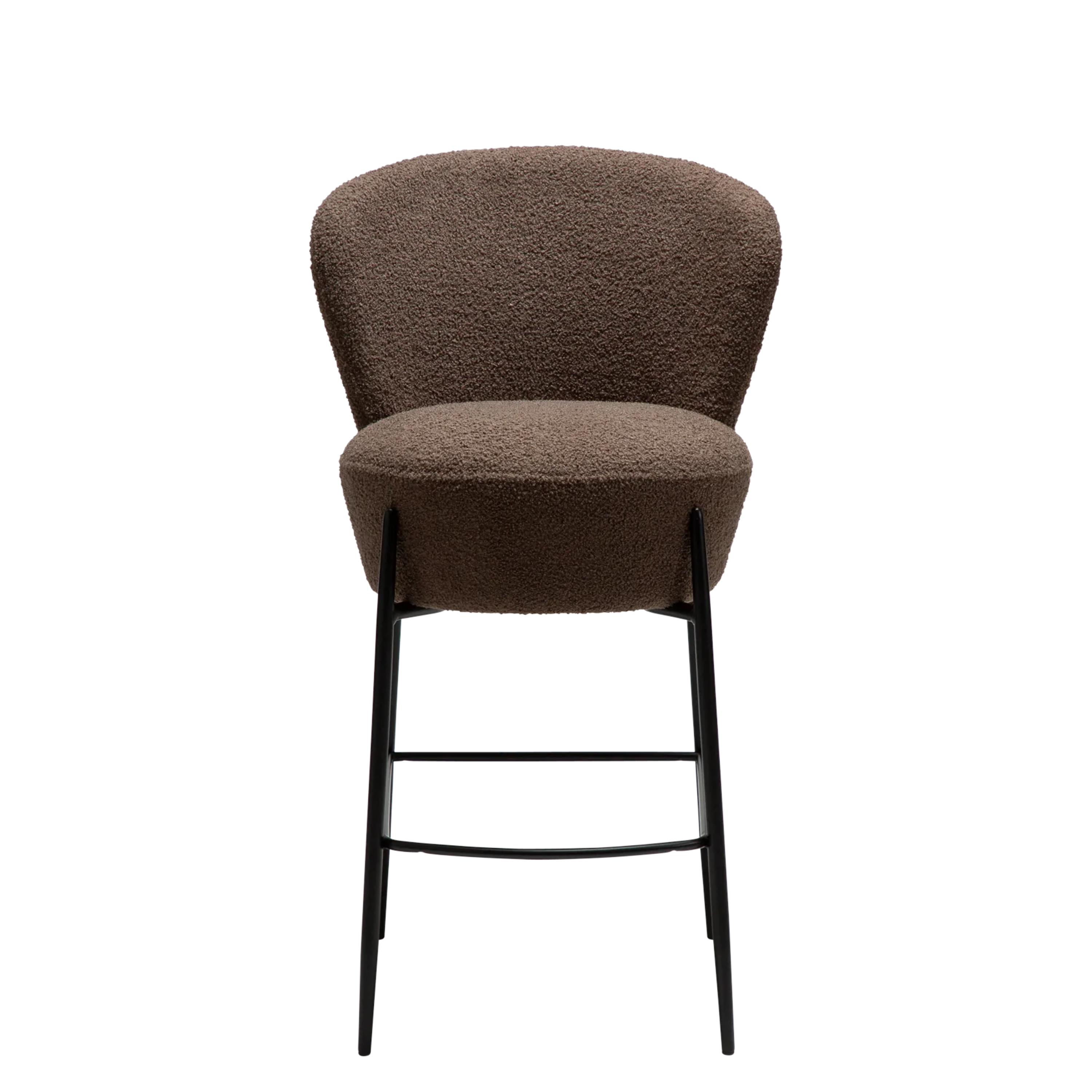 يتميز كرسي البار Orbit بنسيج بوكلي بني داكن وأرجل معدنية سوداء. تضفي هذه القطعة المزخرفة ألوانًا طبيعية دافئة مع تصميم بوكلي عصري على ارتفاع البار.