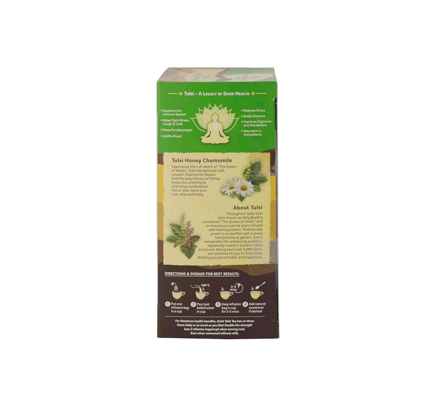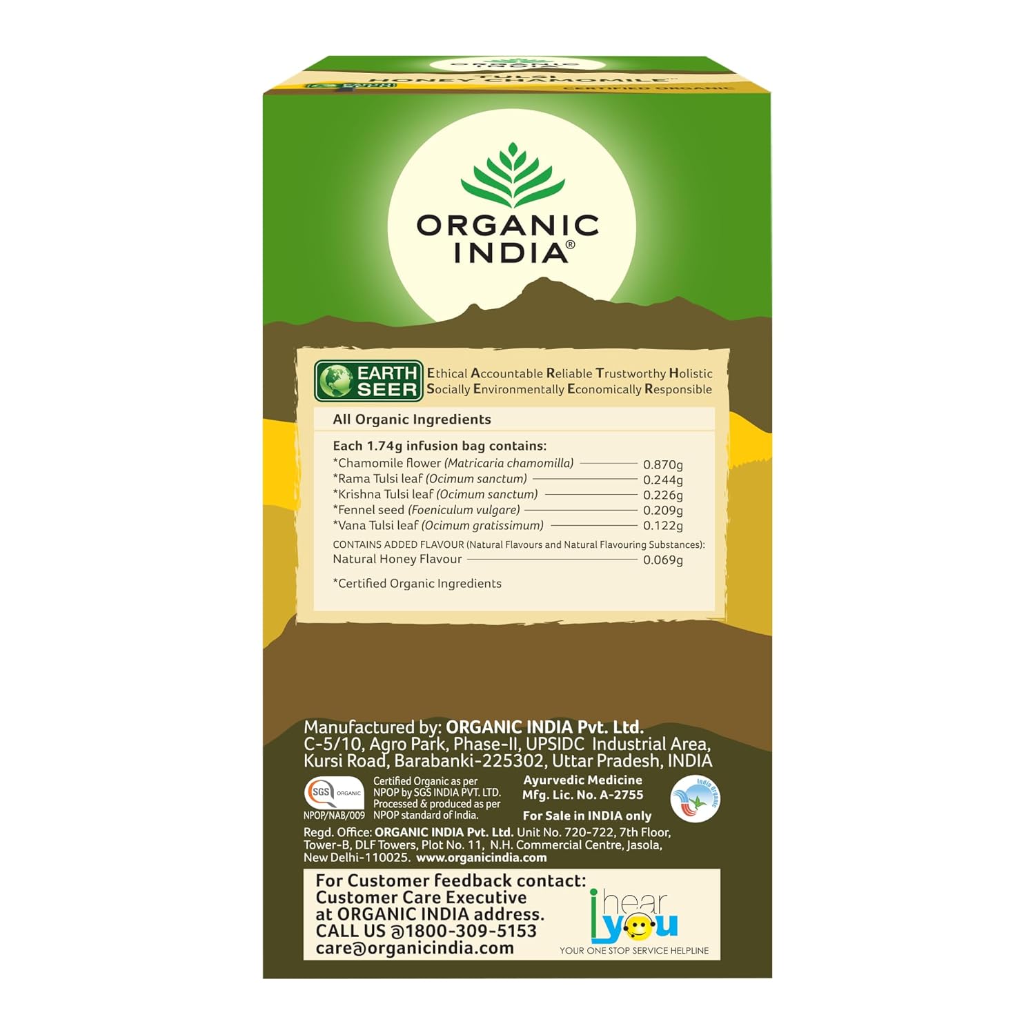 شاي تولسي العضوي من Organic India مع العسل والبابونج هو مزيج من الأعشاب المهدئة المصنوع من أوراق تولسي العضوية وزهور البابونج وخلاصة العسل الطبيعي. يساعد على الاسترخاء وتخفيف التوتر وتحسين الصحة العامة، مع مذاق لطيف وطبيعي.