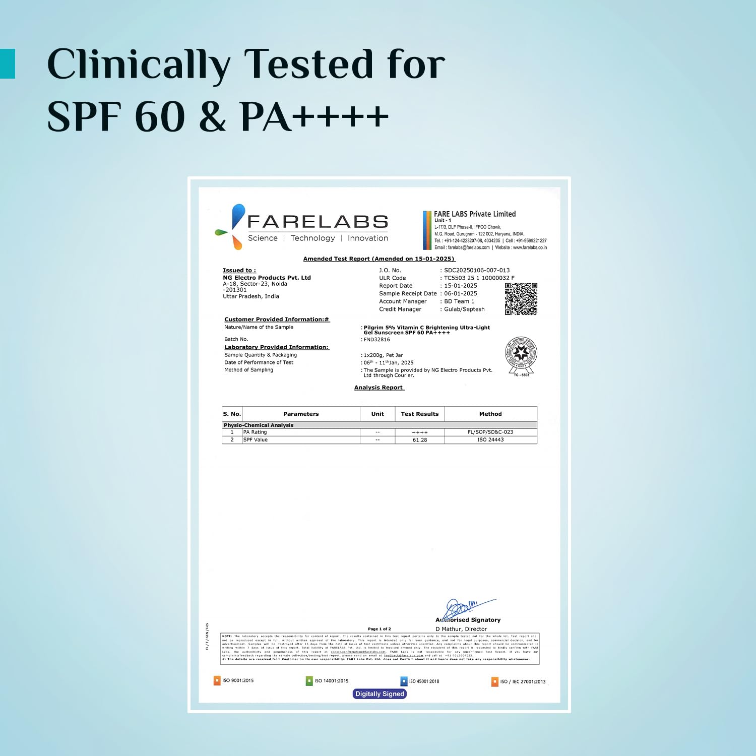 بيلغريم 5٪ فيتامين C مشرق جل واقي من الشمس خفيف للغاية 45 مل