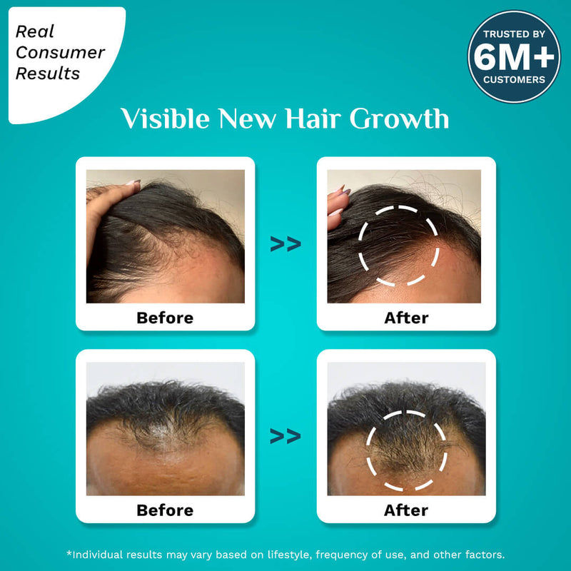 استنادًا إلى دراسة سريرية أجريت على 32 رجلاً وامرأة يعانون من تساقط الشعر؛ عند استخدامه كنظام مع Pilgrim Redensyl و Anagain Shampoo. قد تختلف النتائج الفردية حسب العمر والجنس والحالات الطبية الأساسية.