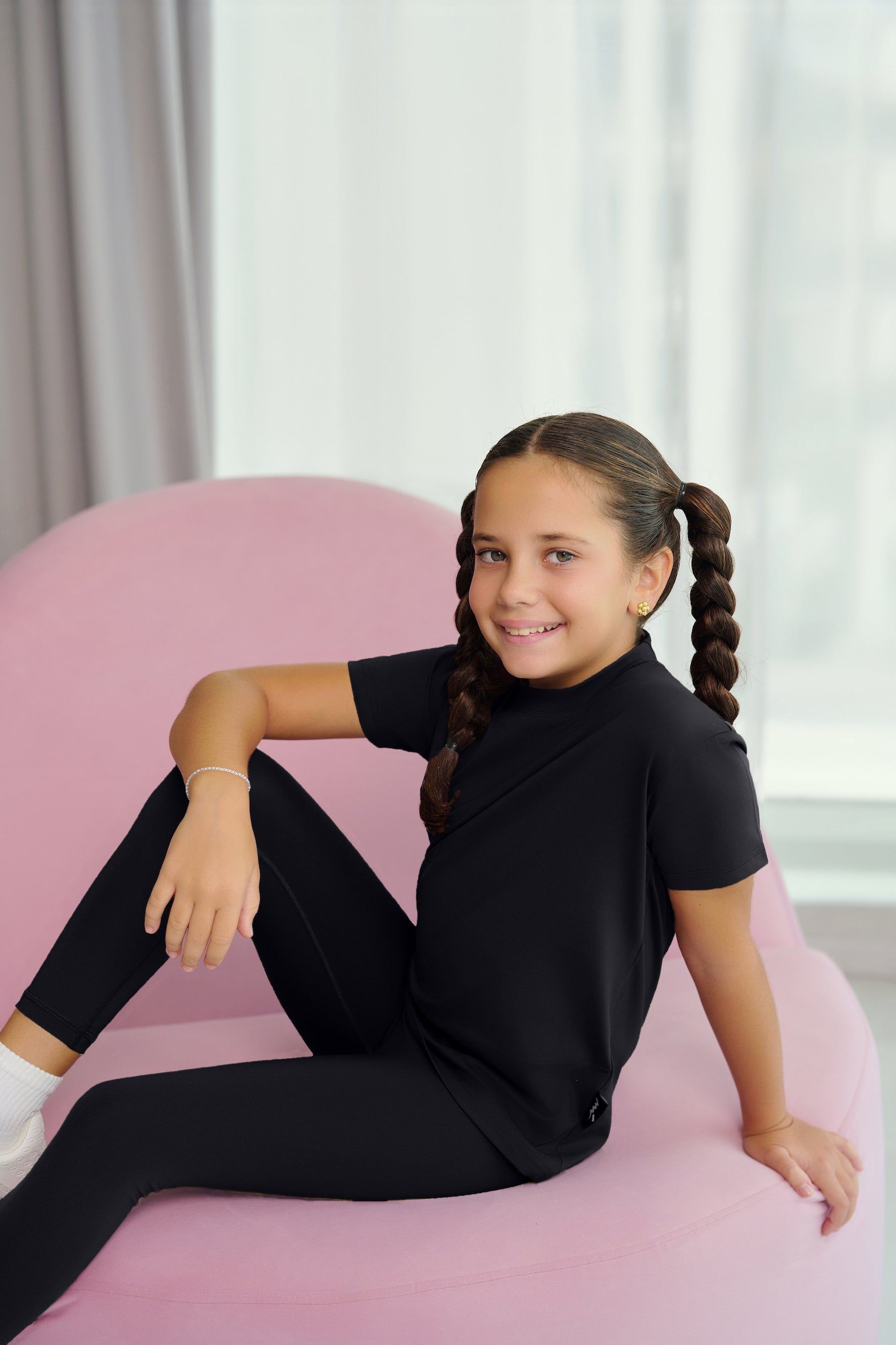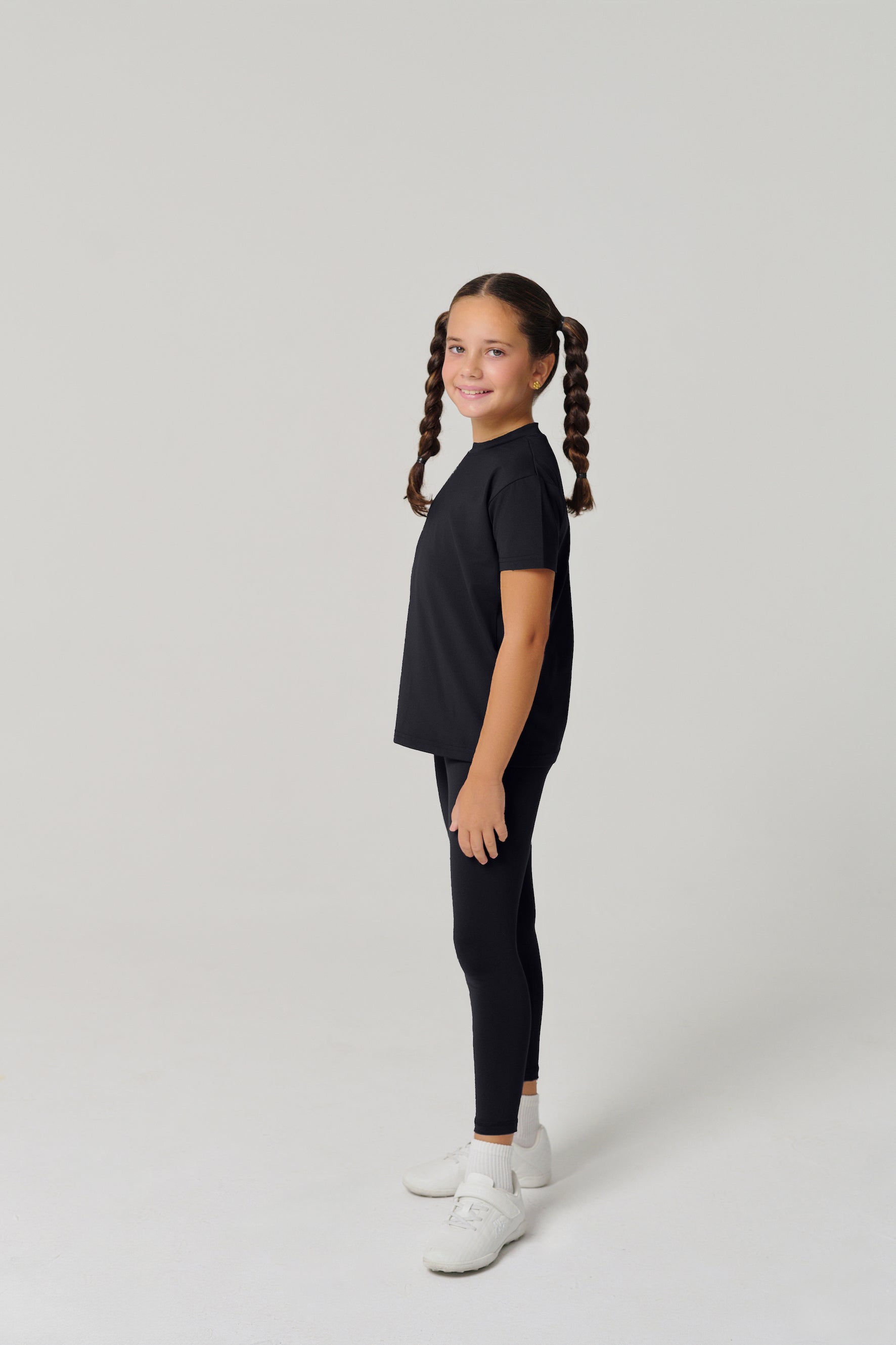 صُنعت هذه السراويل الضيقة من مزيج من البوليستر والسبانديكس المزود بتقنية"Quick Dry" (التجفيف السريع)، وتتميز بمرونة تسمح بمرور الهواء وتواكب نشاط الأطفال. ويمنحها قصها الضيق مظهرًا أنيقًا مع الحفاظ على سهولة الحركة مع الجسم.