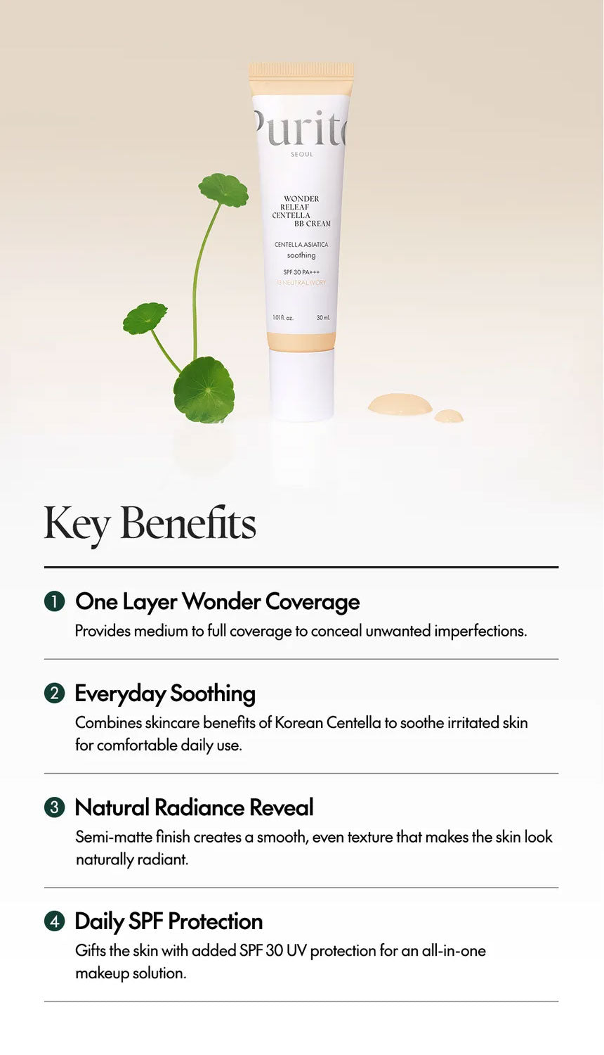 كريم PURITO Wonder Releaf Centella BB Cream #13 Neutral Ivory [30 مل]
