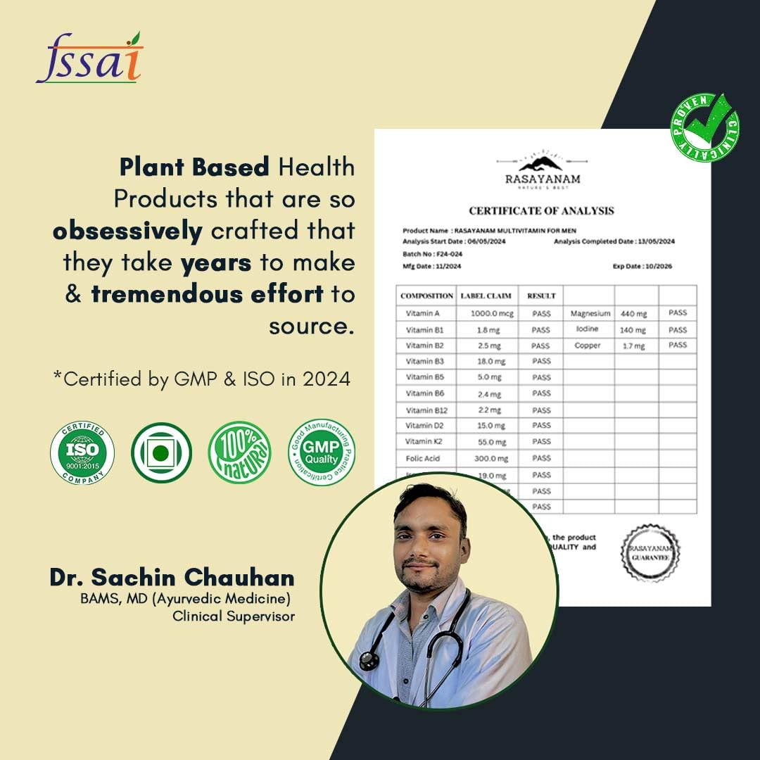 راسايانام متعدد الفيتامينات للرجال 60 حبة | 51 مكونًا و9 مزيجًا لصحة عامة