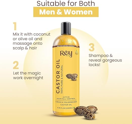 زيت الخروع البارد المضغوط من Rey Naturals Premium هو زيت طبيعي متعدد الاستخدامات، يتم استخراجه بدون حرارة أو مواد كيميائية للحفاظ على جميع العناصر الغذائية الأساسية. وهو معروف جيدًا بتعزيز نمو الشعر وتغذية فروة الرأس وترطيب البشرة بعمق وتوفير العديد من الفوائد الجمالية والصحية.
