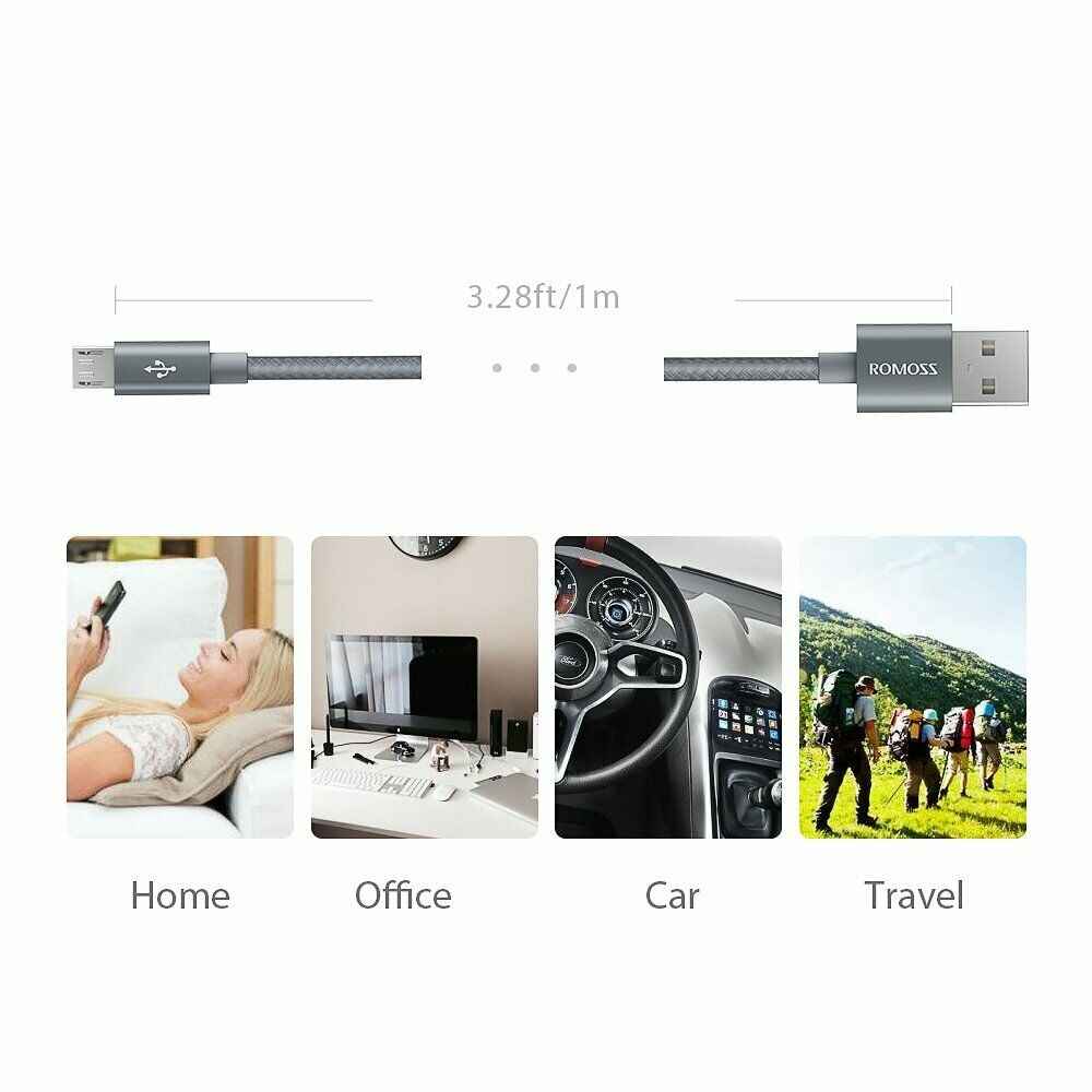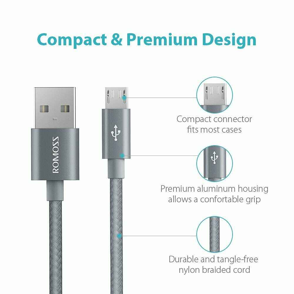 كابل Micro USB مضفر من ROMOSS MUCB05N56G باللون الرمادي الفلكي بطول 1 متر