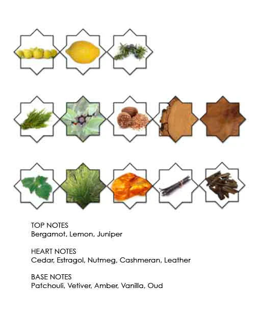 يبدأ عطر "سريف" بمزيج منعش من البرغموت والليمون، ممزوجًا بالبرودة العطرية المنعشة للعرعر، المعروف بقدرته على إثارة الشعور بالشفاء والقوة والاستقرار.