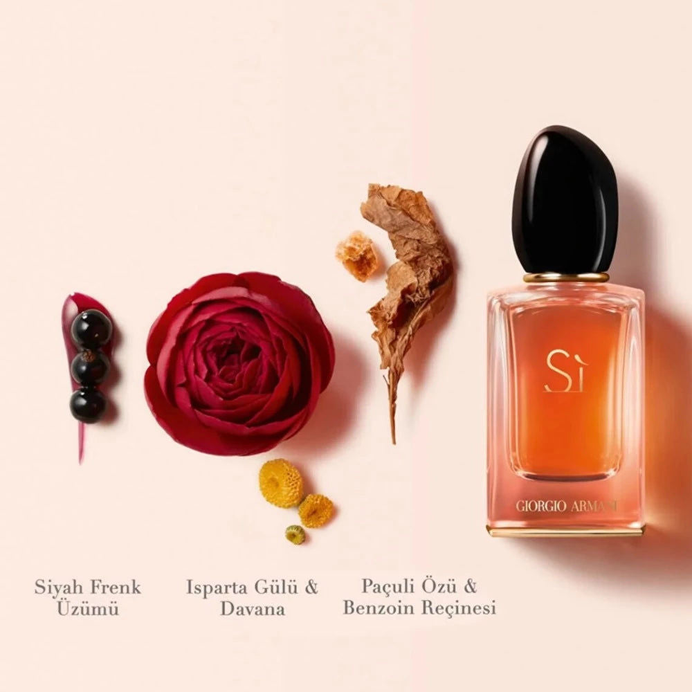 يحتوي عطر Sì Eau de Parfum Intense على الطاقة الحاسمة التي تميز امرأة Sì. قوي، أنثوي وحر، يجسد الأنوثة العصرية التي لا تقاوم والتي، بفضل هذا العطر المكثف الجديد، تكتسب طابعاً راقيًا وجذابًا.